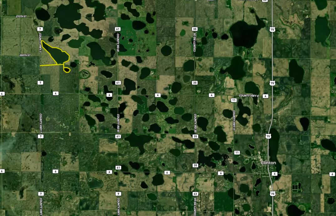 This property is located approximately 14 miles north of Ortonville and 10 miles from the South Dakota border. I get asked all the time as to where one should go to own a true waterfowl property in the state and this area, traditionally known as the Prairie Pothole region, is the area that I consider to be one of if not the best area in the state for waterfowl hunting. One look at the aerial maps and you will see why with the vast array of shallow lakes and sloughs in the area which this property lies right in the middle of.