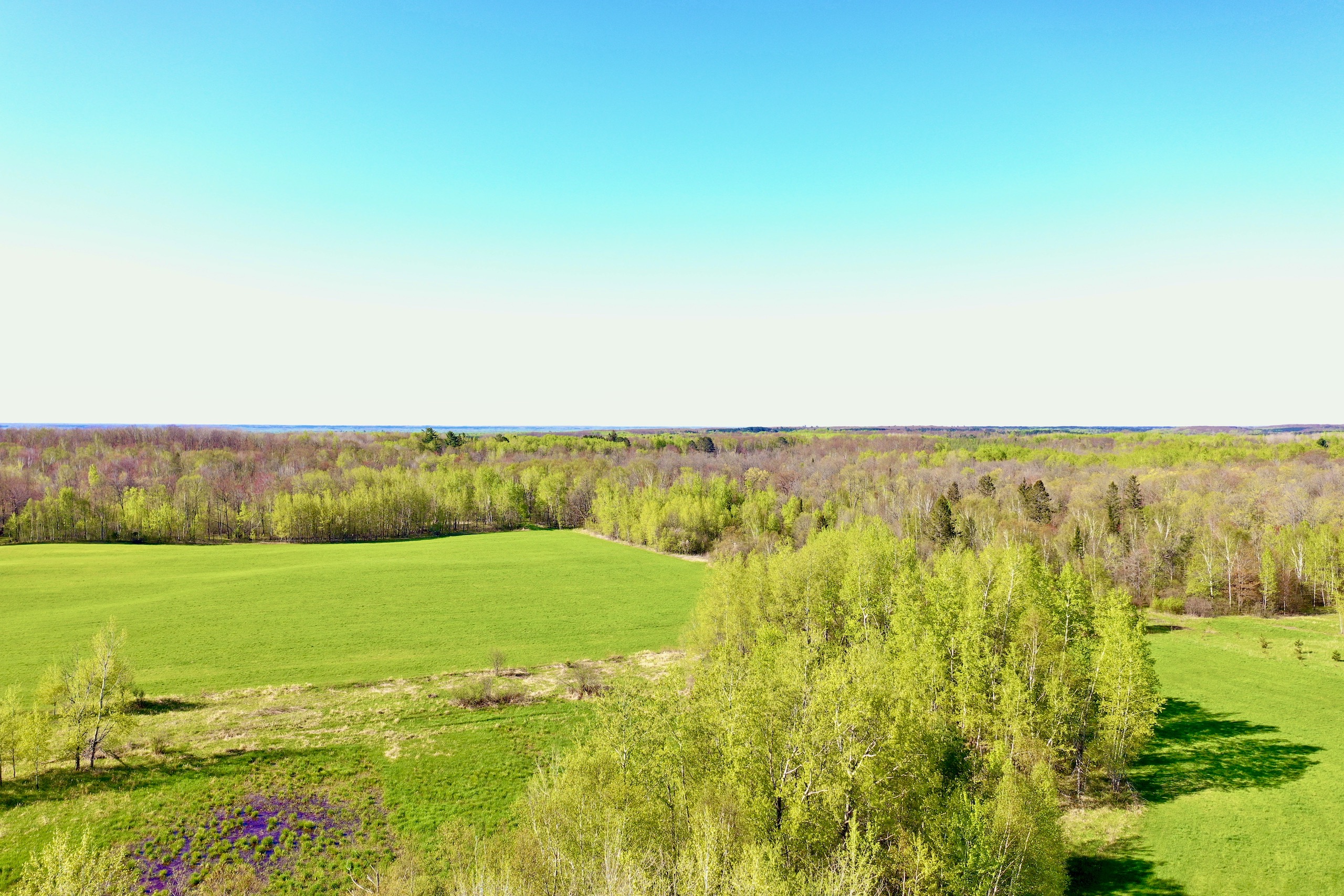 This unique property sits along paved County Road 4 just across the road from access to Hay Lake. There are multiple hilltop building sites. Much of the front half of the parcel is an open hayfield, with a finger of mature aspen, birch, and a few pines dividing the field. Along the field edge, there are lots of wild crabapple trees and mature oaks, maple, and birch. The back section of timber is beautiful, with rolling hills of mature timber and trails crisscrossing throughout. This is a great location being only a 30-minute drive to Duluth, in the very well-known area of Blackhoof. There are also several forest clearings, ideal locations to establish food plots. The site is well known for excellent deer, bear, turkey, and upland game hunting. The area has many recreational opportunities close to Duluth, from the Apostle Islands in Lake Superior to endless north shore activities.
