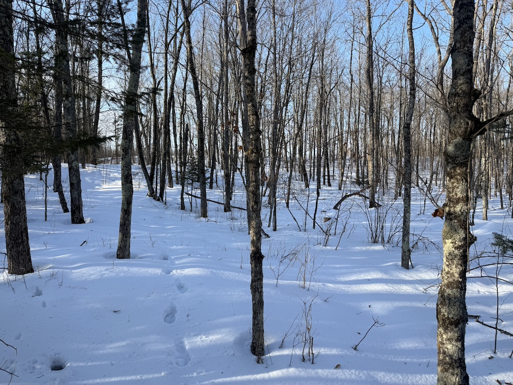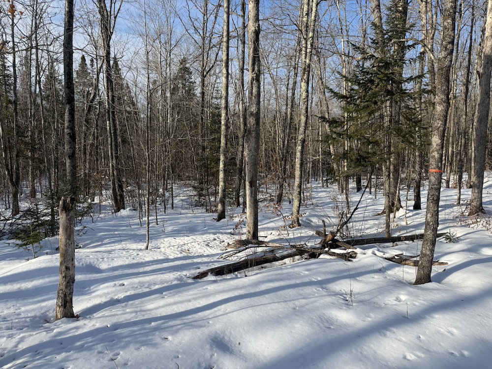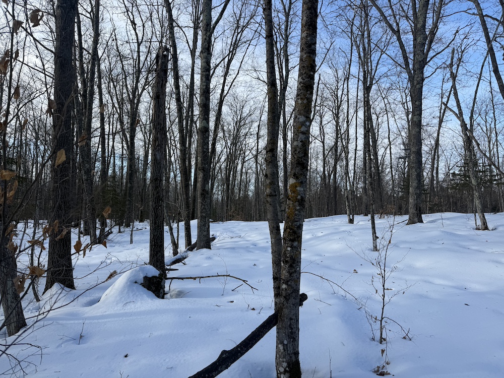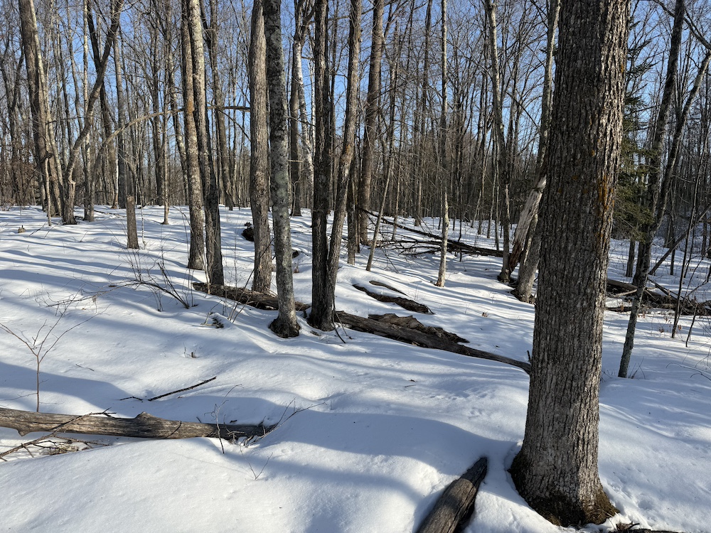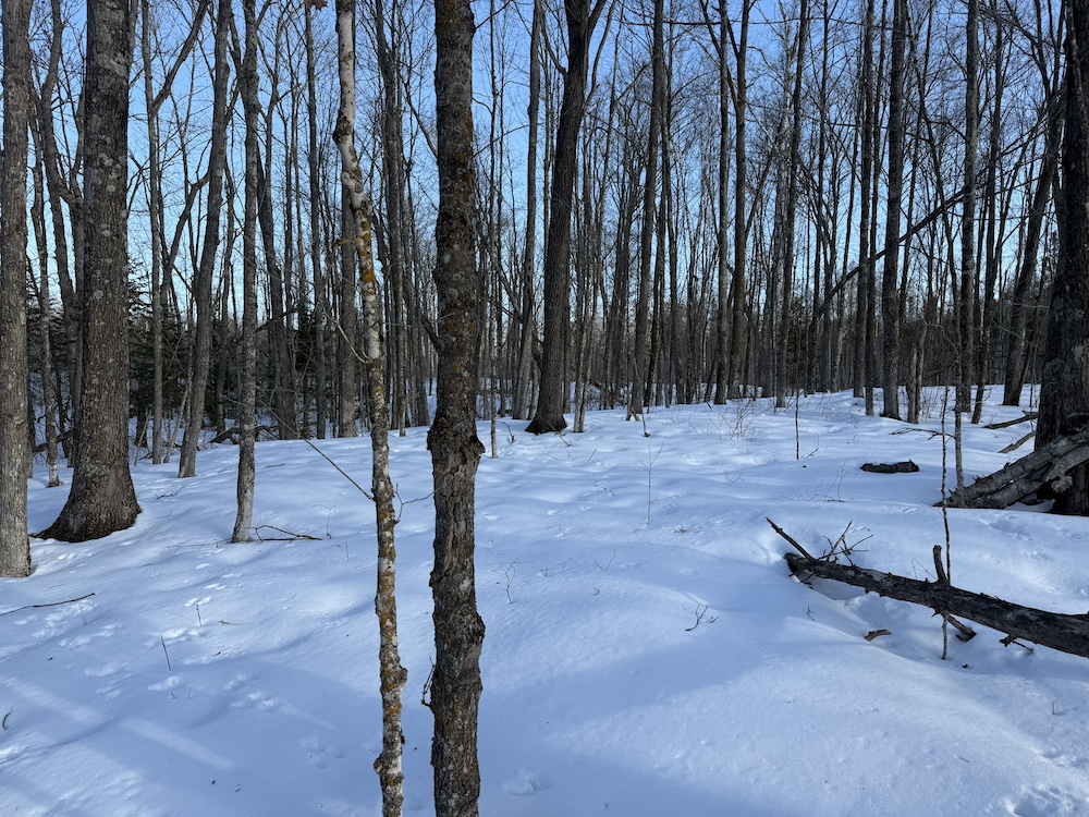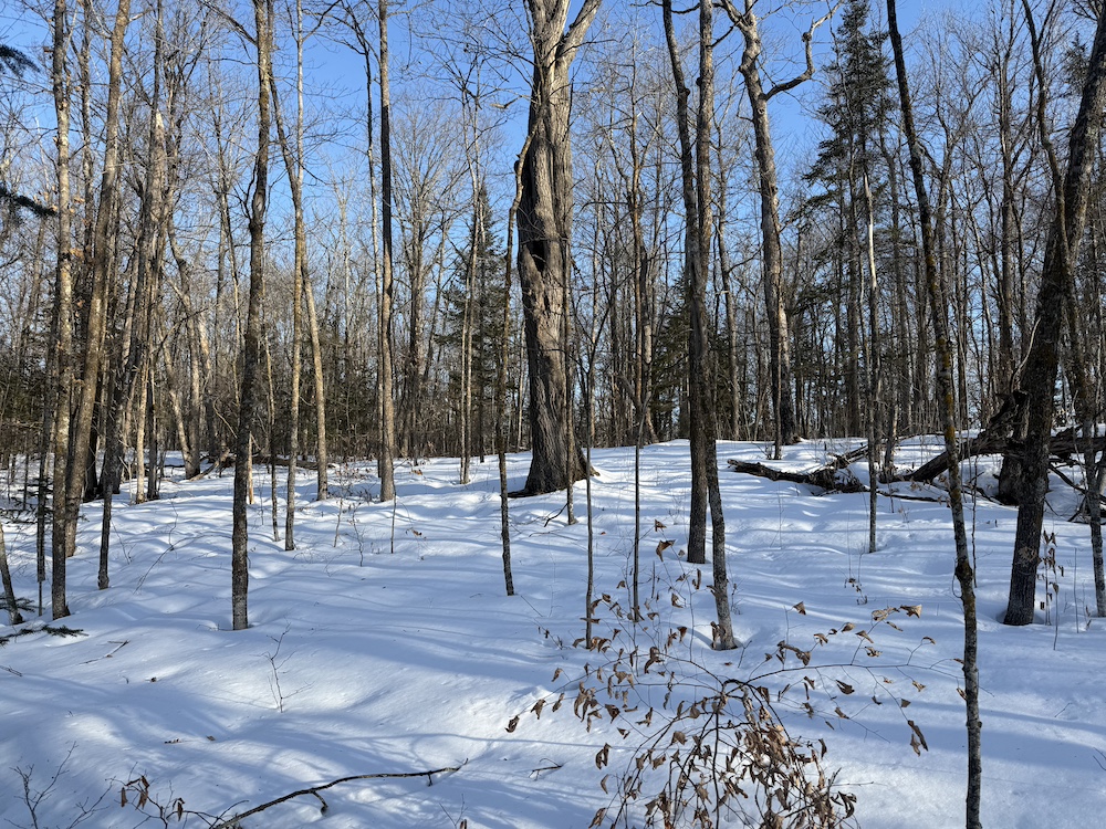 - Rolling hills with mature hardwoods and scattered spruce