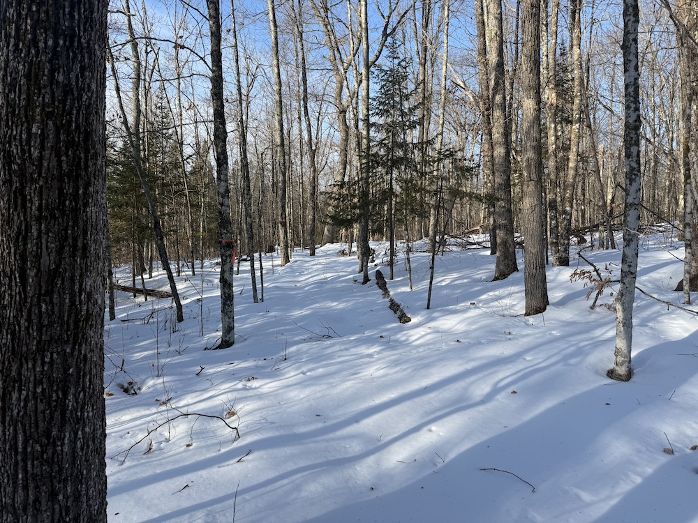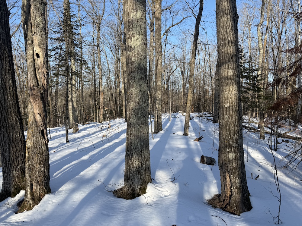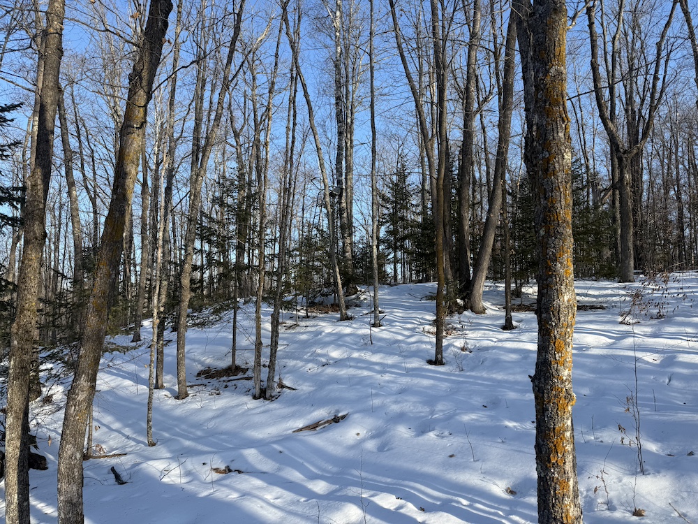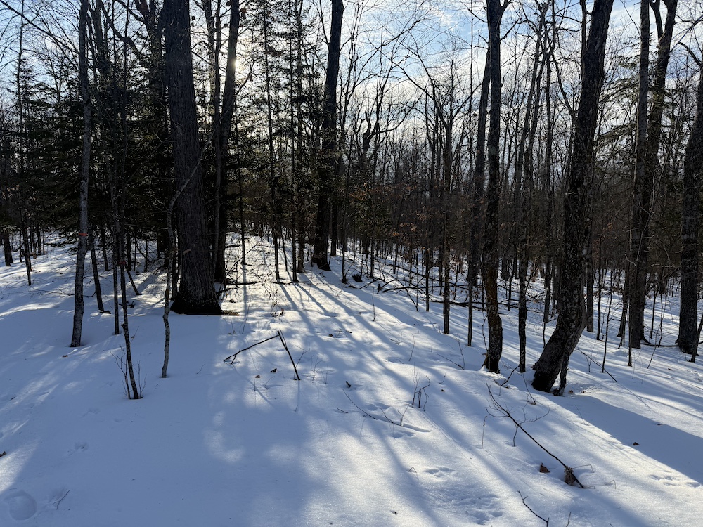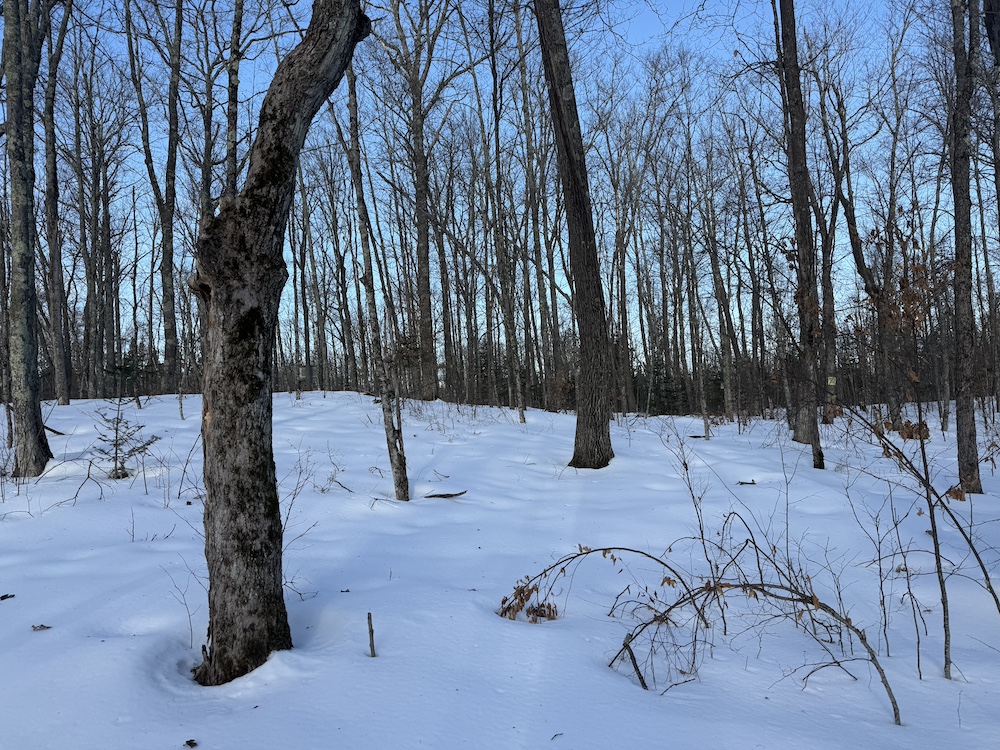 - Rolling hills with mature hardwoods and scattered spruce