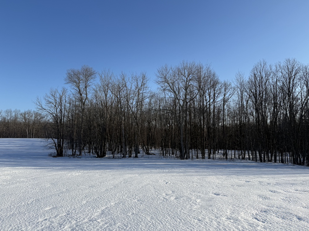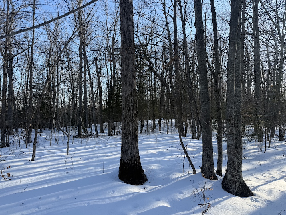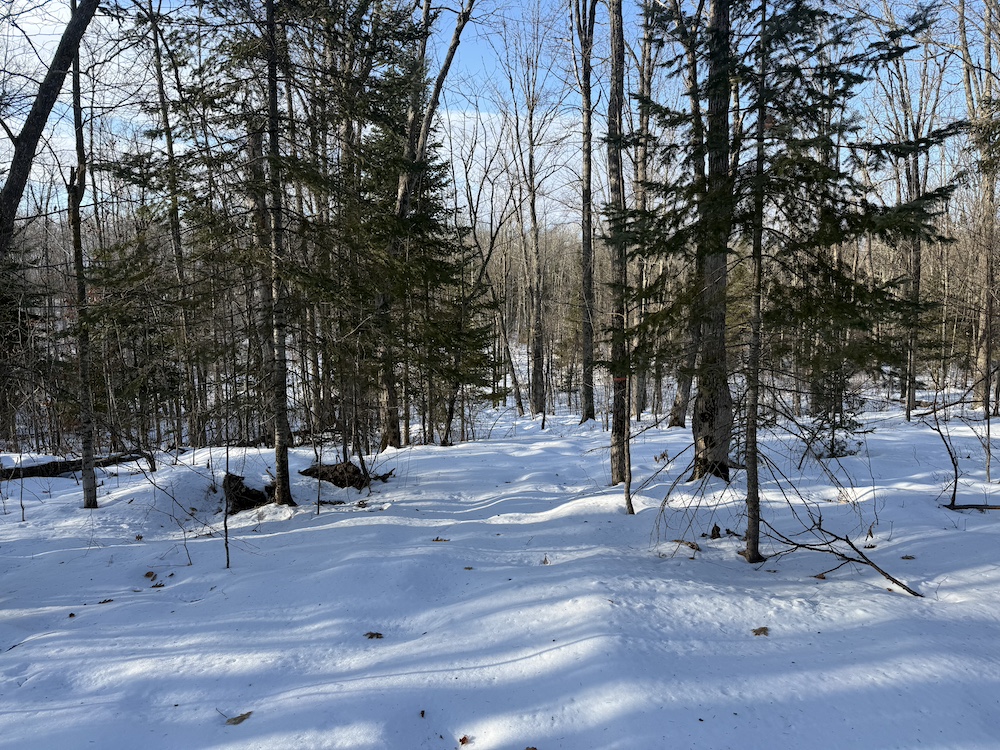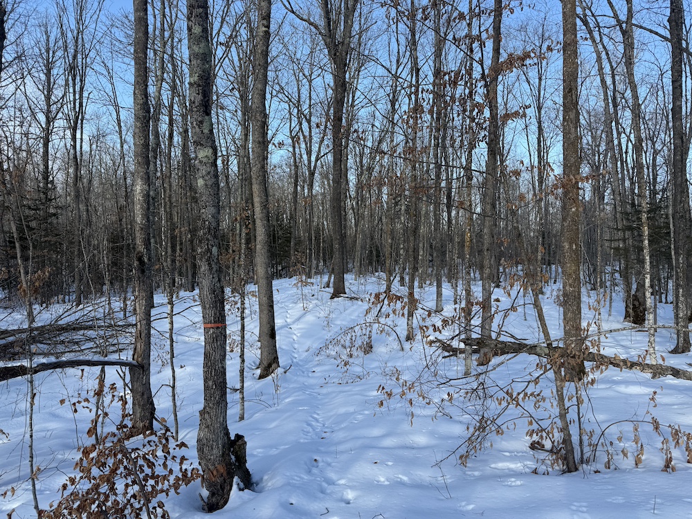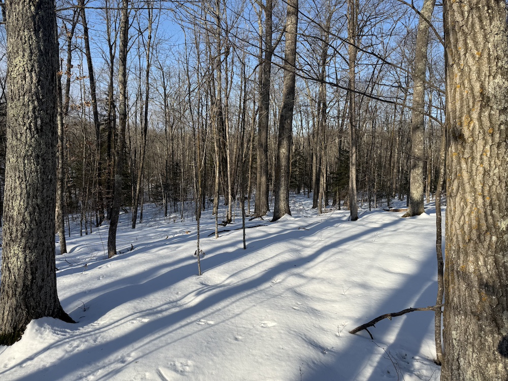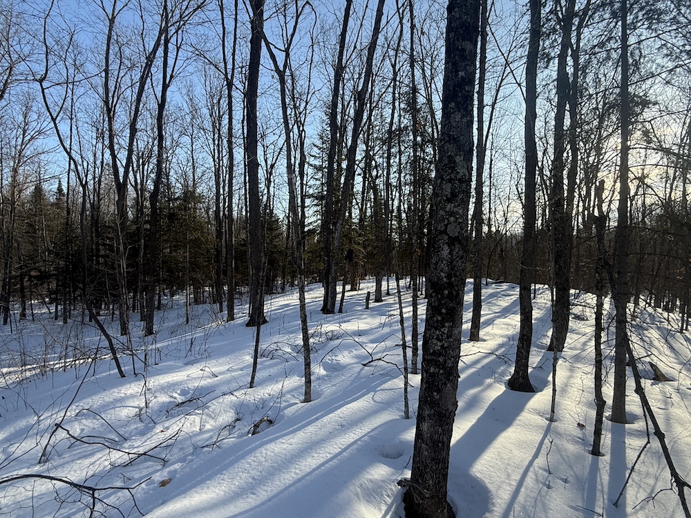 - Rolling hills with mature hardwoods and scattered spruce