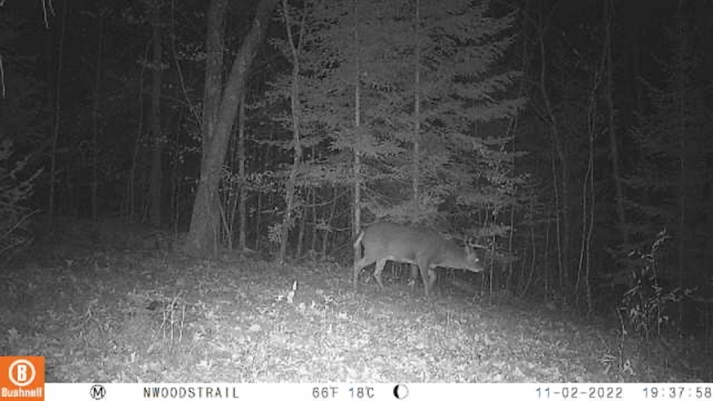 The land itself is diverse and thoughtfully laid out. The front portion welcomes you with a scenic open hayfield, creating a picturesque setting and natural edge habitat. Established trails wind throughout the rolling terrain, guiding you through mature hardwood timber mixed with scattered spruce trees. Towering oak trees provide an excellent food source, helping to attract and hold wildlife on the property.
