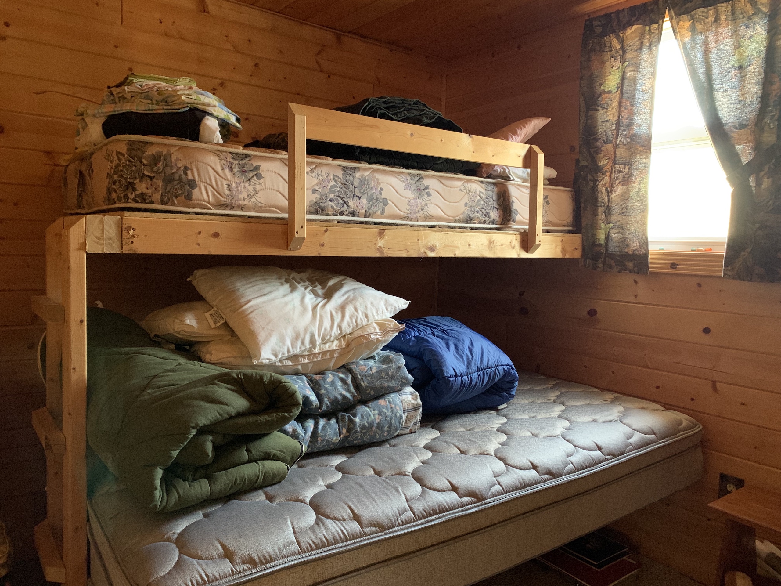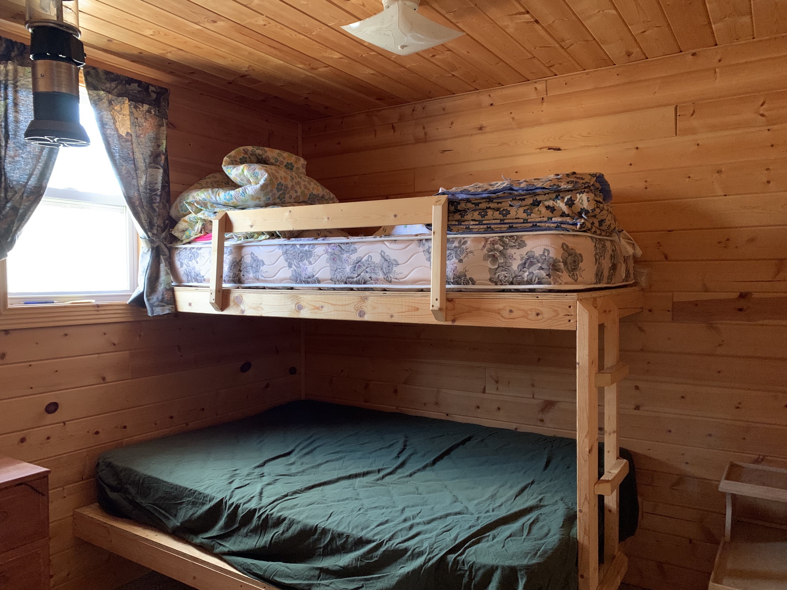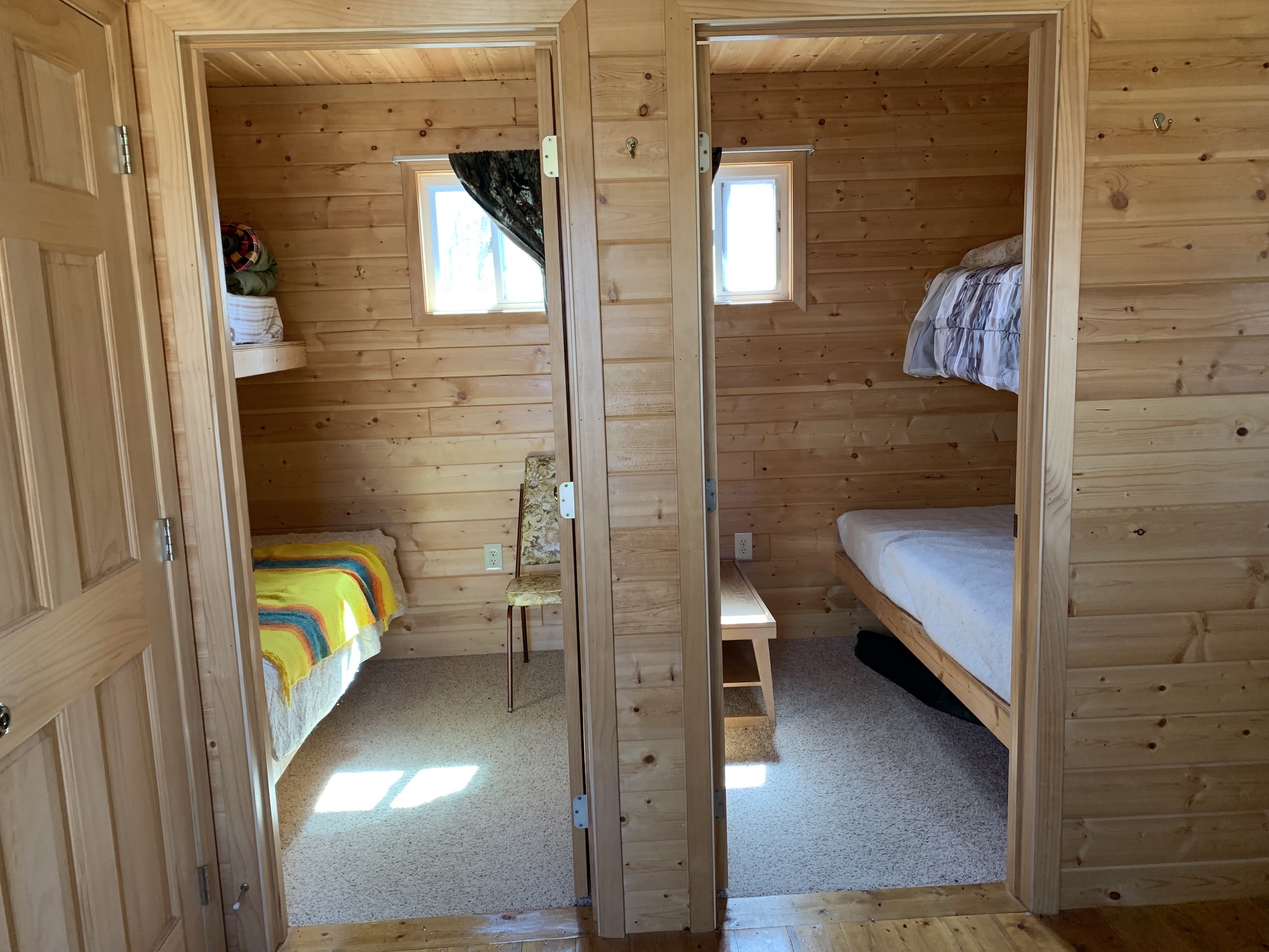 - Bunkhouse - 16x16 with deck (2 bedrooms – sleeps 4, 1 toilet – manual flush, no running water)