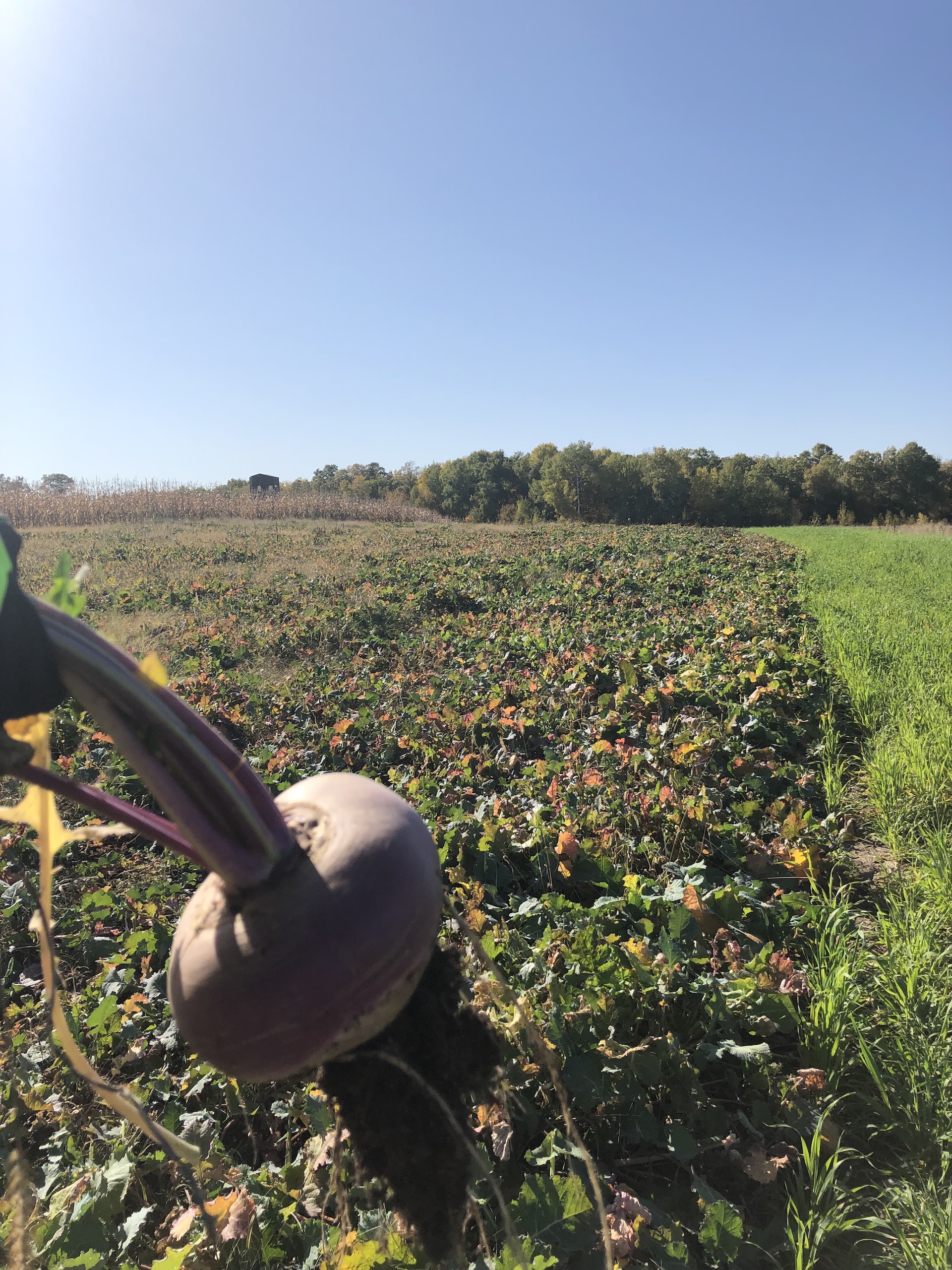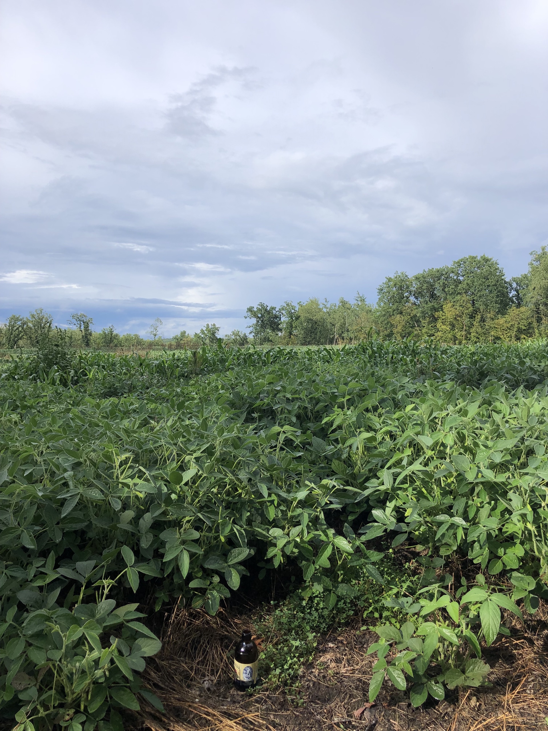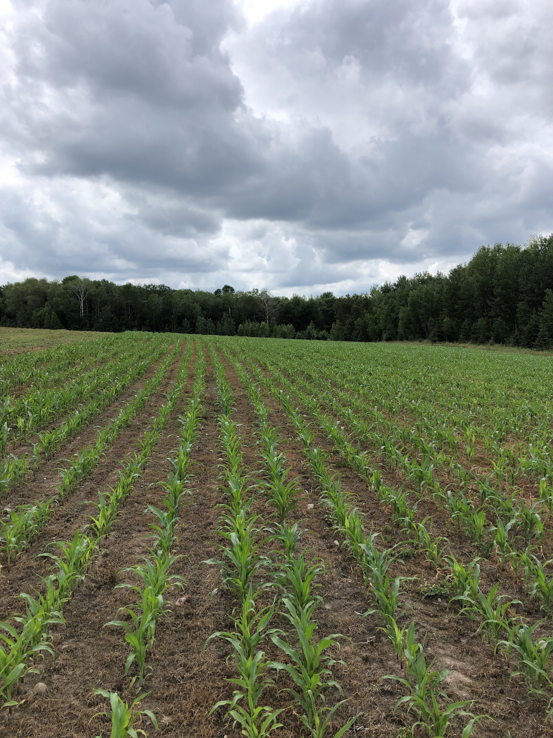 - Three fields with crops (corn, beans, and oats)