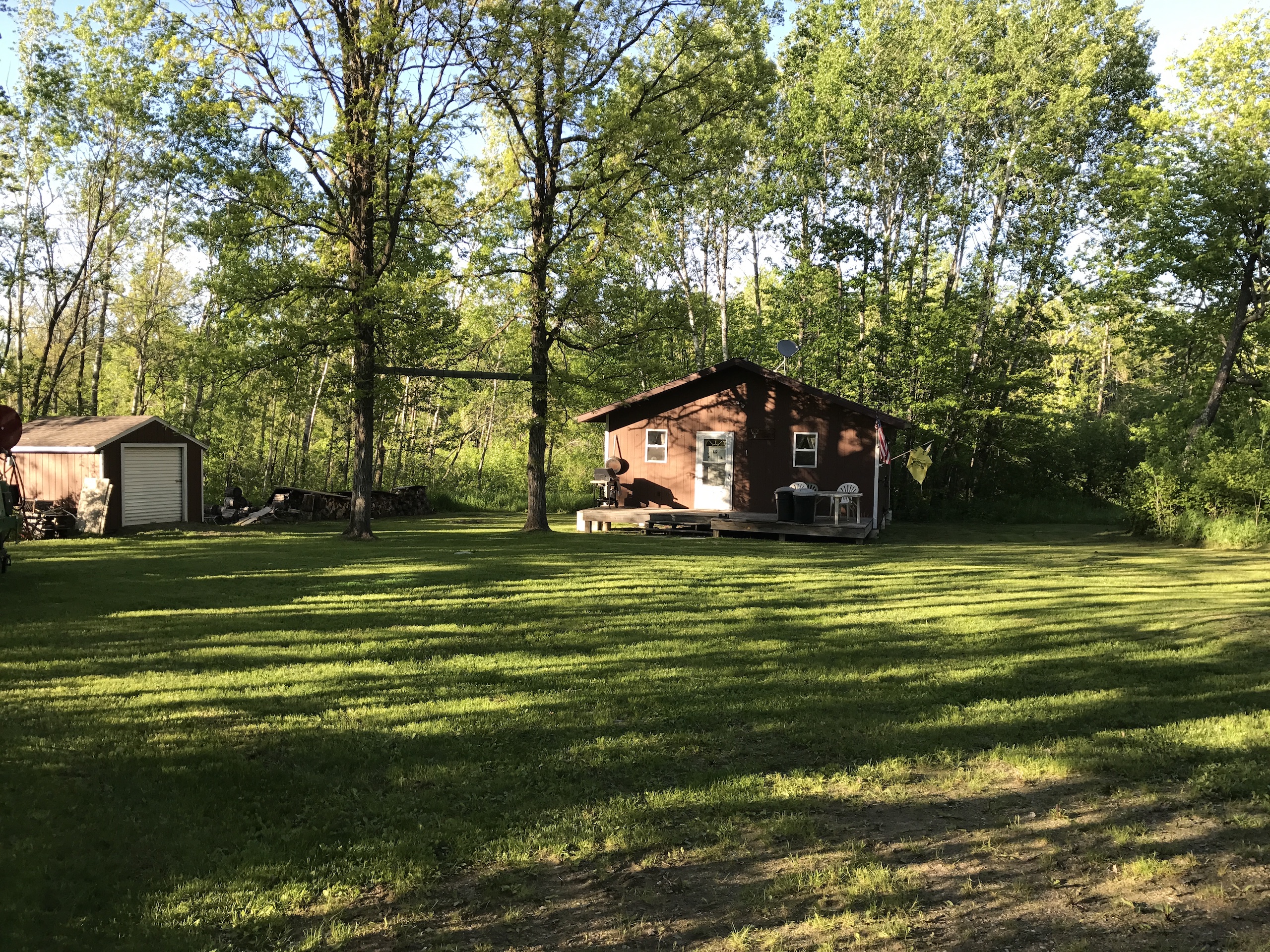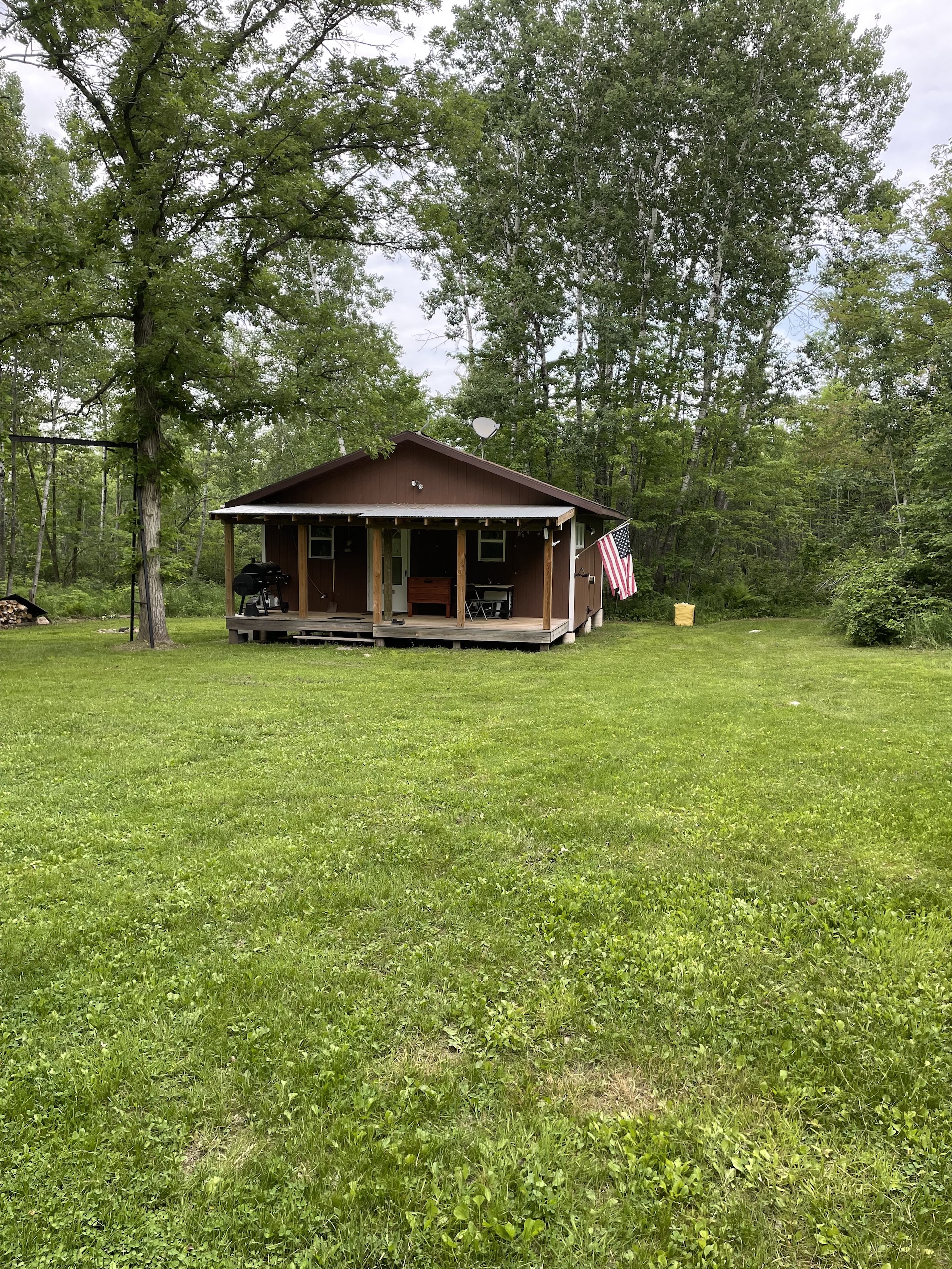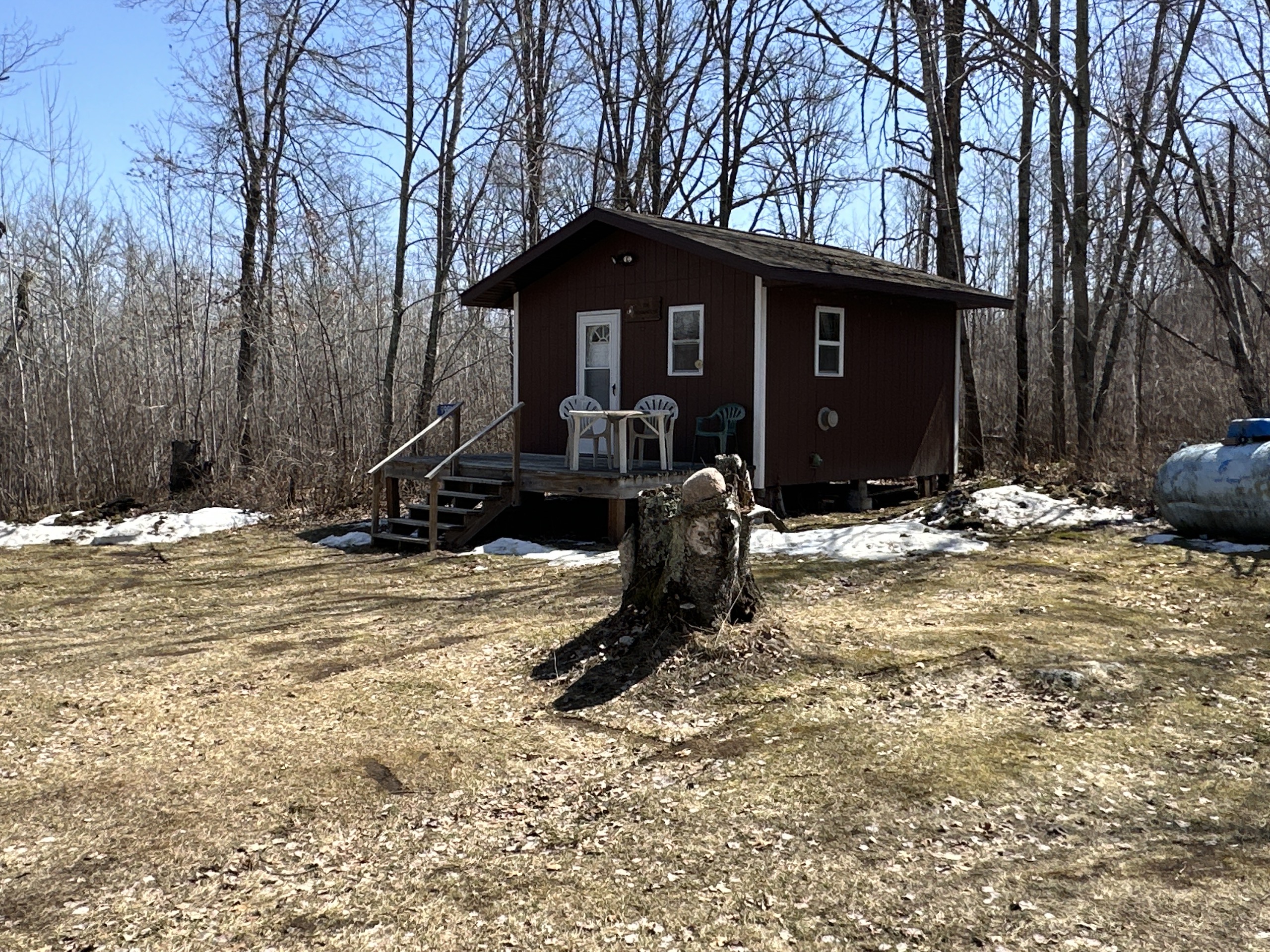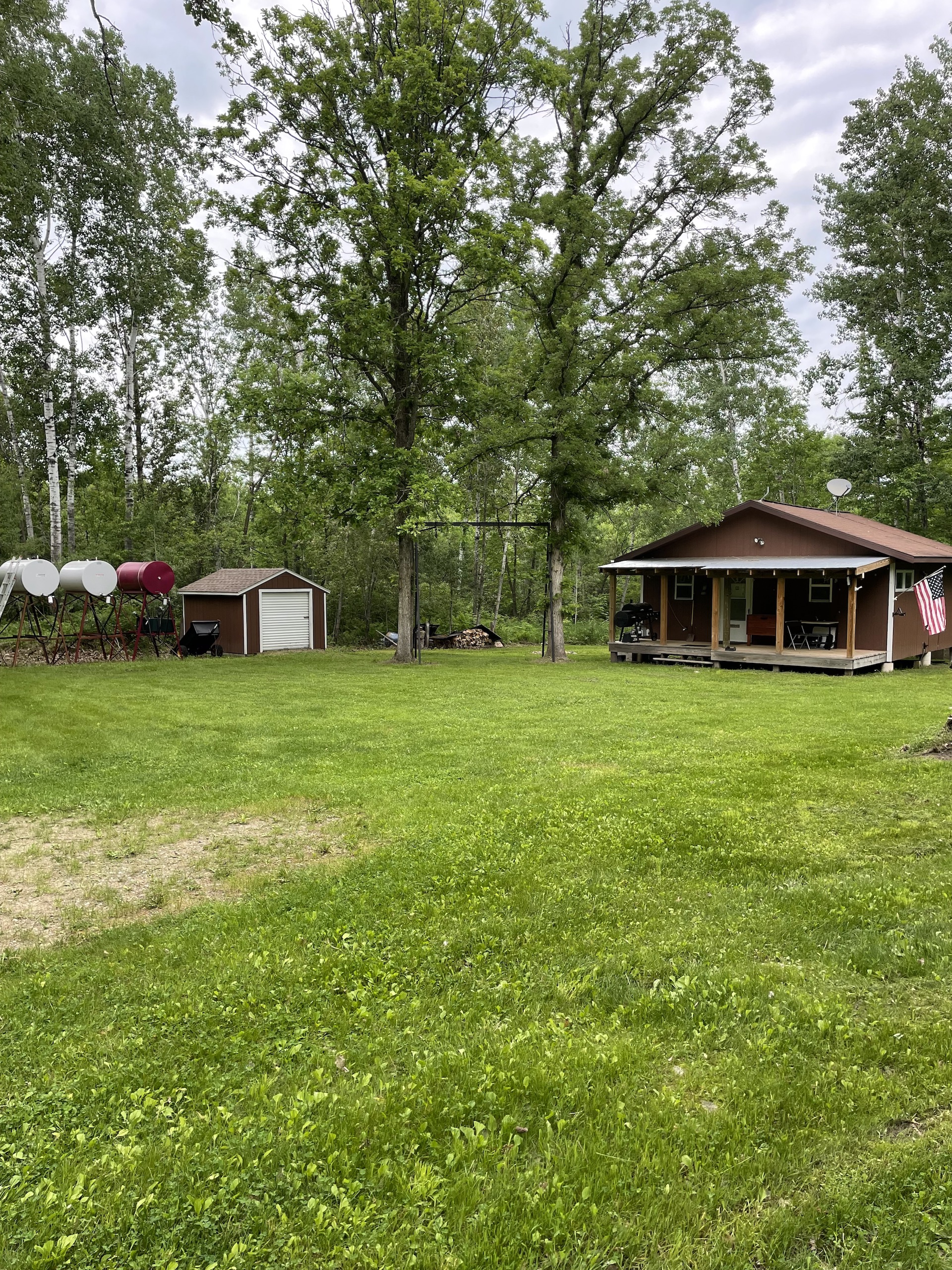 - Insulated Cabin: 24x24 with 24x6’ porch (sleeps up to 8, 4-6 comfortably, running water system to include a water tank, water heater, bathroom shower, propane heat with 250-gallon propane tank, two propane stoves beds)