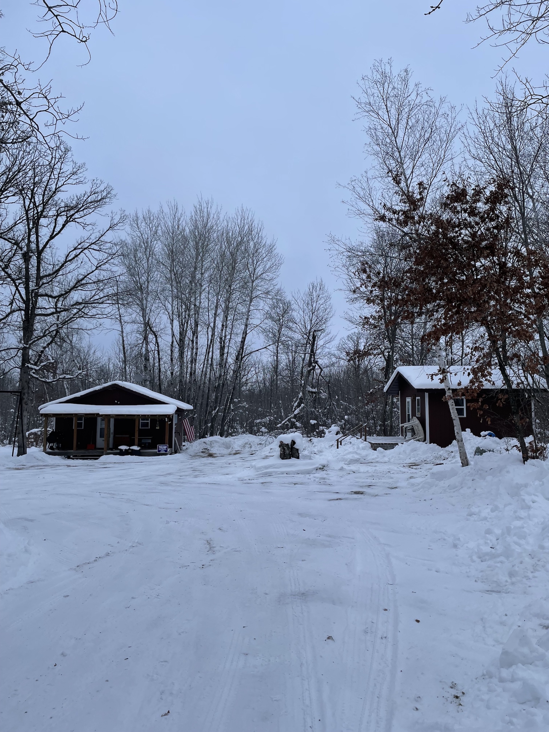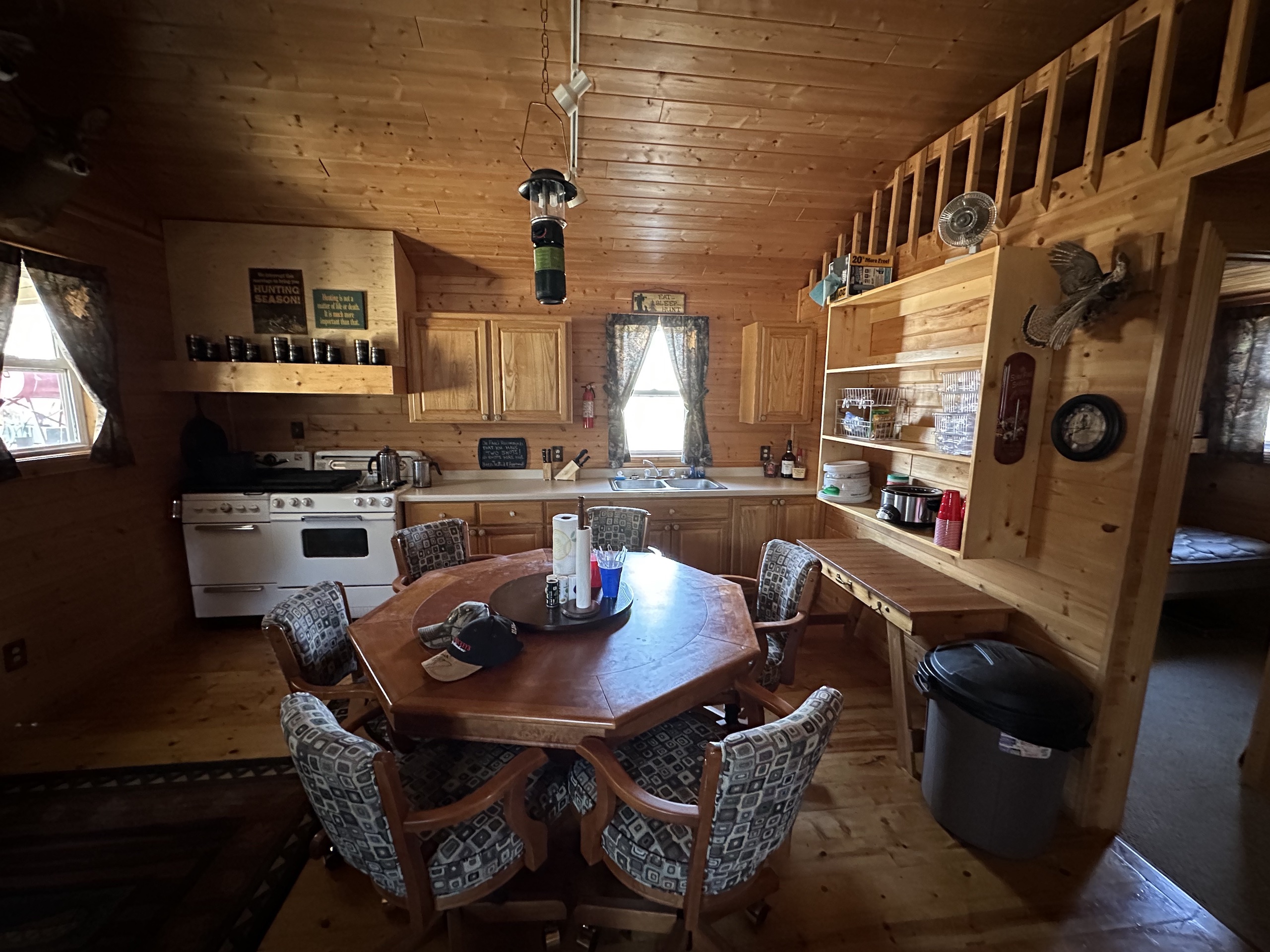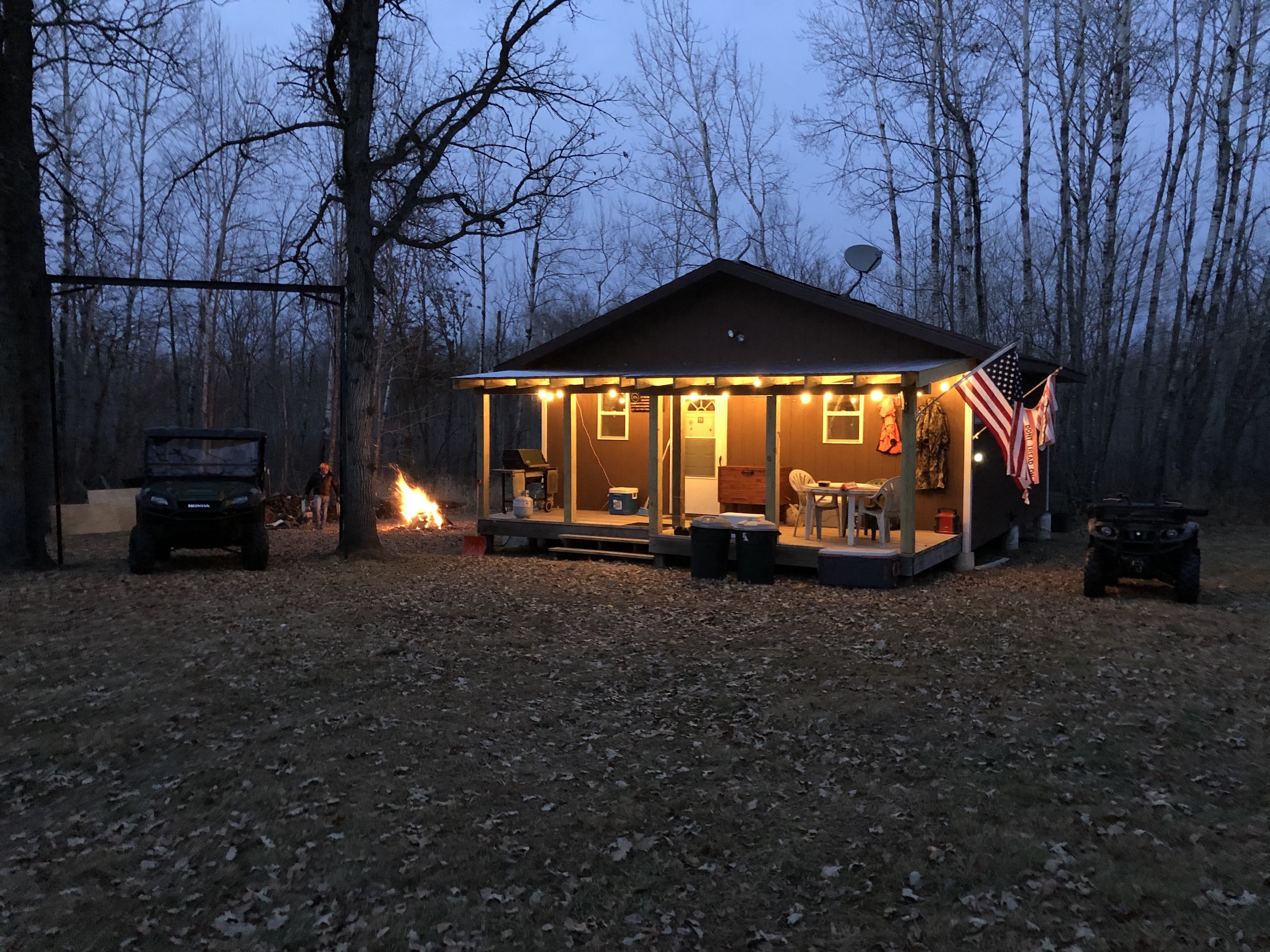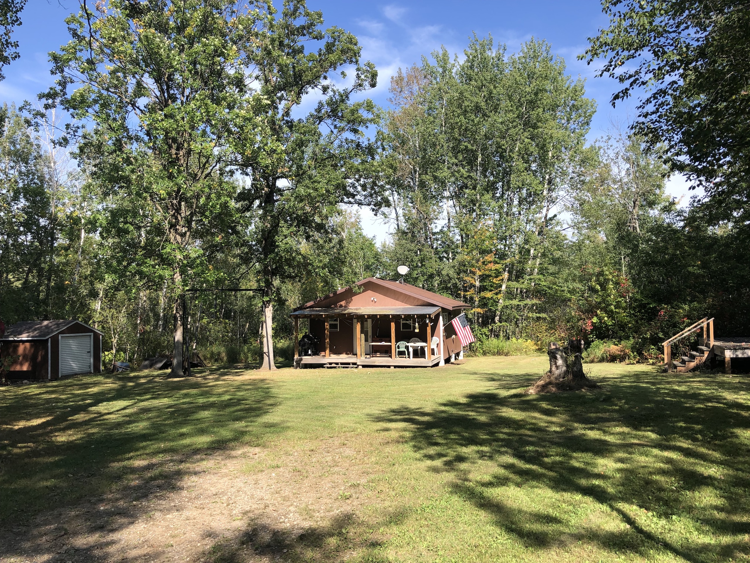 - Insulated Cabin: 24x24 with 24x6’ porch (sleeps up to 8, 4-6 comfortably, running water system to include a water tank, water heater, bathroom shower, propane heat with 250-gallon propane tank, two propane stoves beds)