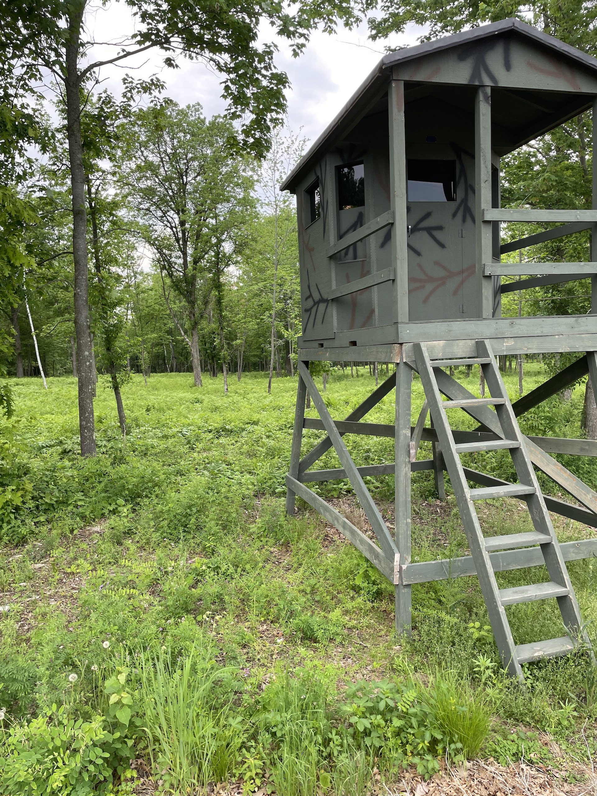 - 10 box blinds – Most by Deer Stands Direct (many insulated, several accommodate archery. 2 stainless steel 4’x6’ open stands with ladder, and 6 ladder stands).