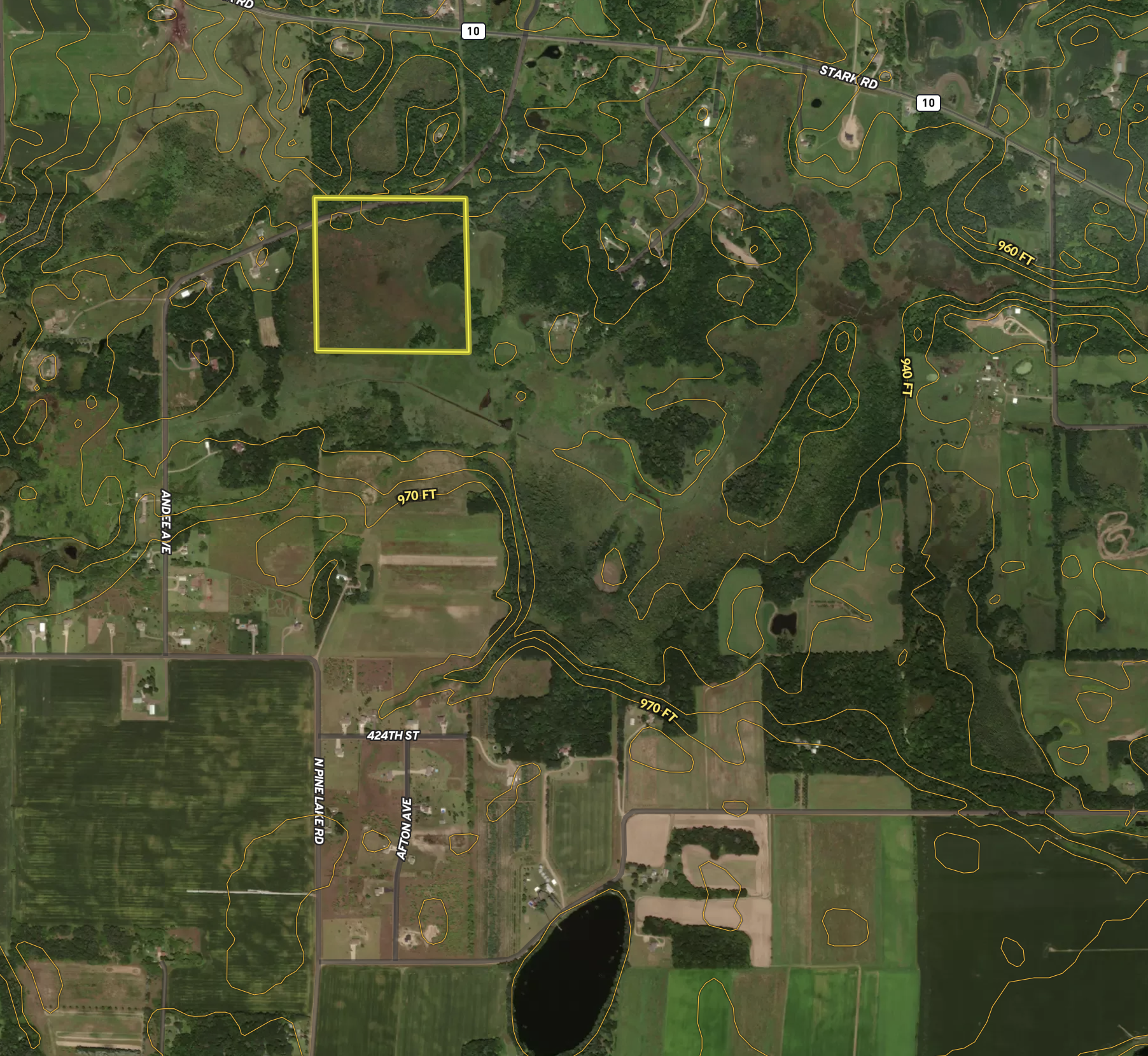 Hard to find hunting property within 30 minutes of the Twin Cities. The property has a couple of small timbered islands, with the remainder being thick brushy low ground, perfect bedding cover for whitetails. There is a nice stripe of high ground right along the road with some pines and other timber. Two other islands showed good deer sign, with aerial views showing several trails running between the islands. There is quite a bit of agricultural land in the area, making this property’s thick cover an absolute wildlife mecca. Schedule your showing for this excellent deer hunting parcel just a short drive from the metro.