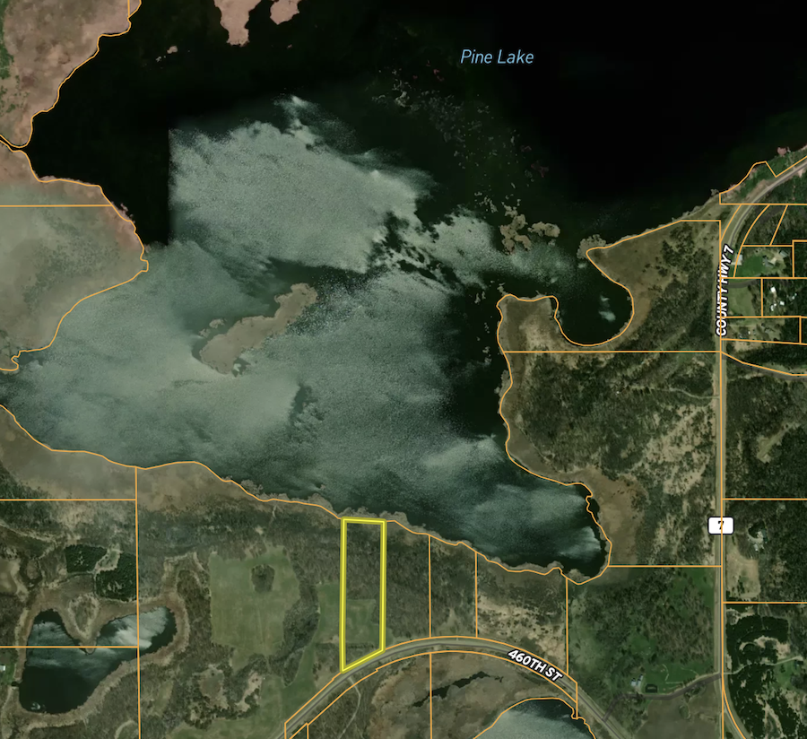 This 10.7± acre property on Pine Lake brings together lake access, open space, and a wide range of outdoor opportunities. A new approach and culvert have already been installed, giving you easy access off the road, and a building site has been cleared in a great spot overlooking the lake. The groundwork has already been started for whatever direction you want to take it. Whether you are thinking about building a home, setting up a cabin, or just having a place to pull in a camper, the cleared site and power at the road make it easy to get going! The land itself has a nice mix of open space and natural cover, which makes it usable while still feeling like you are tucked into nature. Pine Lake is right there for fishing and time on the water in the summer, and it sets up just as well for ice fishing once winter rolls in. If you enjoy hunting, the area around the property sees consistent deer movement, with natural travel routes created by the mix of cover and nearby habitat. The water in the area also brings in ducks during the season, adding another layer of opportunity right out your door. At just over 10 acres, it is a manageable piece of land that still gives you room to spread out, enjoy the outdoors, and make improvements over time. With no covenants or restrictions, you have flexibility in how you choose to use the property. With the building site ready, power nearby, and the lake just steps away, this property gives you a solid starting point whether you are looking for a place to build, relax, or spend time outdoors year-round.