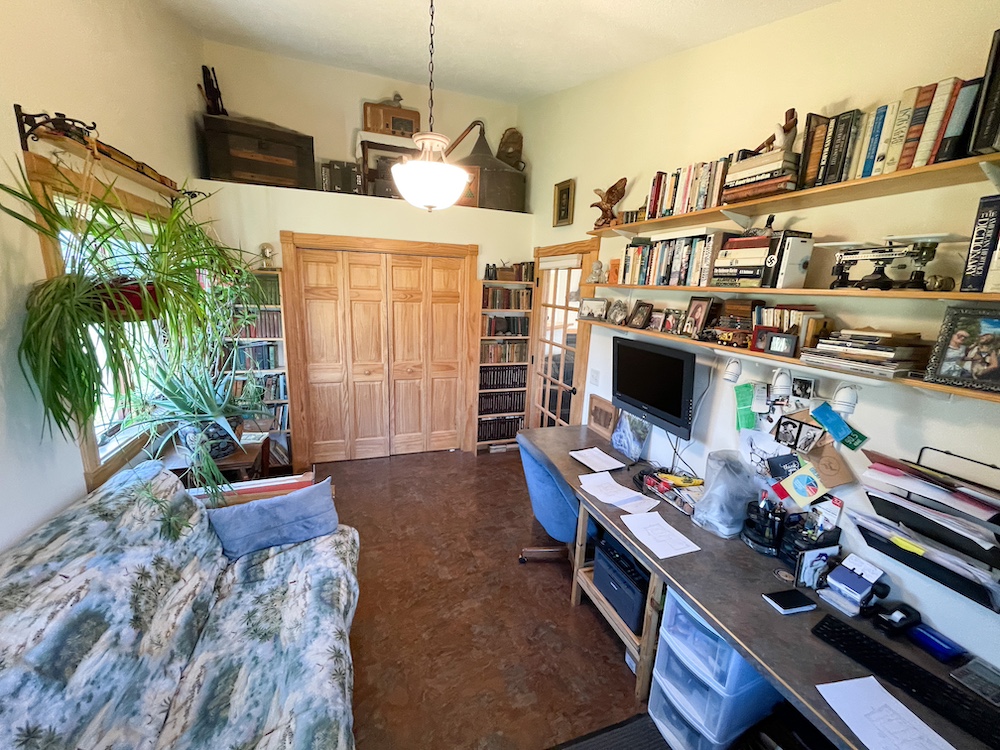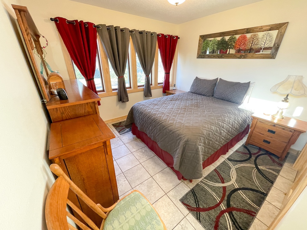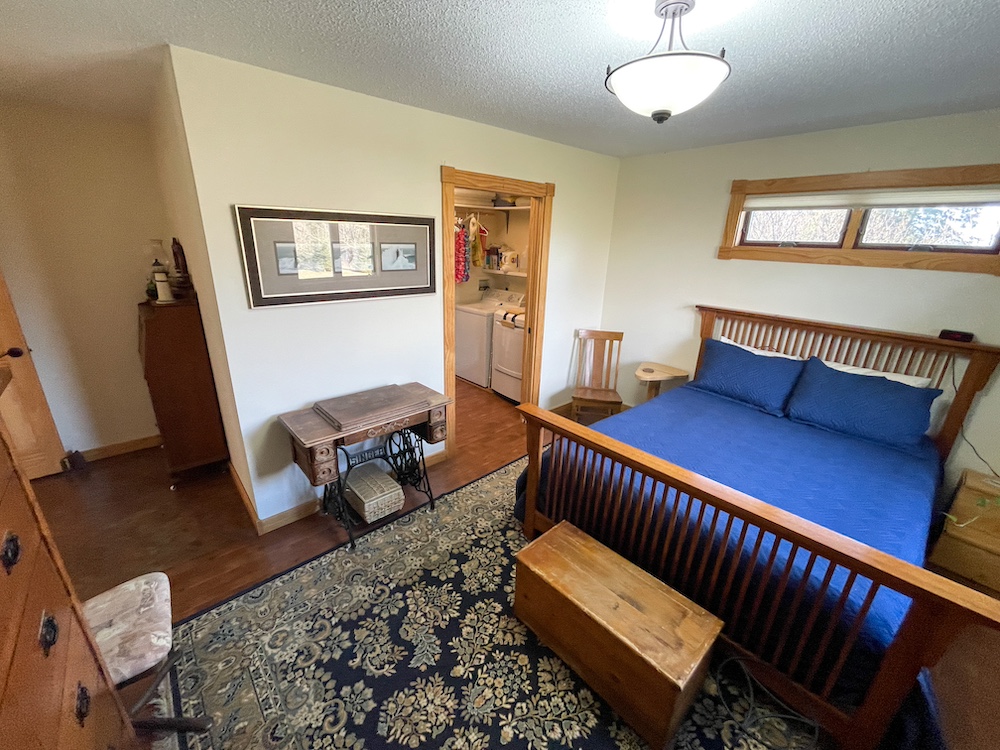 A one-bedroom, one-bathroom park model structure sits near the main home and serves as guest accommodations. It provides sleeping space for up to five individuals and adds flexibility for visitors or seasonal use.
