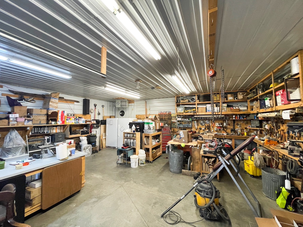 - Multiple outbuildings including shop, barn, and machine shed