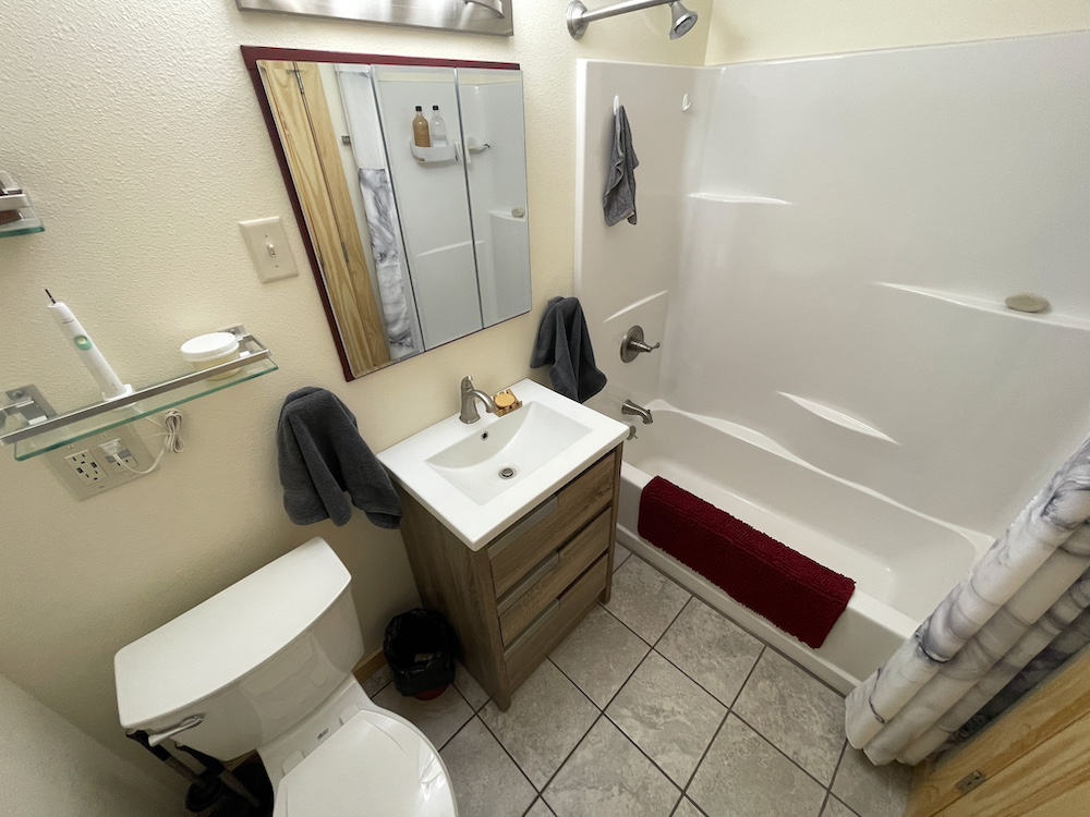 - Guest park model with one bedroom and one bathroom