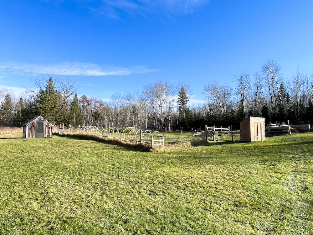 The soils across much of the acreage are predominantly Nebish Loam. These soils have supported extensive garden development over many years. The land has been maintained without chemical treatments. Compost and soil-building practices have been used to support the vegetable beds and perennial plantings. The property includes a wide range of wild and cultivated species. Wild plants present include several types of berries, plums, grapes, mushrooms, and various herbs. Perennial garden beds include asparagus, horseradish, mint, rhubarb, strawberries, and honeyberries. Numerous herb and flower beds have been developed and contain species across a broad range of plant types. The garden areas reflect long-term cultivation practices and the soil characteristics of this region of Clearwater County.