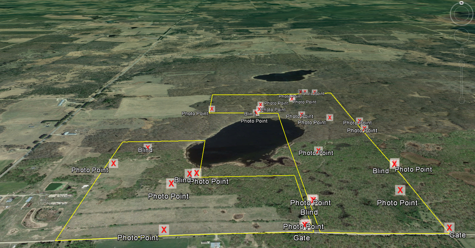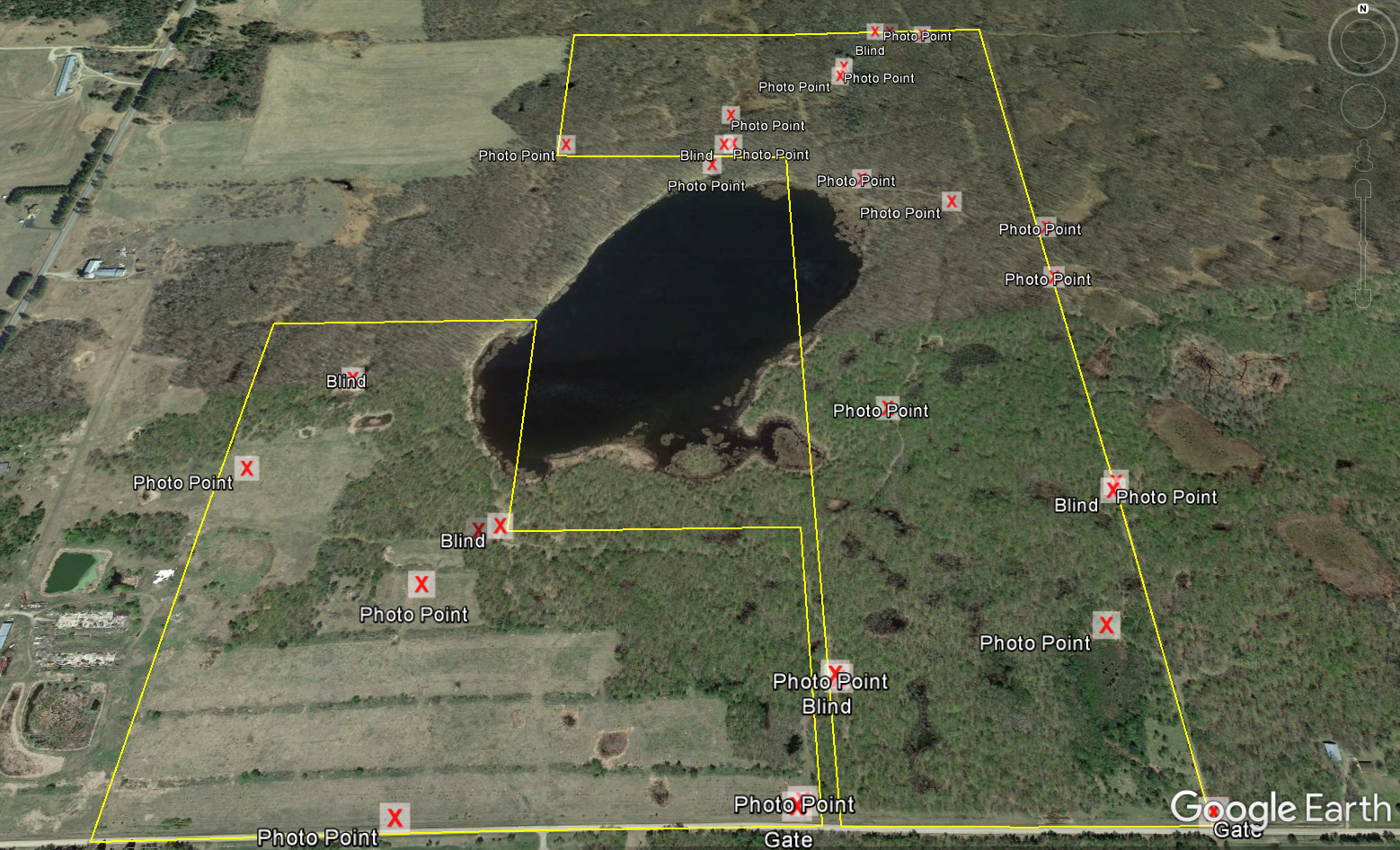 Big Game, Waterfowl, Upland Game, Tree Stands/Blinds, Food Plot, Fish, Wetlands, Small Game, Trail Network, Gated Entrance