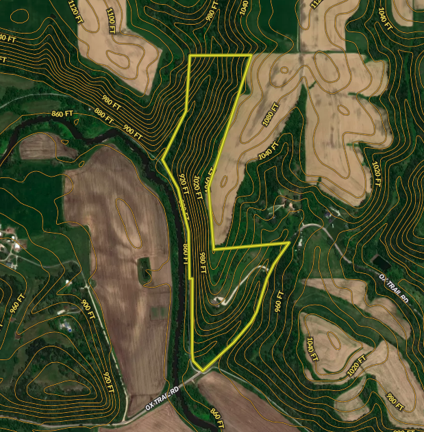 Regarding hunting, the property is unique in shape but offers some great hunting opportunities. You have full access from the house, and as you head north along the property line, the slope gets very steep, providing a perfect pinch and funnel for the deer to travel. There is a nice spot to put a food plot inside the timber next to the neighbor's tillable land. You can use the bike trail to access the deep valley that is part of the property on the north end; there is an overgrown old logging road there that you could clear out and maybe even add a food plot. There are some areas just north of the house on the hill. You could also add food plots and box blinds for hunting right out your door.