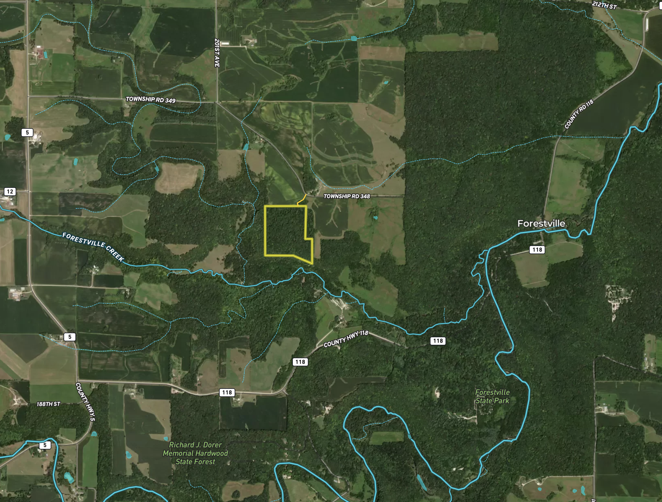 A property like this rarely comes on the market, I first walked this property over five years ago, and I just loved what it had to offer, so when the sellers called me to tell me it was time to sell to say I was excited that would be putting it lightly. This property offers so much to a variety of people, an awesome hunting parcel, a great place to camp at or build your dream home or cabin in the woods, a place to get out and ride horses, dirt bikes, ATVs, etc. The property sits on the West side of Forestville/Mystery Cave State Park, and the SE corner connects to state Parkland. The access to the property is via a 33' wide recorded easement off of Mission Ln that leads into the trail network on the property. The main trail is wide enough to take your vehicle back to the campsite in the woods towards the property's southern edge, which overlooks the big valley and Forestville Creek below it. There are many trails throughout the property if you want to hike or ride or have reasonable access around the property. The property has mature black walnut and oak trees, some ready to be harvested, and many more up-and-coming trees. If you are looking at the property for hunting, I don't think you will be disappointed; there is deer sign all over the property; just to the south of the property is nearly a shear wall drop-off, which creates a natural travel corridor on the south end of this property for the deer to move through the property. There are agricultural fields to the north and east, and the neighbor to the west owns over 400 acres. This property sits on top of the bluff and has little pockets of rolling terrain; there are several places you could add a pond and clear a spot for food plots. Call Bob to schedule your private showing.