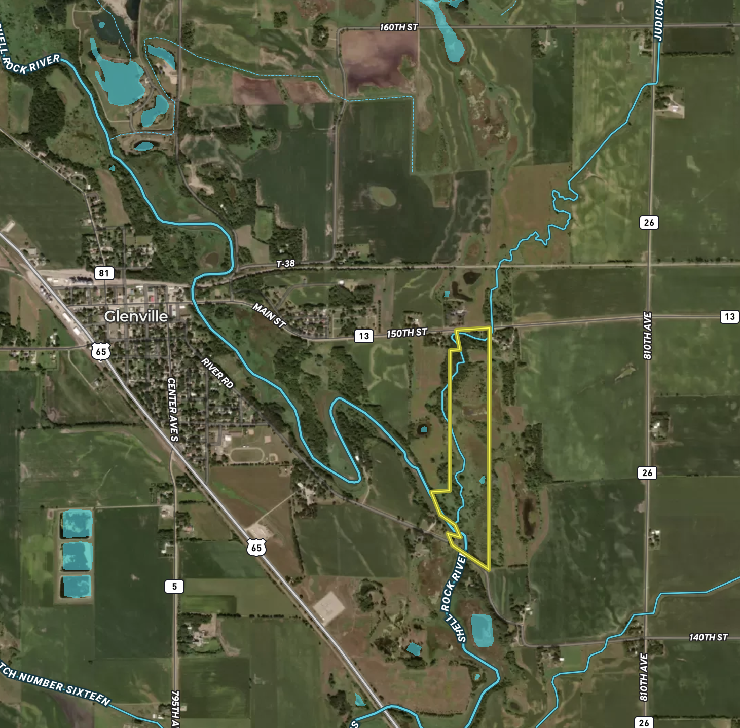 Awesome small hunting tract on the edge of Glenville. This parcel has a great area for a future food plot or two. There is plenty of wildlife sign all over the property. The Southwest dies borders Shell Rock River. Access from the north and south. This property will not last long on the market.