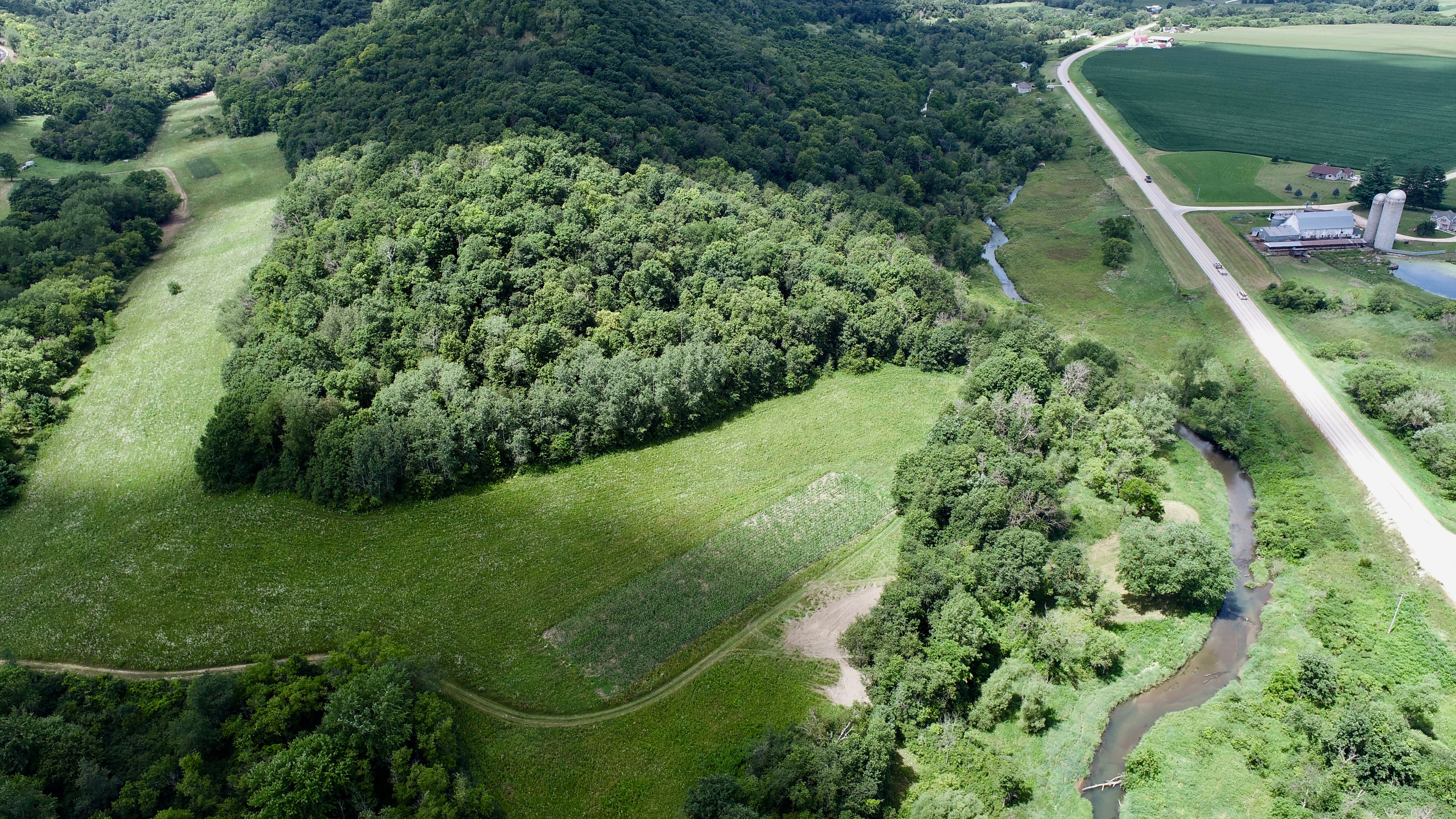 Check it out! The Red Eye Ranch is on the market, and it is situated just outside Money Creek and sports some amazing attributes. The property includes a 1500’ sq ft cabin/shed that features a walk-in cooler, a large sleeping area with a kitchen, one bathroom with shower, washer, and dryer—heated by a wood burner or a forced-air furnace. The septic was installed for up to a three-bedroom home. The sellers will be leaving a smokehouse and a great meat pole for hanging your deer. The property has roughly 1100’ feet of frontage along Money Creek, which makes for excellent trout fishing. There are approximately 22 acres of tillable of which most are enrolled in CRP. If the cabin is not enough room to stretch your elbows, there is power hookup available for up to 6 campers/RV’s. The property consists of many species of timber, including walnut, oaks, maples, cedar. There is plenty of rolling terrains which you are accustomed to seeing in the bluff country. There is an excellent trail network that gets you around the parcel. There is a ton of field edges to hunt, south-facing slopes, and food plots. The deer and turkey numbers in this area are high, and the quality of deer in the area is what you come to expect from Houston County. Large parcels like this do not come on the market often, and having food, water, and cover on it is even tougher to find. Give the listing agent a call to schedule your private showing.
