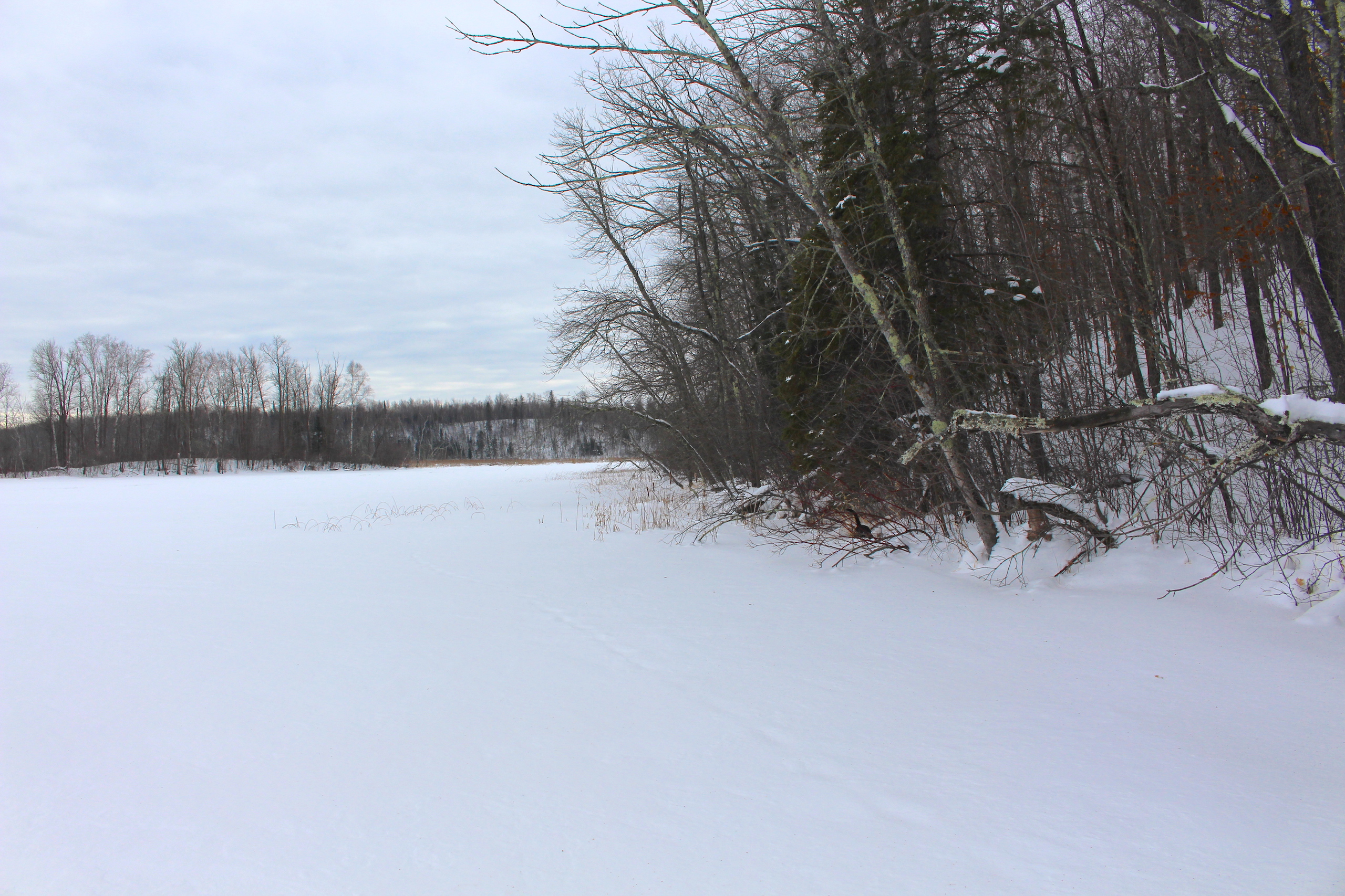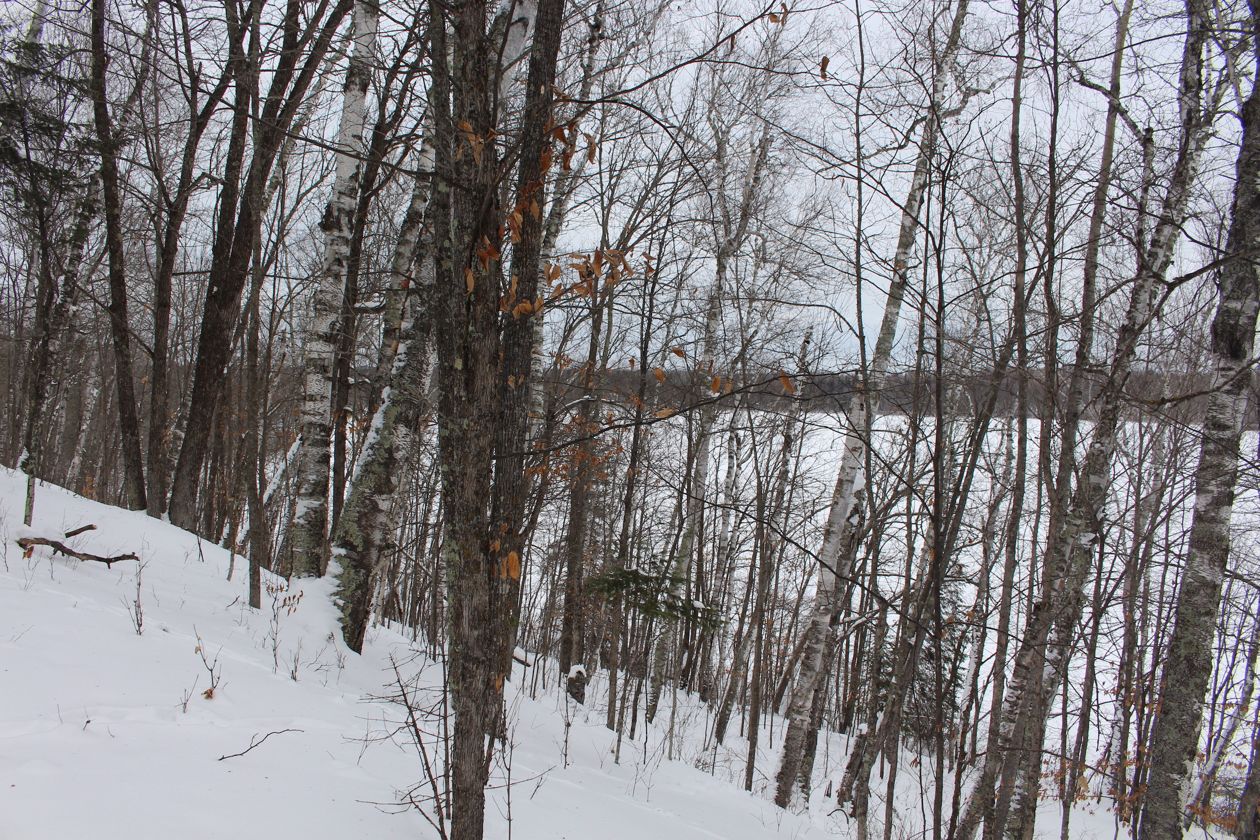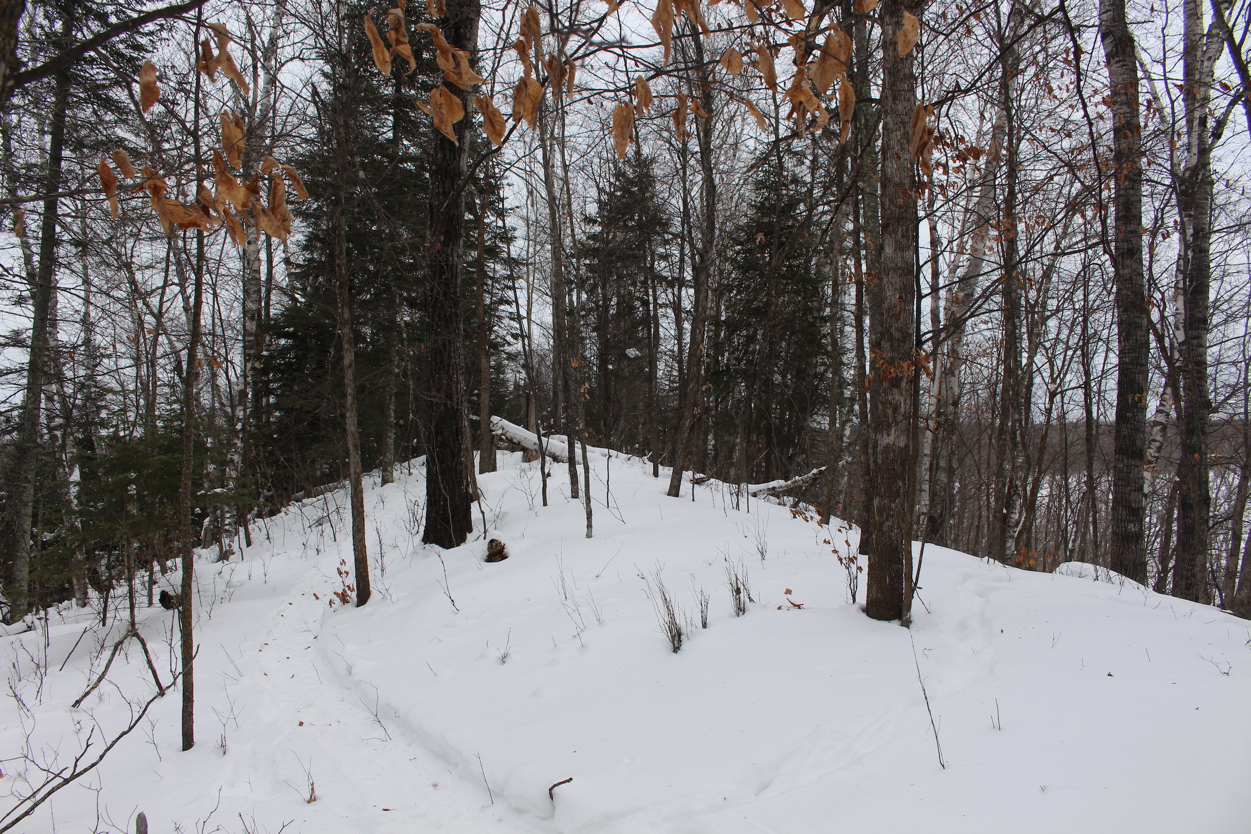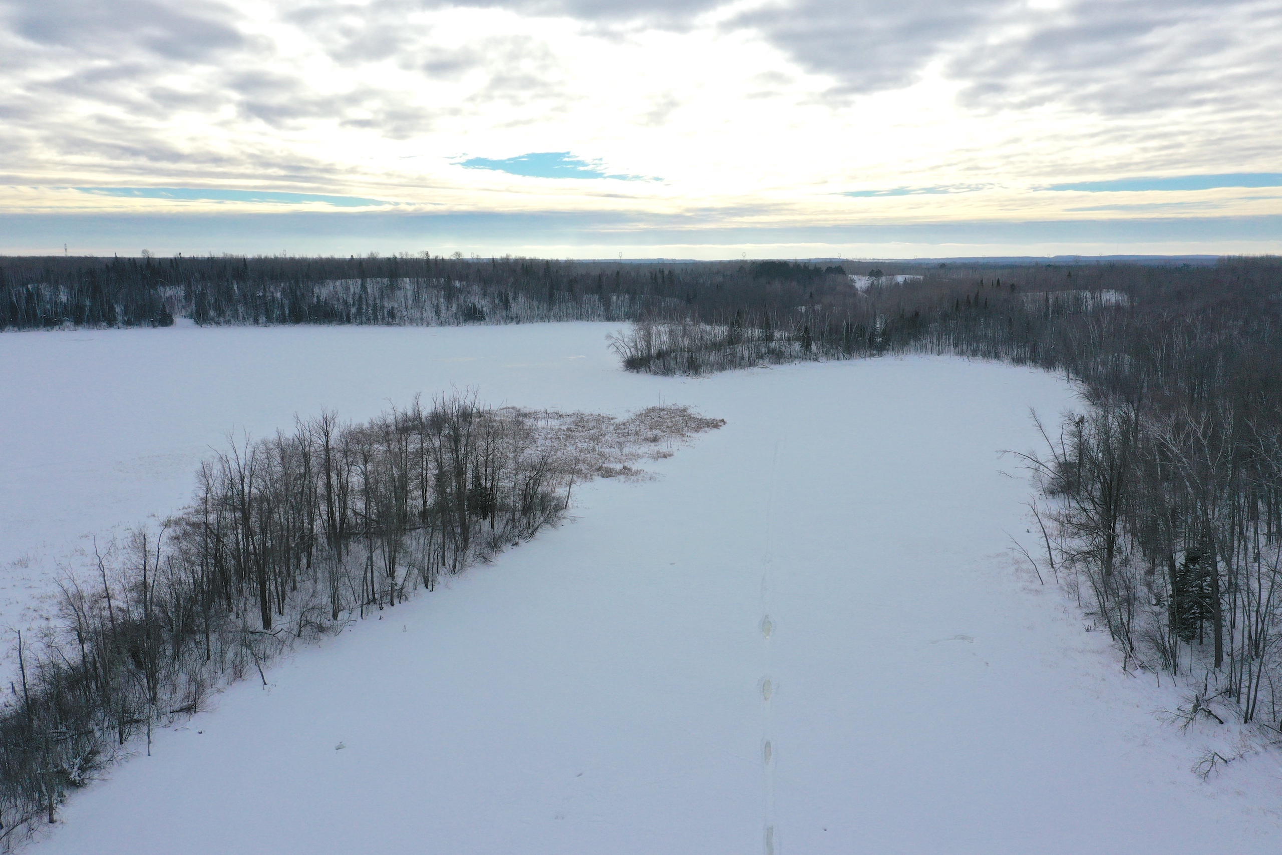 This is one heck of an all-around property! First off it’s a large acreage property as far as lakefront properties go. Itasca County website property details report shows the property as having 2,572 feet of frontage on Nashwauk Lake approximately. The way this property is set up gives ultimate privacy! Also, it’s tucked along the west shoreline with part of the acreage having a small bay in front of it with a point of land coming out that would be a beautiful spot to watch various birds and other wildlife hang out around. The northern half of the land is more looking out at the main lake. There are also only a few cabins scattered around the lake so it has a very Northwoods feel to it! The land is made up of the mostly high ground. It has some very cool topography features given it has longer-running ridges and also some rolling hills. This created excellent areas for deer to bed upon hillsides out of the wind or to catch more direct sun. Considering the snow depth and time of year I was surprised to see the amount of deer sign I did on the property. The property is an excellent deer, bear, and grouse habitat. The lake has lots of great spots to set up for hunting waterfowl. The hills and ridges are made up of a mix of mature aspen, maple a few oaks, and various other northern MN tree types. Access to the property the seller has procured a “permit to cross” from the county as well as an easement to cross a property coming in along the gravel road. The permit to cross starts at the public boat access parking area and then works its way into the property from there. MN DNR Lakefinder shows the lake as having crappie, bluegill, northern pike, largemouth bass, tullibee, and several other species. If this property sounds like it might be that hunting, fishing Northwood’s and lake life paradise give me a call today to set up your private showing!
