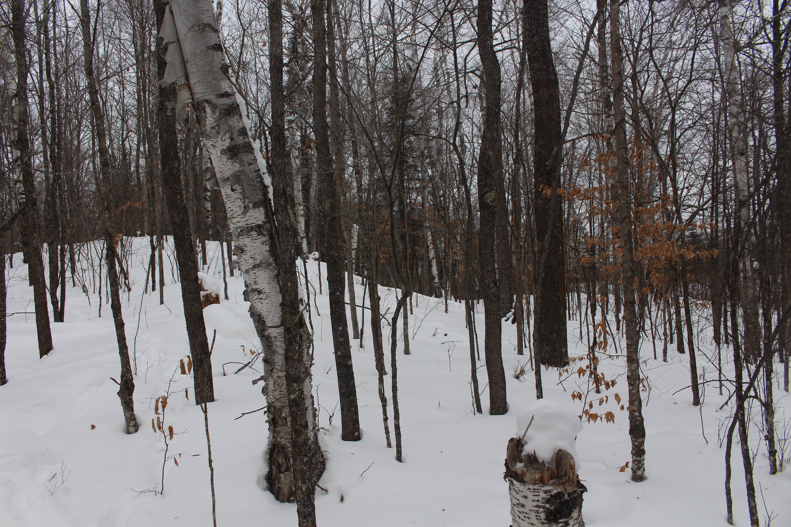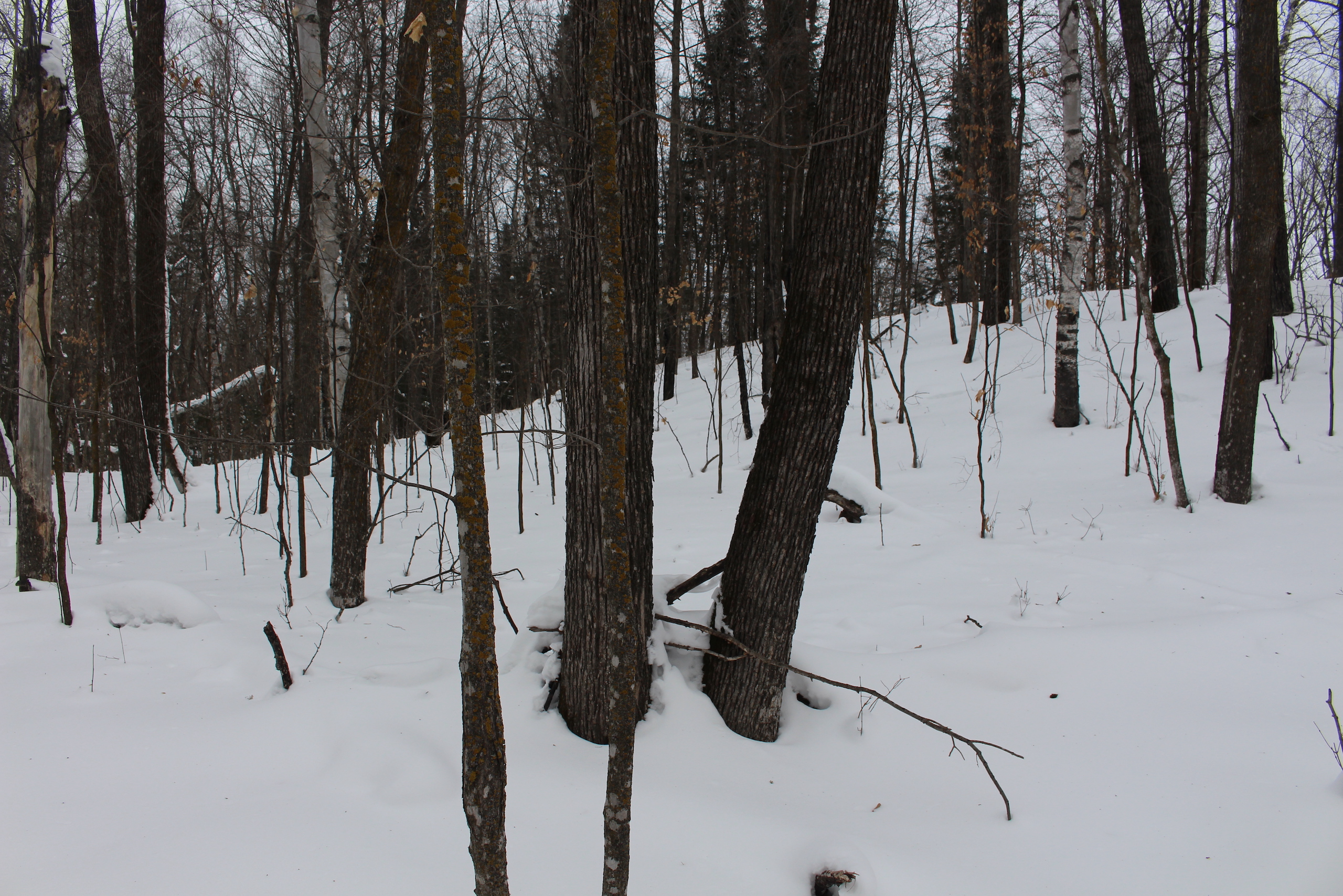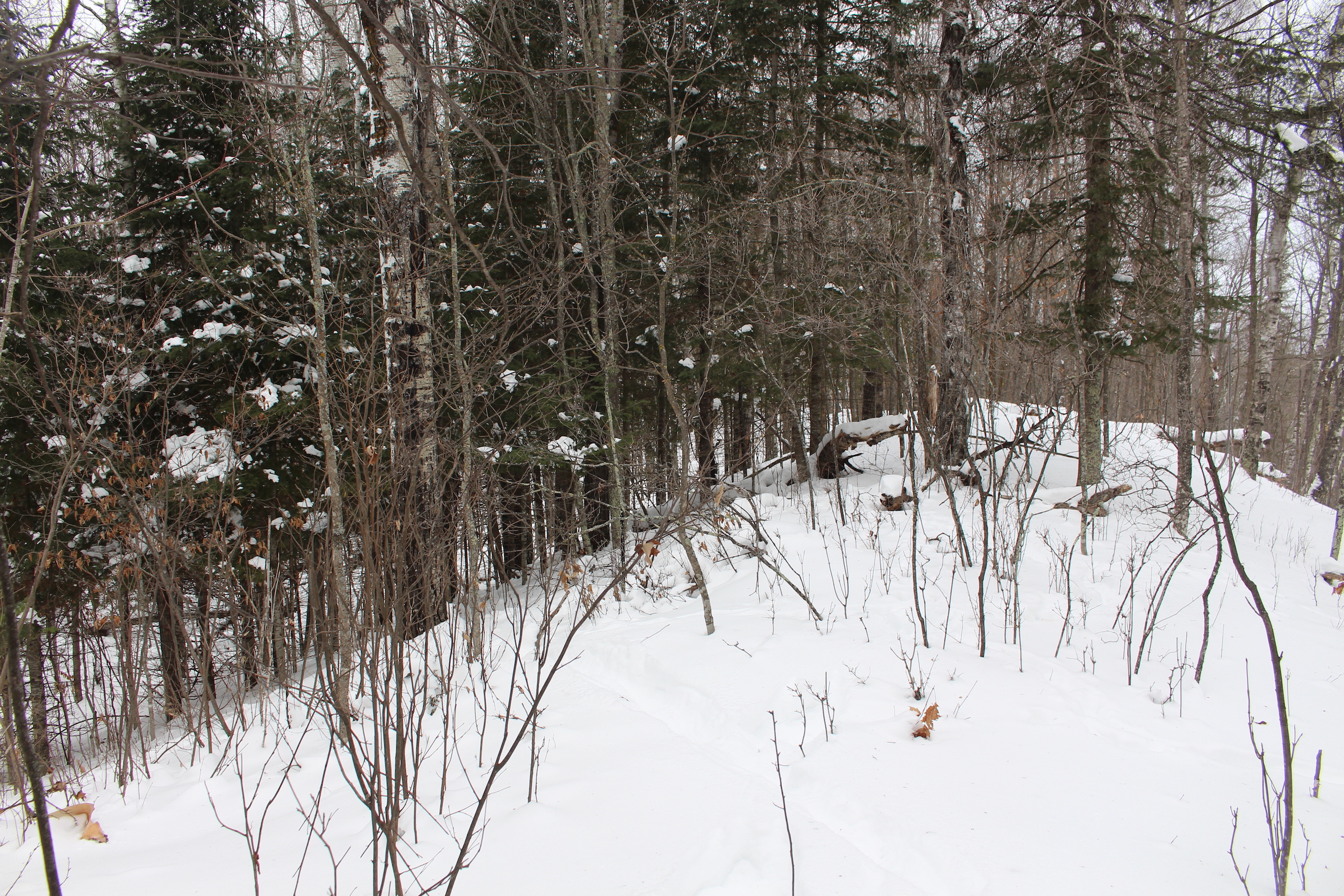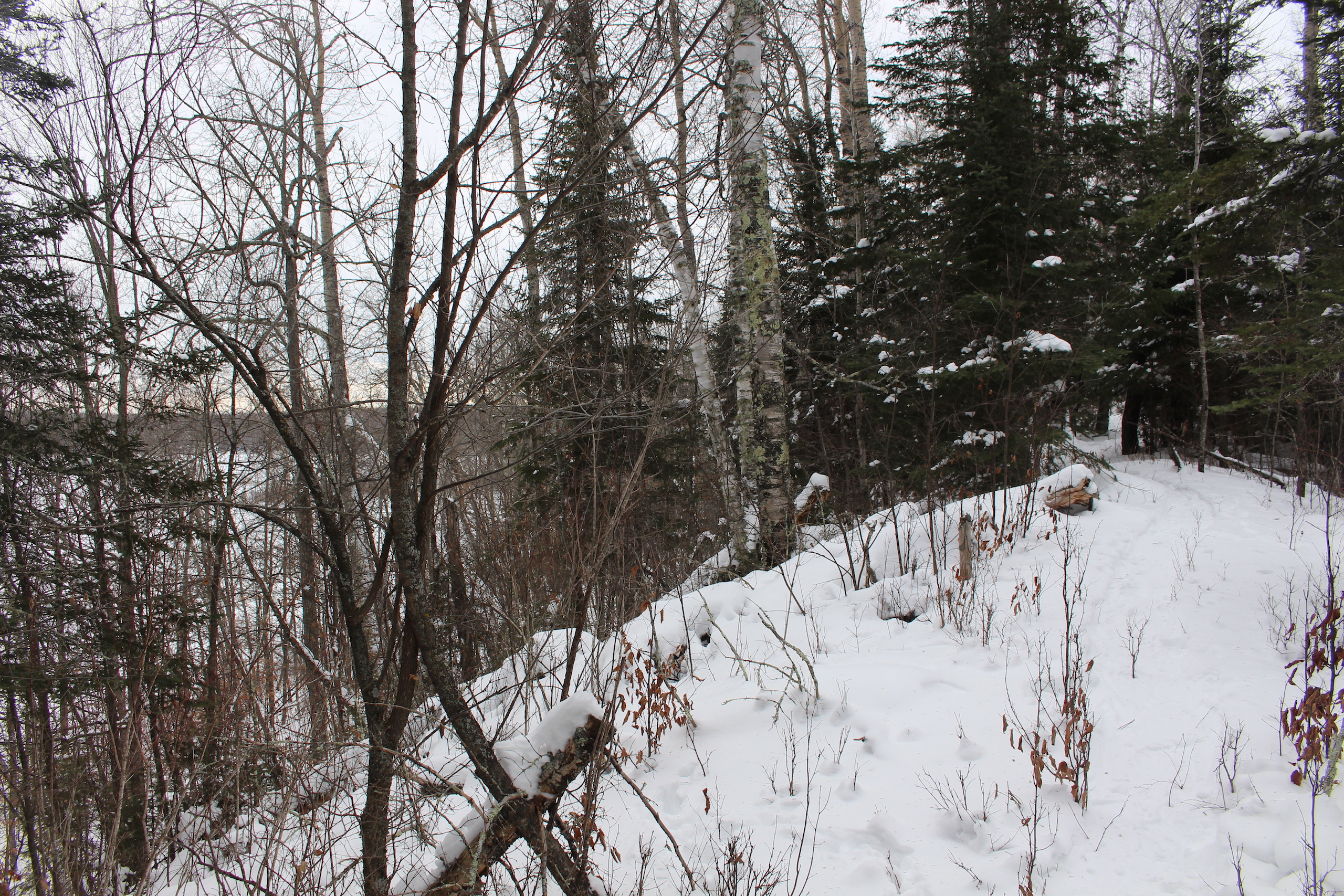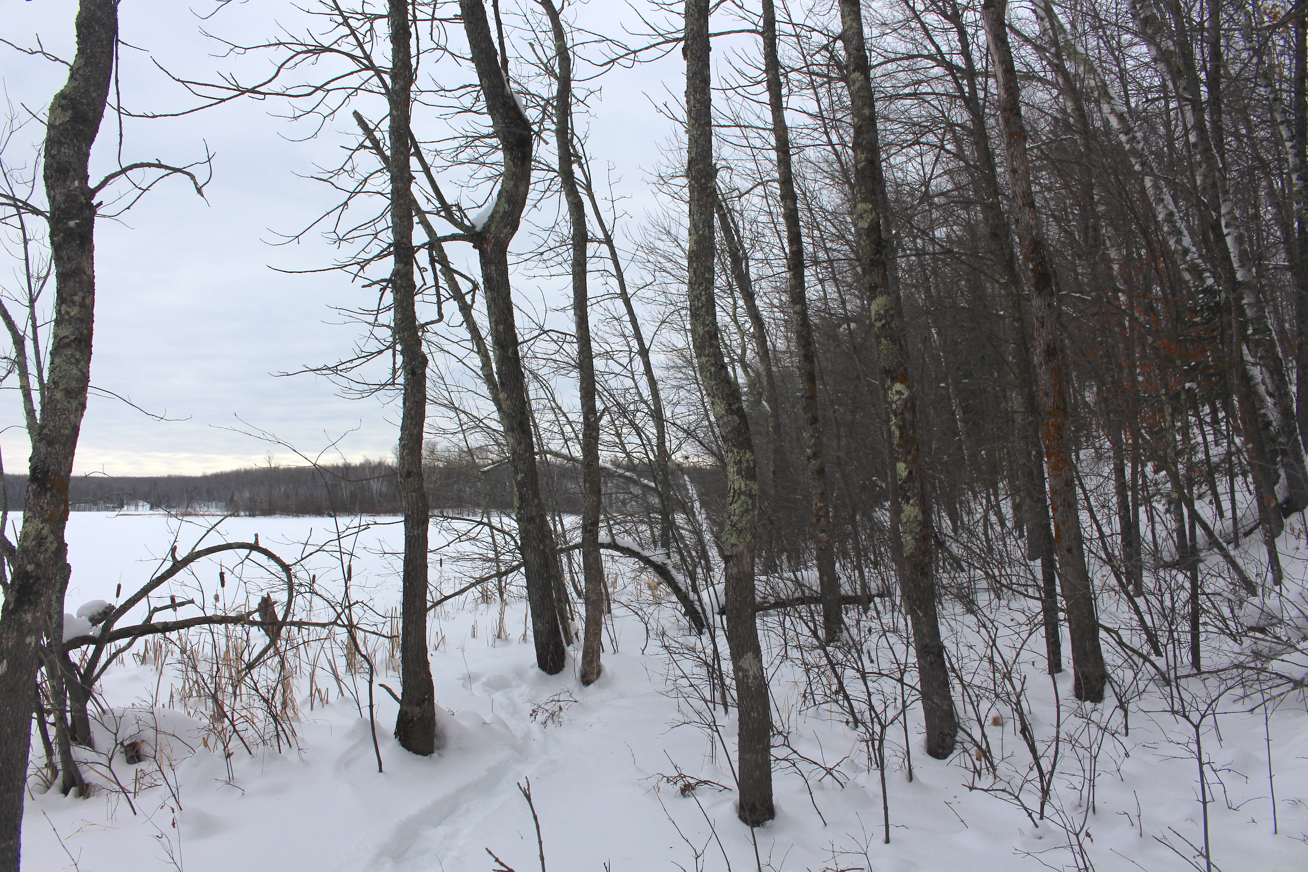 This is one heck of an all-around property! First off it’s a large acreage property as far as lakefront properties go. Itasca County website property details report shows the property as having 2,572 feet of frontage on Nashwauk Lake approximately. The way this property is set up gives ultimate privacy! Also, it’s tucked along the west shoreline with part of the acreage having a small bay in front of it with a point of land coming out that would be a beautiful spot to watch various birds and other wildlife hang out around. The northern half of the land is more looking out at the main lake. There are also only a few cabins scattered around the lake so it has a very Northwoods feel to it! The land is made up of the mostly high ground. It has some very cool topography features given it has longer-running ridges and also some rolling hills. This created excellent areas for deer to bed upon hillsides out of the wind or to catch more direct sun. Considering the snow depth and time of year I was surprised to see the amount of deer sign I did on the property. The property is an excellent deer, bear, and grouse habitat. The lake has lots of great spots to set up for hunting waterfowl. The hills and ridges are made up of a mix of mature aspen, maple a few oaks, and various other northern MN tree types. Access to the property the seller has procured a “permit to cross” from the county as well as an easement to cross a property coming in along the gravel road. The permit to cross starts at the public boat access parking area and then works its way into the property from there. MN DNR Lakefinder shows the lake as having crappie, bluegill, northern pike, largemouth bass, tullibee, and several other species. If this property sounds like it might be that hunting, fishing Northwood’s and lake life paradise give me a call today to set up your private showing!