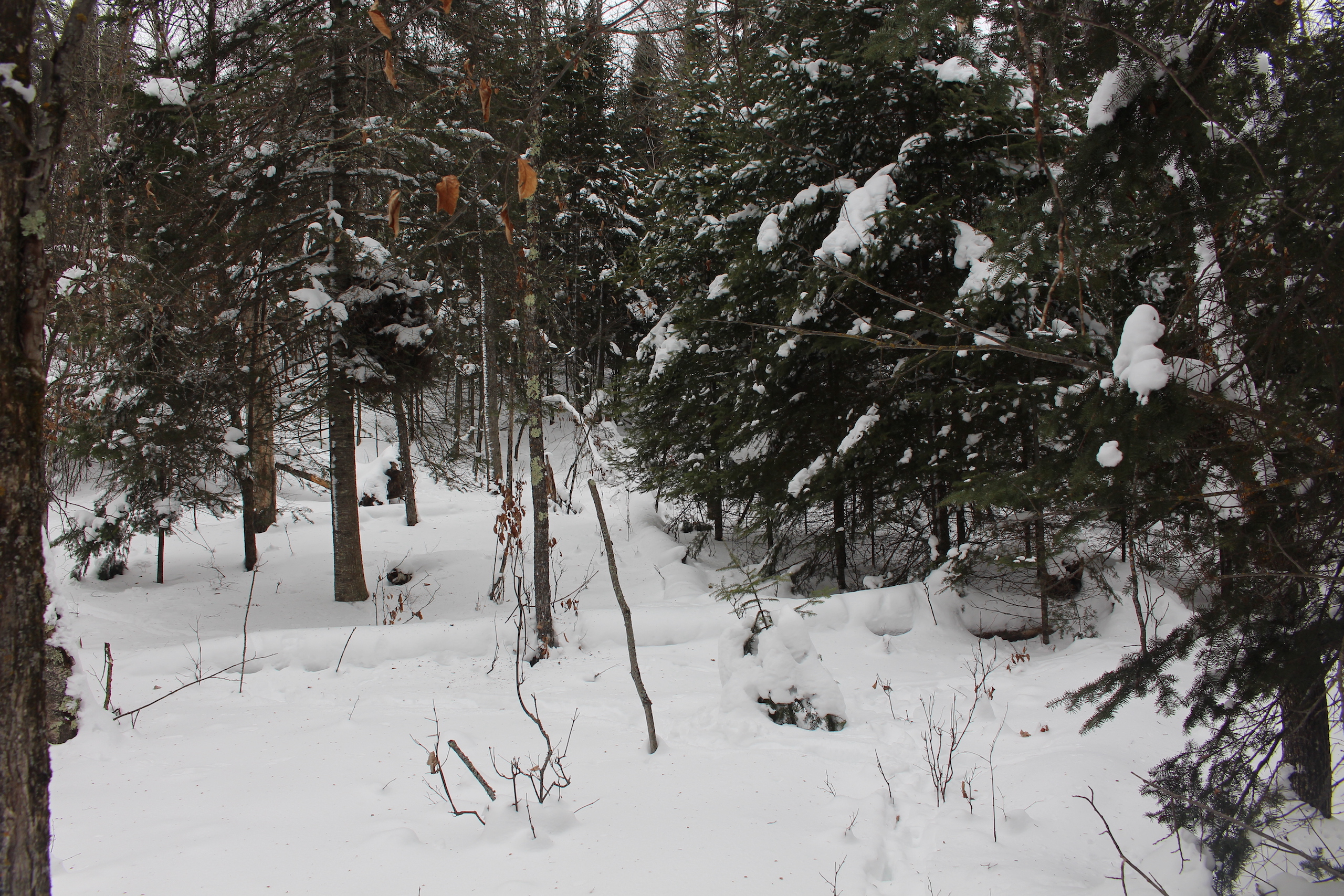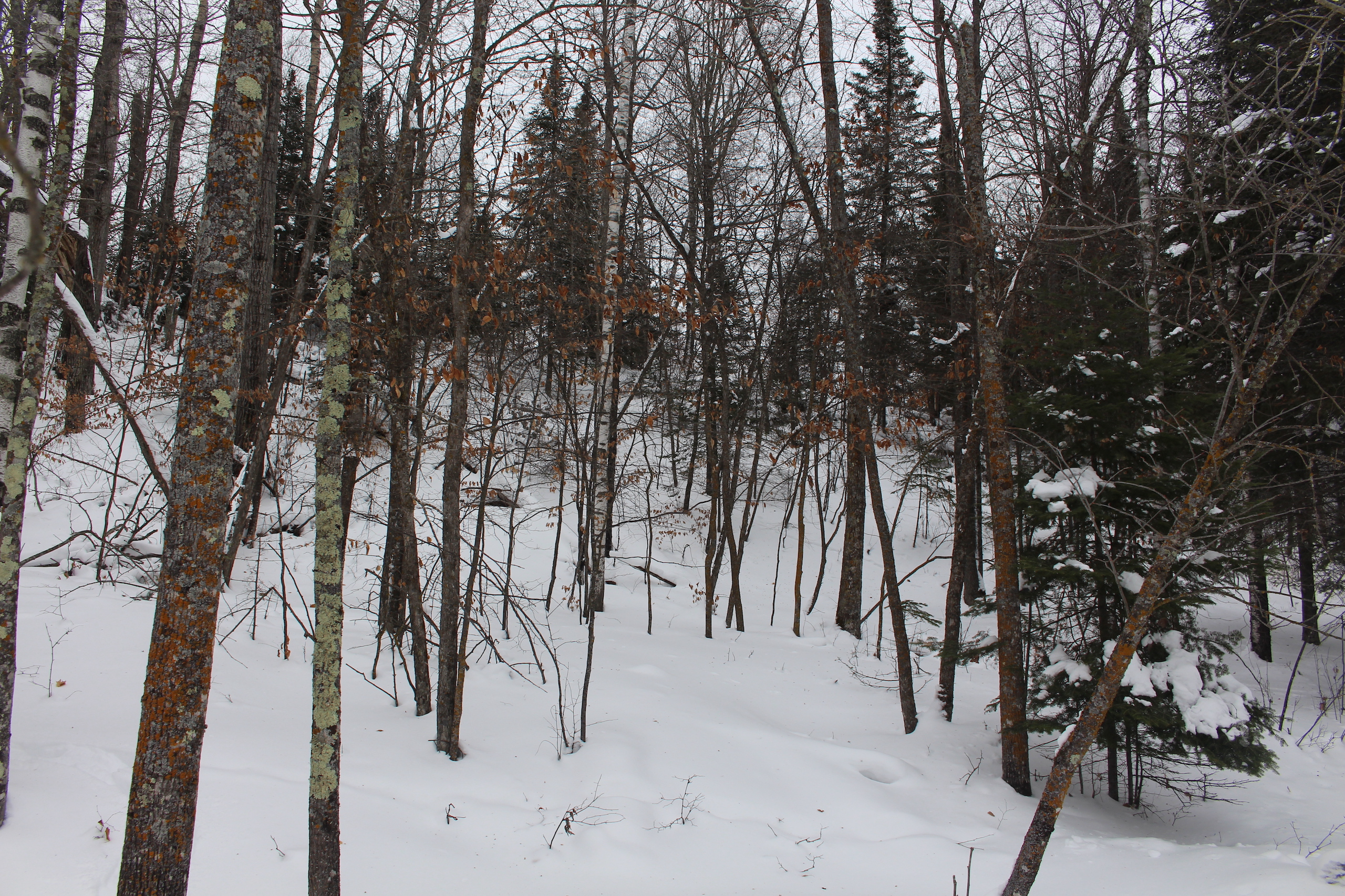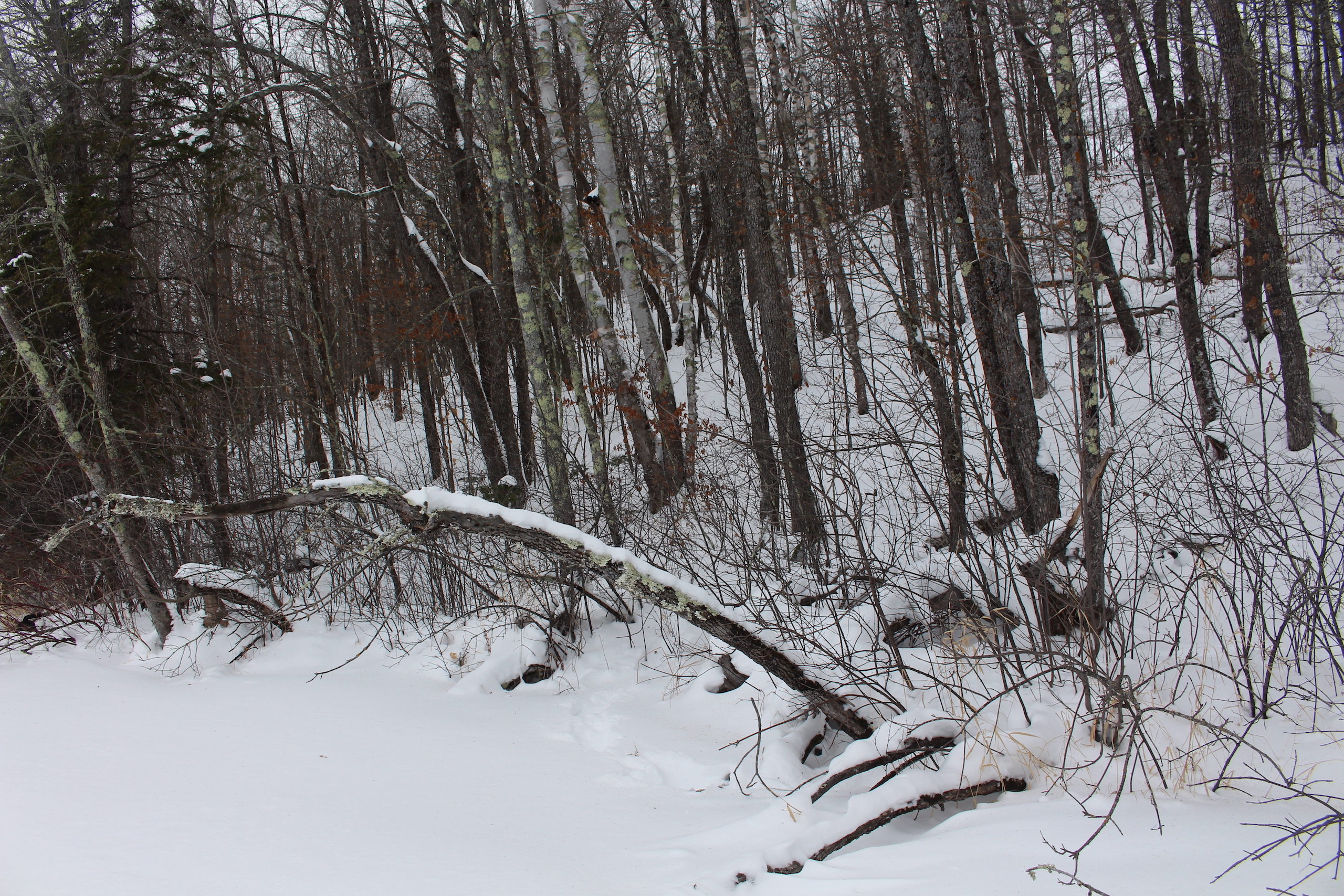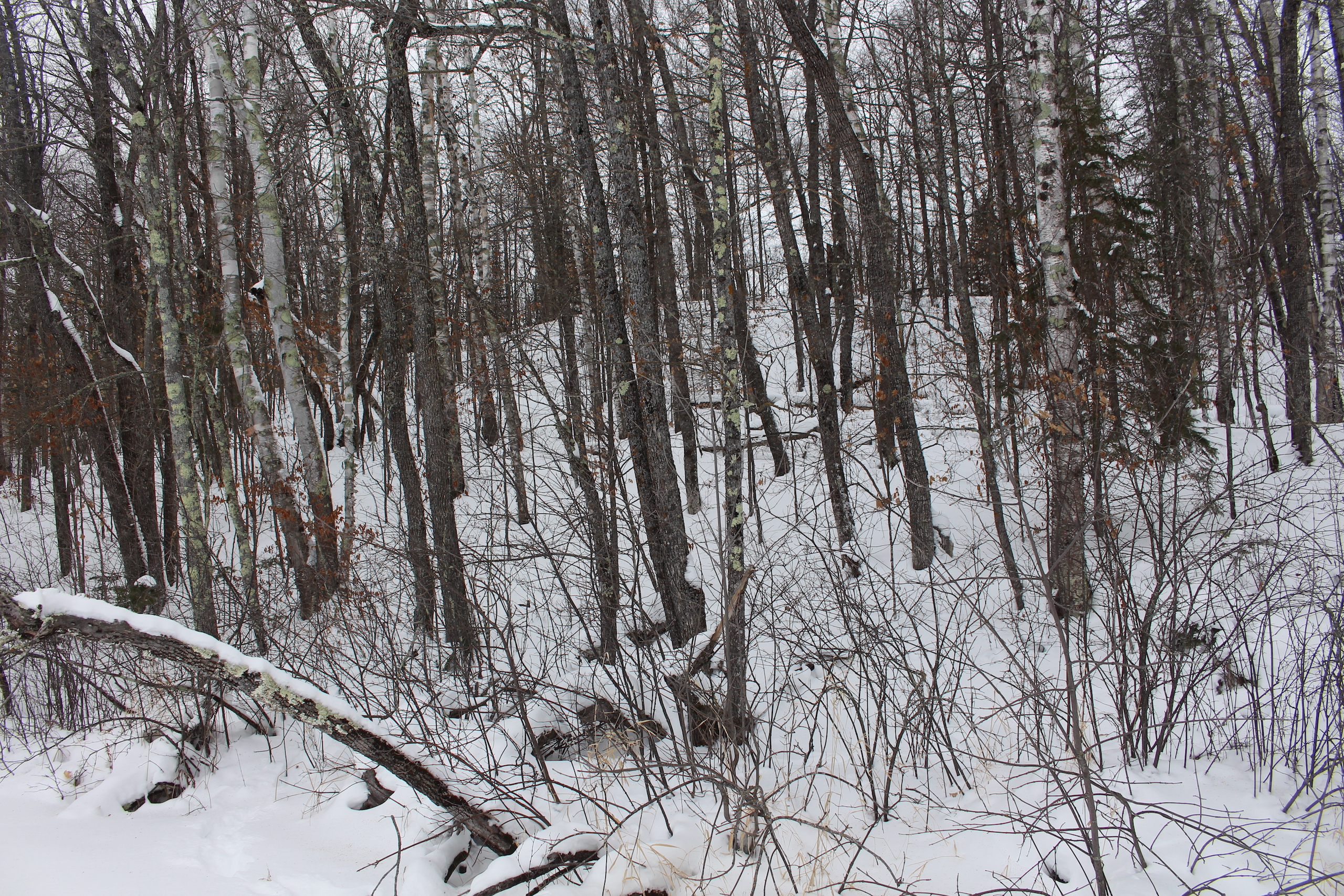 This is one heck of an all-around property! First off it’s a large acreage property as far as lakefront properties go. Itasca County website property details report shows the property as having 2,572 feet of frontage on Nashwauk Lake approximately. The way this property is set up gives ultimate privacy! Also, it’s tucked along the west shoreline with part of the acreage having a small bay in front of it with a point of land coming out that would be a beautiful spot to watch various birds and other wildlife hang out around. The northern half of the land is more looking out at the main lake. There are also only a few cabins scattered around the lake so it has a very Northwoods feel to it! The land is made up of the mostly high ground. It has some very cool topography features given it has longer-running ridges and also some rolling hills. This created excellent areas for deer to bed upon hillsides out of the wind or to catch more direct sun. Considering the snow depth and time of year I was surprised to see the amount of deer sign I did on the property. The property is an excellent deer, bear, and grouse habitat. The lake has lots of great spots to set up for hunting waterfowl. The hills and ridges are made up of a mix of mature aspen, maple a few oaks, and various other northern MN tree types. Access to the property the seller has procured a “permit to cross” from the county as well as an easement to cross a property coming in along the gravel road. The permit to cross starts at the public boat access parking area and then works its way into the property from there. MN DNR Lakefinder shows the lake as having crappie, bluegill, northern pike, largemouth bass, tullibee, and several other species. If this property sounds like it might be that hunting, fishing Northwood’s and lake life paradise give me a call today to set up your private showing!