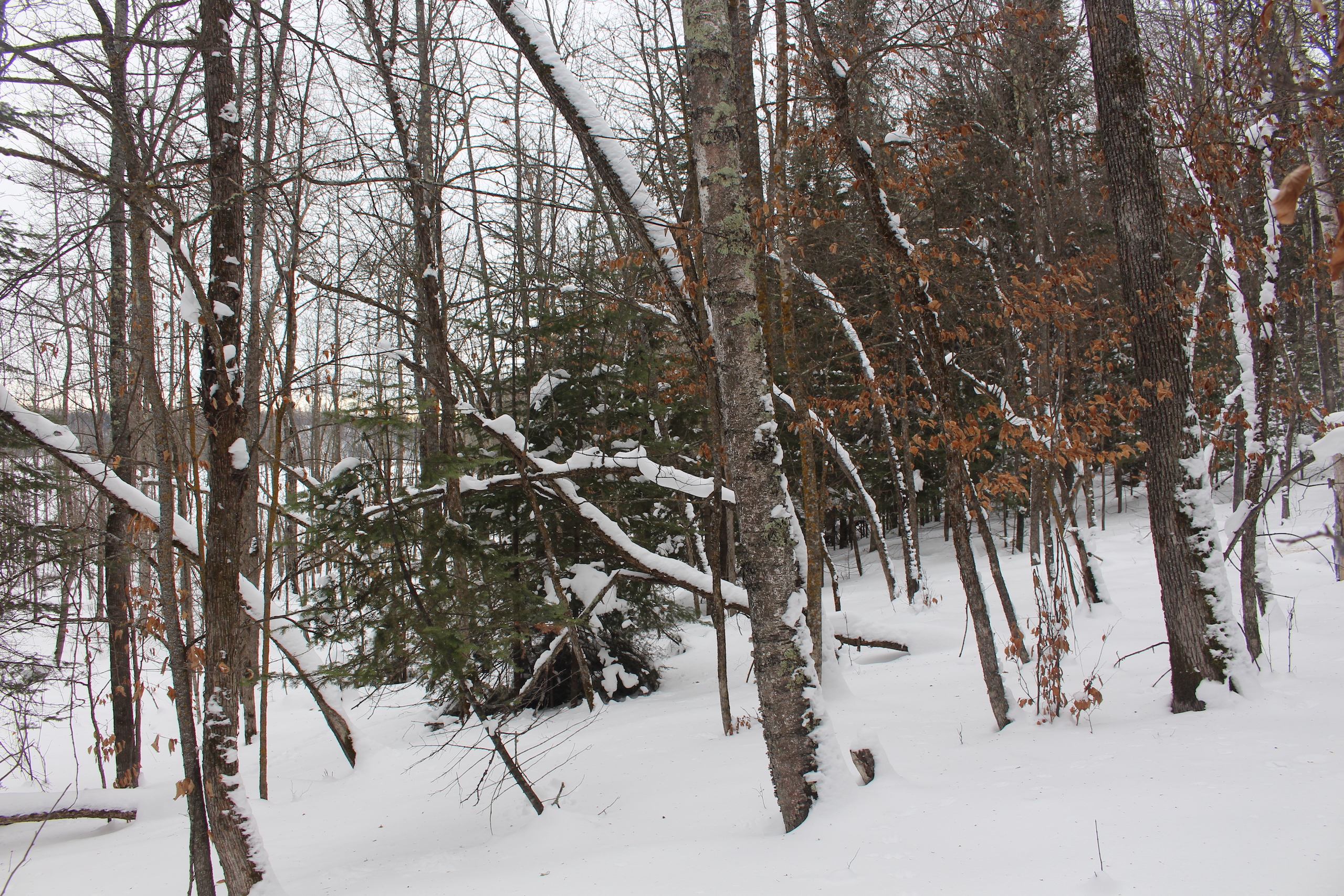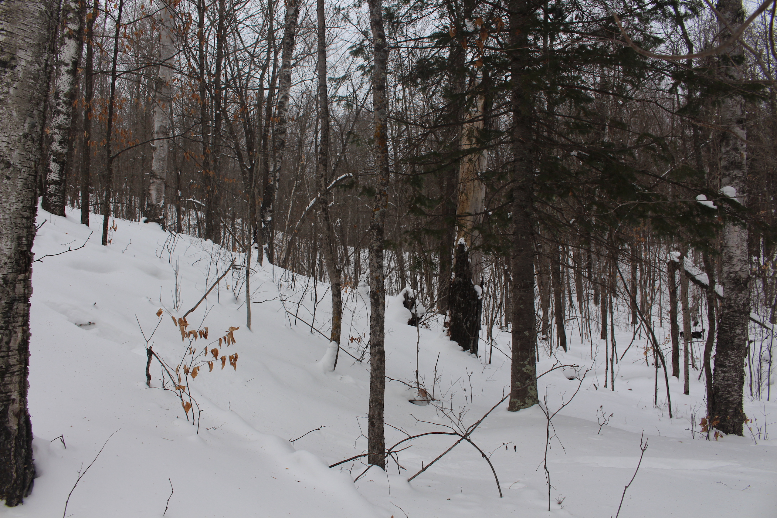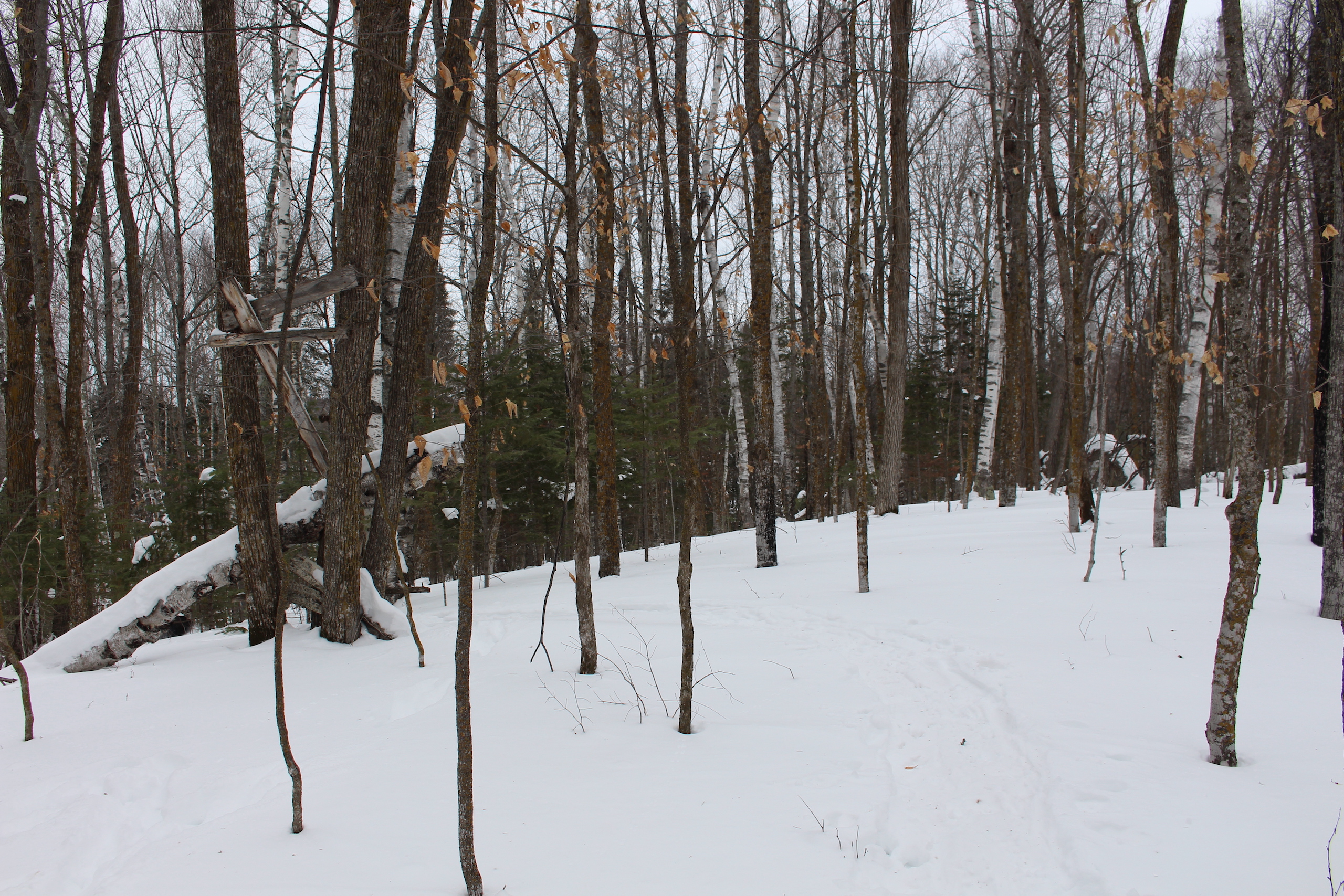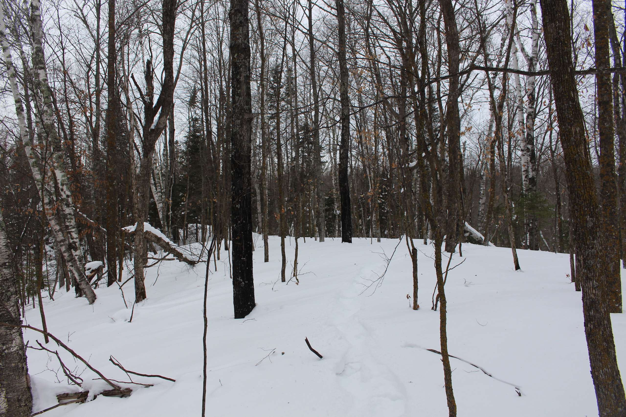 This is one heck of an all-around property! First off it’s a large acreage property as far as lakefront properties go. Itasca County website property details report shows the property as having 2,572 feet of frontage on Nashwauk Lake approximately. The way this property is set up gives ultimate privacy! Also, it’s tucked along the west shoreline with part of the acreage having a small bay in front of it with a point of land coming out that would be a beautiful spot to watch various birds and other wildlife hang out around. The northern half of the land is more looking out at the main lake. There are also only a few cabins scattered around the lake so it has a very Northwoods feel to it! The land is made up of the mostly high ground. It has some very cool topography features given it has longer-running ridges and also some rolling hills. This created excellent areas for deer to bed upon hillsides out of the wind or to catch more direct sun. Considering the snow depth and time of year I was surprised to see the amount of deer sign I did on the property. The property is an excellent deer, bear, and grouse habitat. The lake has lots of great spots to set up for hunting waterfowl. The hills and ridges are made up of a mix of mature aspen, maple a few oaks, and various other northern MN tree types. Access to the property the seller has procured a “permit to cross” from the county as well as an easement to cross a property coming in along the gravel road. The permit to cross starts at the public boat access parking area and then works its way into the property from there. MN DNR Lakefinder shows the lake as having crappie, bluegill, northern pike, largemouth bass, tullibee, and several other species. If this property sounds like it might be that hunting, fishing Northwood’s and lake life paradise give me a call today to set up your private showing!