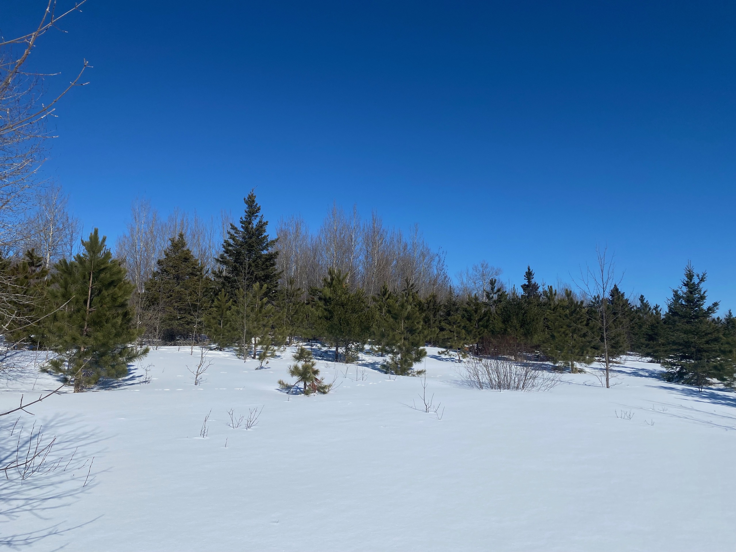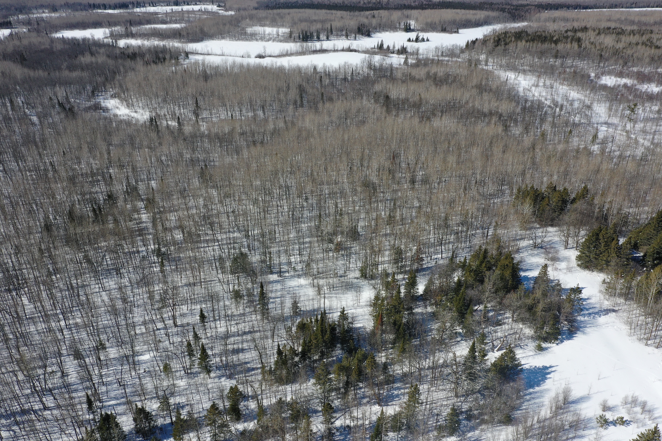 This property is beautiful. The property has very nice rolling hills and is mostly timbered. The majority of the timber is aspen/poplar. There is also a great mix of conifer, and one area of the property is more like meadows mixed with different conifer species. A large amount of this property is on higher ground. There is also an excellent area right up by the road where someone could potentially clear out an area for a camper, cabin, or potential home.