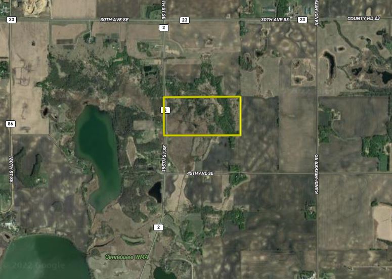 The property is located about 3 miles S of Atwater, 15 miles SW of Litchfield, and about only an hour west of the Twin Cities. After the initial conversation with the seller, I pulled up the property on my mapping system and initially was intrigued with not only seeing that it had a mixture of habitat components. I also noticed that it wasn’t an island out by itself but immediately adjacent to and part of a larger area with a variety of wooded areas and sloughs all of which surrounded by sizeable ag. fields. Before you continue, make sure and go and review the zoomed-in and then broader zoom aerials and/or the interactive map tab in the upper left of the opening screen to see what I am talking about.