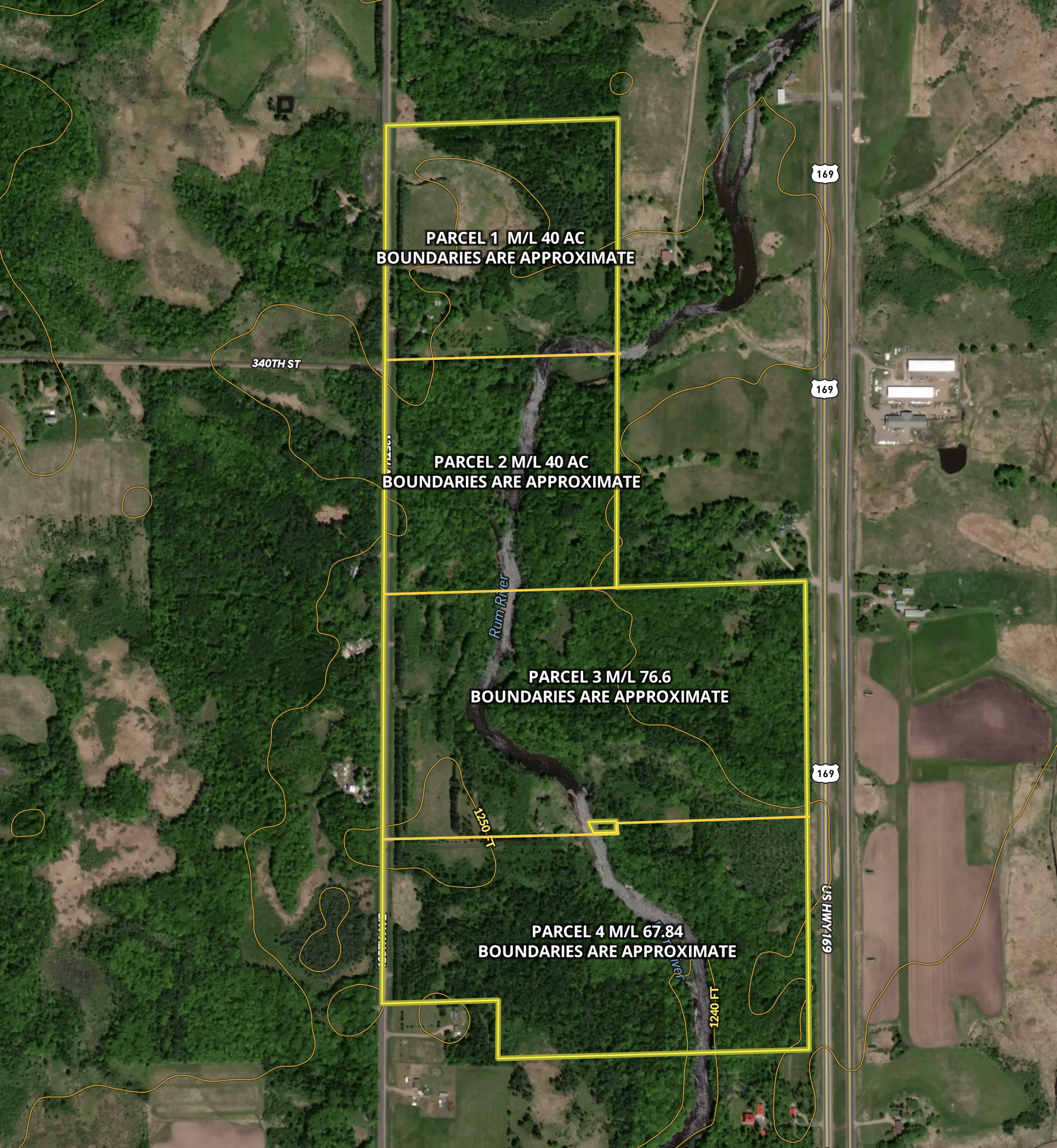 This is the recreational and hunting property you’ve been waiting on! The property is located on both sides of the Rum River. There’s plenty of room to enjoy the outdoor recreational aspect and hunting and fishing. You can hunt deer, bear, turkey, grouse, and waterfowl on the property. You will see plenty of deer sign on the property. It has an excellent mix of pine and hardwood timber with plenty of trails throughout the property. It has a public road frontage on 125th Avenue and Highway 169.