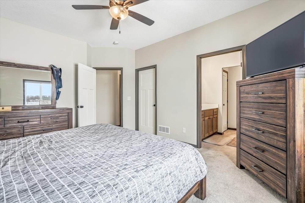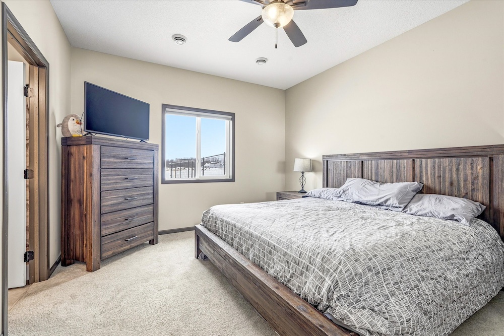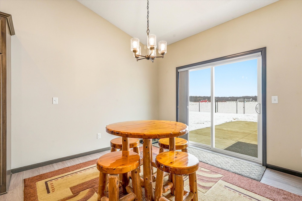 This single-story home, located just north of Princeton, Minnesota, features a thoughtful layout and site plan that combine functional indoor space with outdoor living on 2.38 acres. Built in 2022, the residence includes two bedrooms and two bathrooms. The main suite has a private bathroom. Interior highlights include vaulted ceilings that create a sense of openness in the living areas and an open floor plan that integrates daily living spaces for ease of movement and accessibility. Entry is through a spacious foyer. The home’s design emphasizes everyday convenience with all primary spaces on a single level. The attached three-stall garage offers covered parking and storage for vehicles and equipment. A large concrete patio extends from the back of the home, ideal for outdoor seating and activities. The yard features various plantings, including 17 trees and 5 bushes, placed throughout to create a landscaped setting and help transition from the open lawn to the natural perimeter areas. Inside, the finish level reflects modern construction standards, with open living areas connecting the kitchen, dining, and living spaces. Vaulted ceilings enhance the sense of space, while windows provide plenty of natural light. The primary bedroom has direct access to its own bathroom. The second bedroom and bathroom serve additional household members or guests. Outside, the yard combines open space with deliberate plantings. The arrangement of trees and shrubs frames parts of the property and contributes to a landscape that homeowners can continue to develop or keep in a more natural state. The concrete patio at the back expands outdoor living for dining, seating, or seasonal activities. The three-stall garage meets parking needs and offers covered storage for vehicles, lawn equipment, and other belongings. The property sits between the communities of Princeton and Milaca in central Minnesota, providing easy access to services, retail and regional transportation routes. Princeton is about 9 miles south, while Milaca is around 9 miles north. U.S. Highway 169 and State Highway 95 are nearby, supporting regional travel. St. Cloud is approximately 30 miles west, and the Minneapolis–Saint Paul metro area is roughly 50 miles south. Nearby towns such as Zimmerman, Foley and Cambridge offer additional shopping, healthcare, and community resources while maintaining a rural residential feel. Overall, this property combines recent construction, a functional single-story layout, outdoor space, and a location that balances rural surroundings with convenient access to towns and cities in central Minnesota. The large black fence will be removed before closing and is not cemented into the ground.