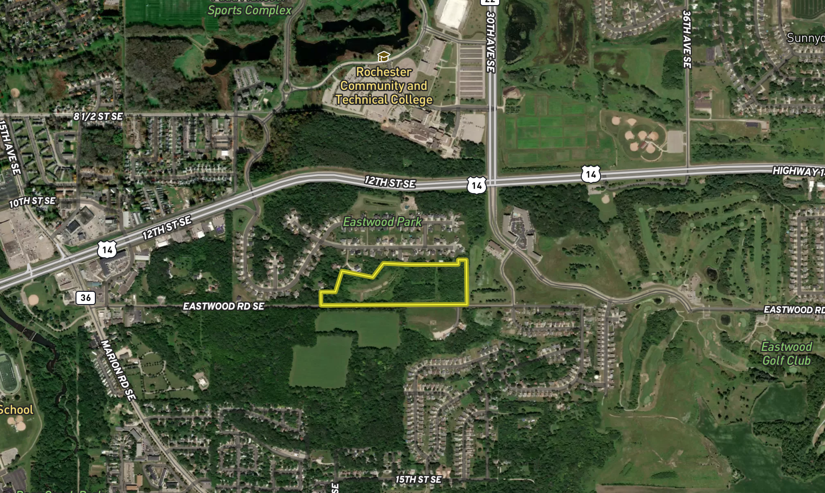 Excellent investment opportunity for residential development near RCTC. This property is currently zoned R1 with city water and sewer into the property. There is access on the south from Eastwood Road SE and the north off Golfwood Place SE. There is a city sewer and water on the property. The property sits alongside a newer housing development and would be a great spot to finish building lots or for your private spot to build on acreage within the city limits. This property would be a great option for someone looking to diversify their investment portfolio with a land purchase. More development land is available along Eastwood Golf Course. Give Bob a call for your private showing.