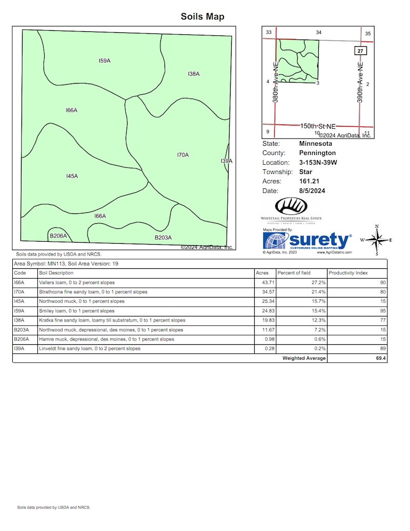 - Great soils with farming potential. Over 76% of the property avgs an 80+ CPI.