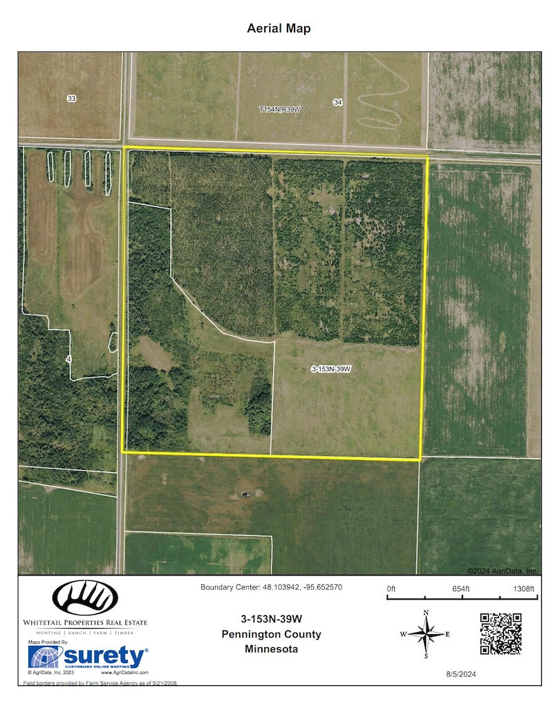 This diverse income-producing hunting parcel in NE Pennington Co is located just east of Thief River Falls, about 20 minutes. The property offers excellent hunting for whitetail, black bear, grouse and turkey. It is in a no quota zone for bear and deer zone 209. There is also a rustic cabin, garage, and wood shed, so it is all ready to set up camp. Also included with the property are three enclosed box blinds, all set up in proven locations throughout the property. The established trail system offers easy navigation between the multiple stands and food plot locations. As stated this is a diverse property with farming potential as it has great soils, over 76% of the property averages an 80+ CPI. The property also has 33 ac enrolled in CRP making over $55/acre. This tract also has potential timber income opportunity. The property provides several great building locations, whether it be to start your own hobby farm, have a cabin in the Northwoods or build your dream home. This diverse tract has it all, give me a call to set up your personal showing.