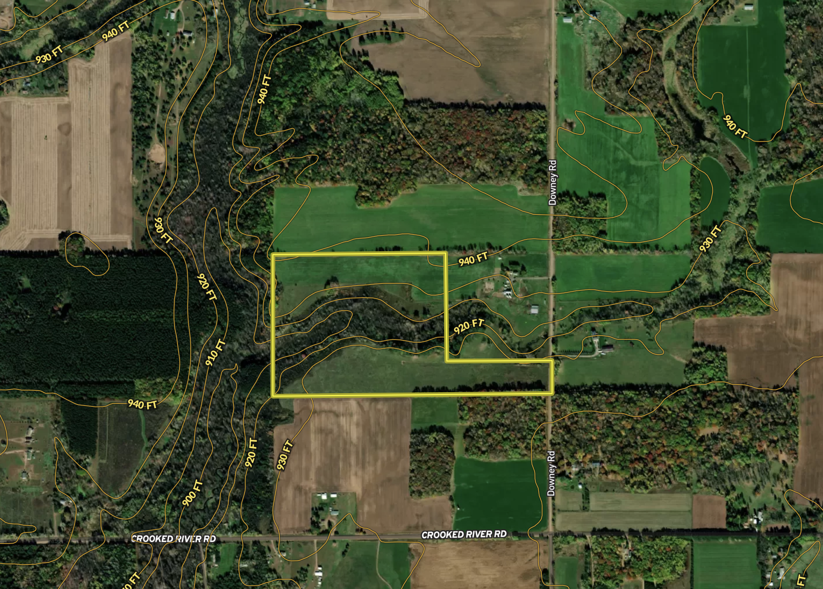 Wild Game, Whitetail, Turkey, Upland Game, Waterfront, Creek, Bear, Big Game, Pheasant, Grouse, Other Game, Roads, Road Frontage, County Road, Road Access, Gravel, Fence, Partial Fence, Tillable / Production Acres, Pine Trees, Hardwood Trees, Hay, Area Features, Public Hunting, Public Fishing, Camping/Campground, Golf Course, Activities on Property, Hunting, Hiking, ATV Riding, Horseback Riding, Family Activities, Biking, Snowmobiling