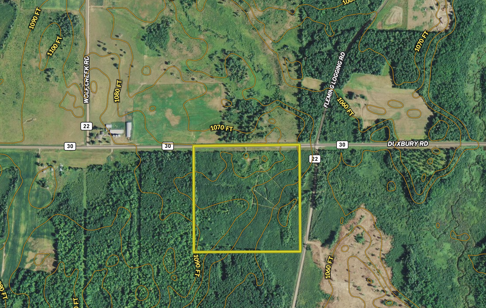 Excellent hunting property located east of Sandstone right off Duxbury road. The parcel was select cut approximately 15 years ago and has grown back into excellent wildlife habitat. The parcel is mostly high ground, with thick regeneration of Aspen along with some Maple and Birch, there are also a few scattered mature Oak and Maple trees. There is a large box stand located on a hilltop, with three large shooting lanes cut out approximately 200 yards. There is a nice opening located just off the approach which would make for a great spot to set up basecamp for your hunting party. There is a four-wheeler trail running from the opening to the box stand, and along much of the parcels east side. There is a large adjacent parcel that is mostly agricultural ground, making this parcel a perfect wildlife sanctuary. With a couple of food plots, this parcel could really draw in the local deer herd. The parcel is within 2 hours of the Twin Cities and offers quality hunting for deer and bear, as well as upland game.