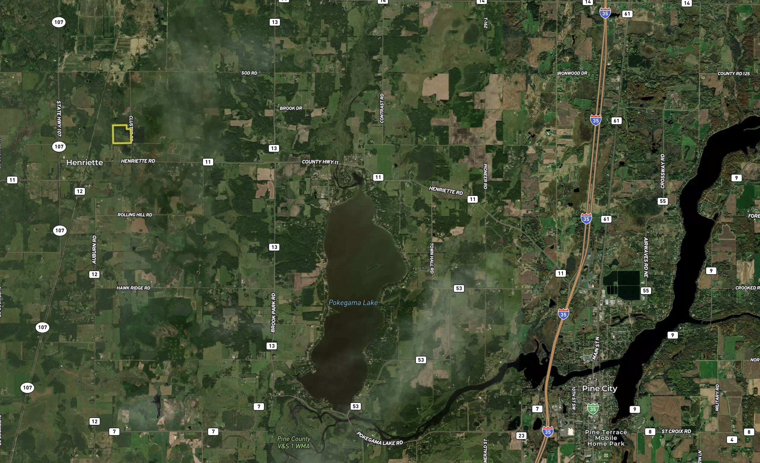 - About 10 minutes west of Pine City