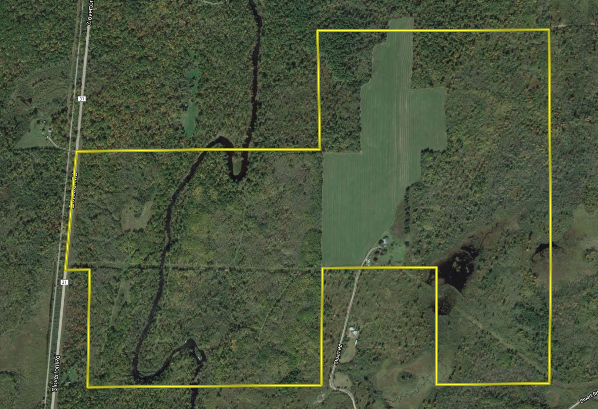 If you’re looking for premier hunting land, look no further than this awesome property. With over ½ mile of Tamarack River frontage, a 45-acre alfalfa field and rolling hills of mature timber, this property truly has it all. The property is located at the end of a dead-end road about ½ mile from the Wisconsin border. At the front of the property the driveway winds around the end of the 45-acre alfalfa field, which seems to always have 10-15 deer on it. There is an old cabin and pole shed just off the field, along with electric, well and septic. The alfalfa field is an absolute magnet for the local deer herd and an obvious destination food source. There are several food plots strategically placed off the main field to create an ideal staging area where bucks feel comfortable to cruise during daylight. Thick cover on the east side of the property has been a great sanctuary for the local deer herd, keeping them on the property and close to the alfalfa field. There are also several enclosed boxed stands in place to intercept the deer as they travel the natural funnels made by the river. Beautiful hardwood ridges run along either side of the Tamarack River and make for absolutely stunning views. A well-maintained trail system allows you access across the majority of the property. There are several bends in the river creating a few slow-moving pockets that hold quality walleye, northern pike and smallmouth bass. There is also a second entrance into the west side of the property off another township road. This entrance provides additional access to a large block of timber that encompasses the ½ mile of Tamarack River frontage. If you enjoy riding ATVs, the Gandy Dancer trail is just across the road. The Gandy Dancer trail runs through the St. Croix State Forest all the way into Danbury, Wisconsin. Along with trophy deer hunting and great fishing, this property also has world-class black bear hunting. The current owners have taken two black bears at or above 600lbs. There is also a large pond on the eastern side of the property that offers quality waterfowl hunting. This turn-key property is a must-see for any trophy big game hunter.