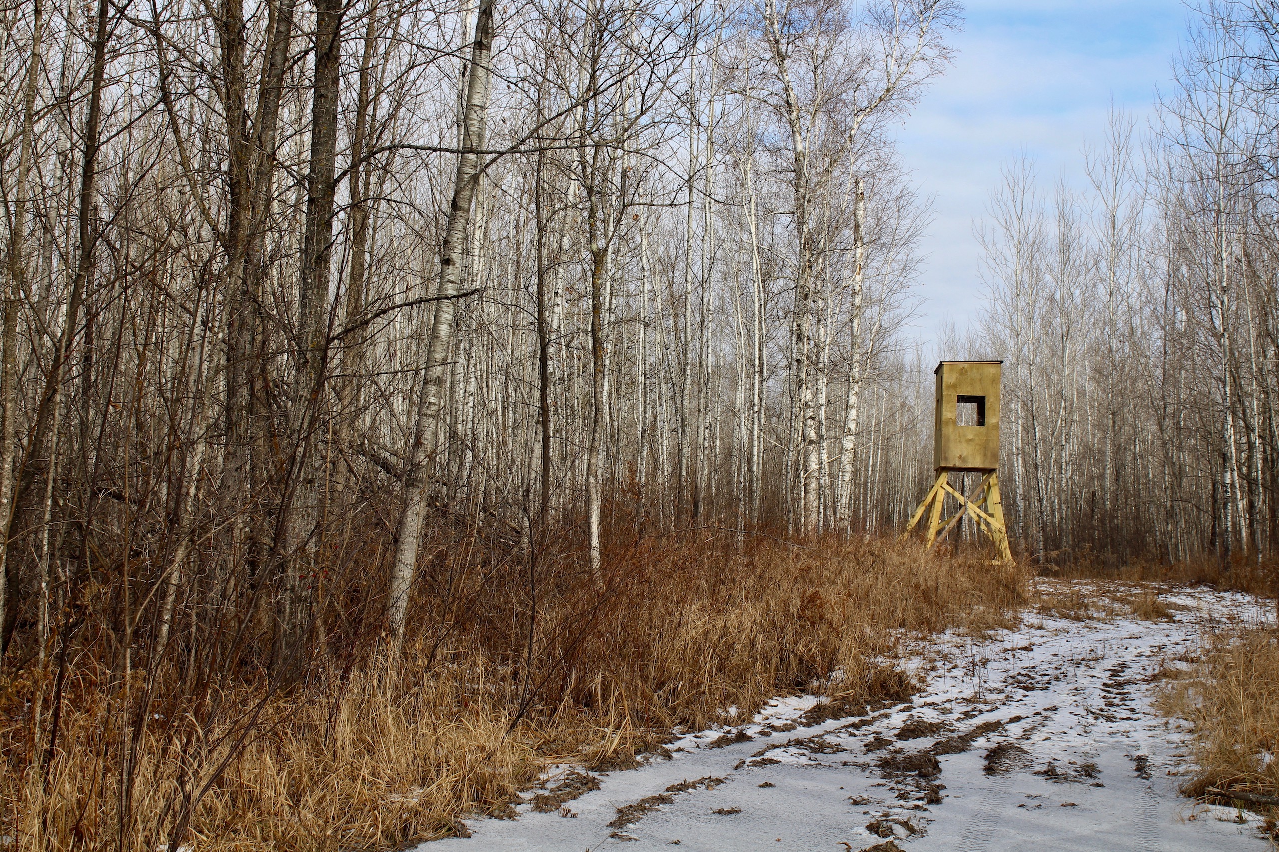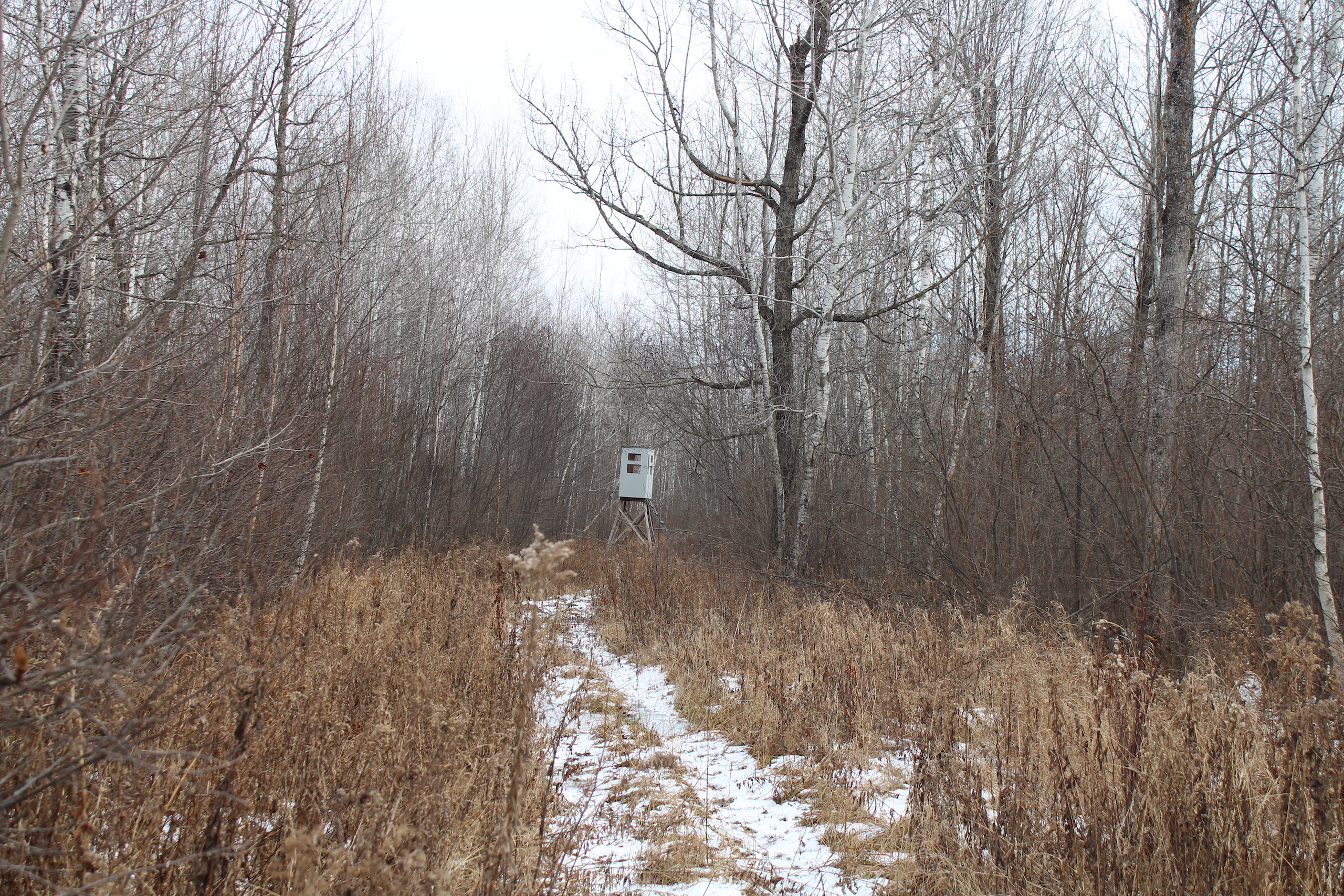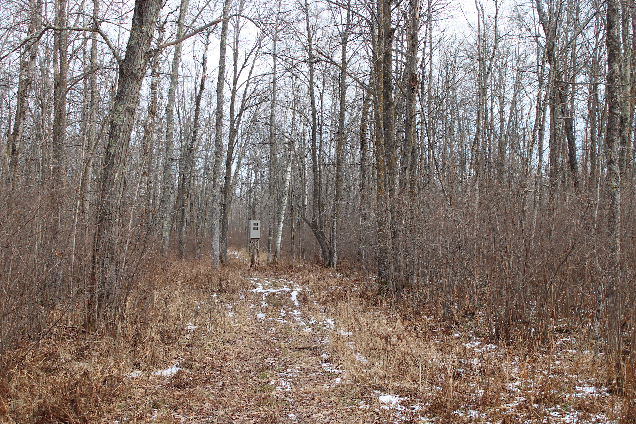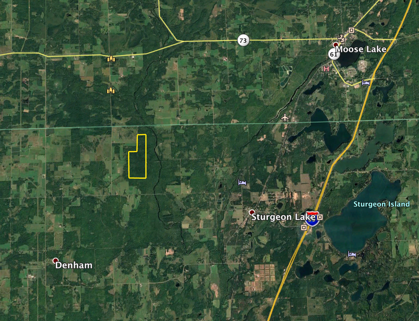 This hunting property's base camp is located down a dead-end road in a nice clearing. There is an old cabin located at the front of the property, and there are several trails that take you from the cabin throughout much of the property. The trails also take you past several box stands that are located in known buck travel corridors. There are nice wide shooting lanes at each box stand, providing hunters plenty of chances to get shot opportunities. The land also borders several hundred acres of public land. The public land has the Kettle River running along its eastern boundary. There are some very beautiful timbered ridges along the banks of the Kettle River with lots of mature oak and maple trees. The Soo Line Trails also runs through the property, providing for hours of ATV/snowmobiling enjoyment. The property offers great hunting for deer, bear, turkey as well as upland game. The property is also enrolled in the SFIA program and brings in about $3,000/year. The property is located about 2 hours from the Twin Cities and about 15 minutes west of Interstate 35 near Sturgeon Lake.