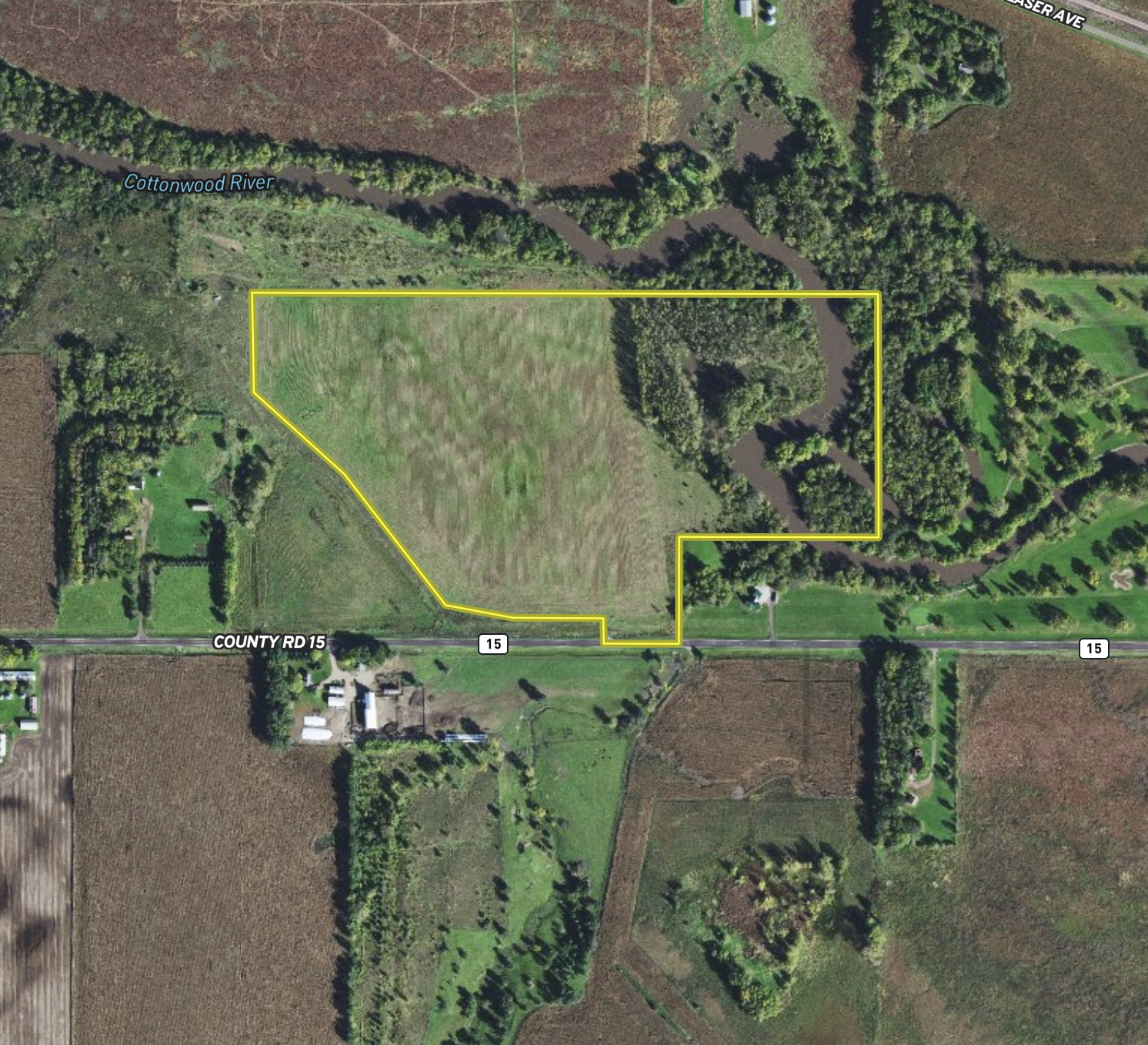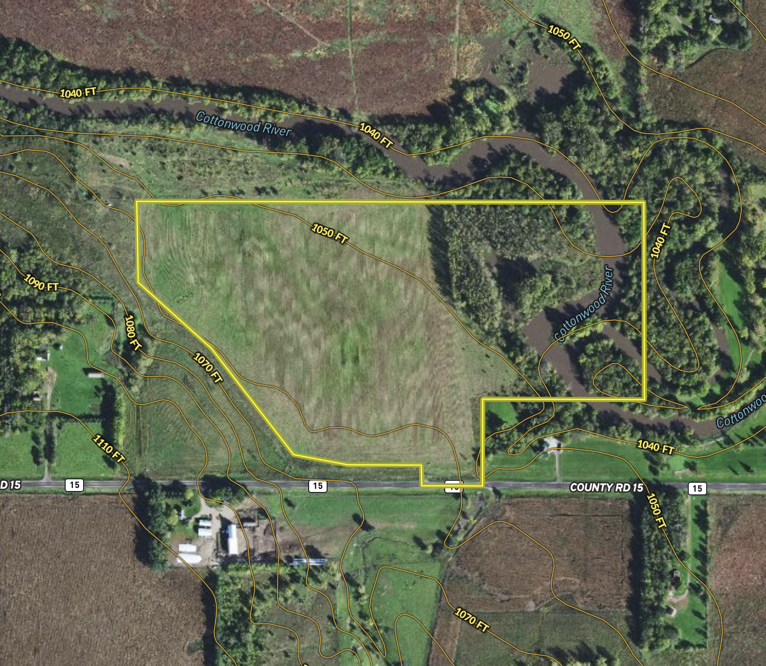 When you pull up to the property, you will immediately notice an incredible stand of native grasses. Most notably, a big blue stem that is overhead high. Over 49.6 acres of the property are enrolled in the Re-Invest in Minnesota (RIM) program. Those acres were burned this spring, and the grasses have responded very well. You will notice a dirt trail that will take you back to the wooded acres. Here you will find a 2-acre food plot with beans, corn, and clover. You will notice a trail leading into the woods to a second clover food plot near this plot. This area has a ton of deer sign, with scrapes and rubs throughout the fall and bedding areas. From this food plot, you can walk east and where you will run into the Cottonwood River. Some acres are on the east side of the river, giving you another option to hunt deer, turkeys, or even waterfowl along the river. Walking past the larger food plot, you will notice three small cattail sloughs. These areas are mostly dry but can fill up with water in the spring or even in a wet fall. The cattails offer thermal cover and make good places to hunt pheasants in winter. Near the cattails, you will find a third food plot. This year it is planted to millet which should be good right away for doves and later in the fall for pheasants. The surrounding area only adds to this great property. The Sanborn Aquatic Management Area is on the west side, open to public hunting and fishing. East of the property sits the Farmers Golf and Healthy Club. A small area not enrolled in RIM is located near County Road 15 at the access point. This area is beneficial if you plan to park a camper during the hunting season or have a small portable shed for storing gear or getting out of the elements. If you haven’t yet, go back to the top of this listing and click on the Trail Camera photos!