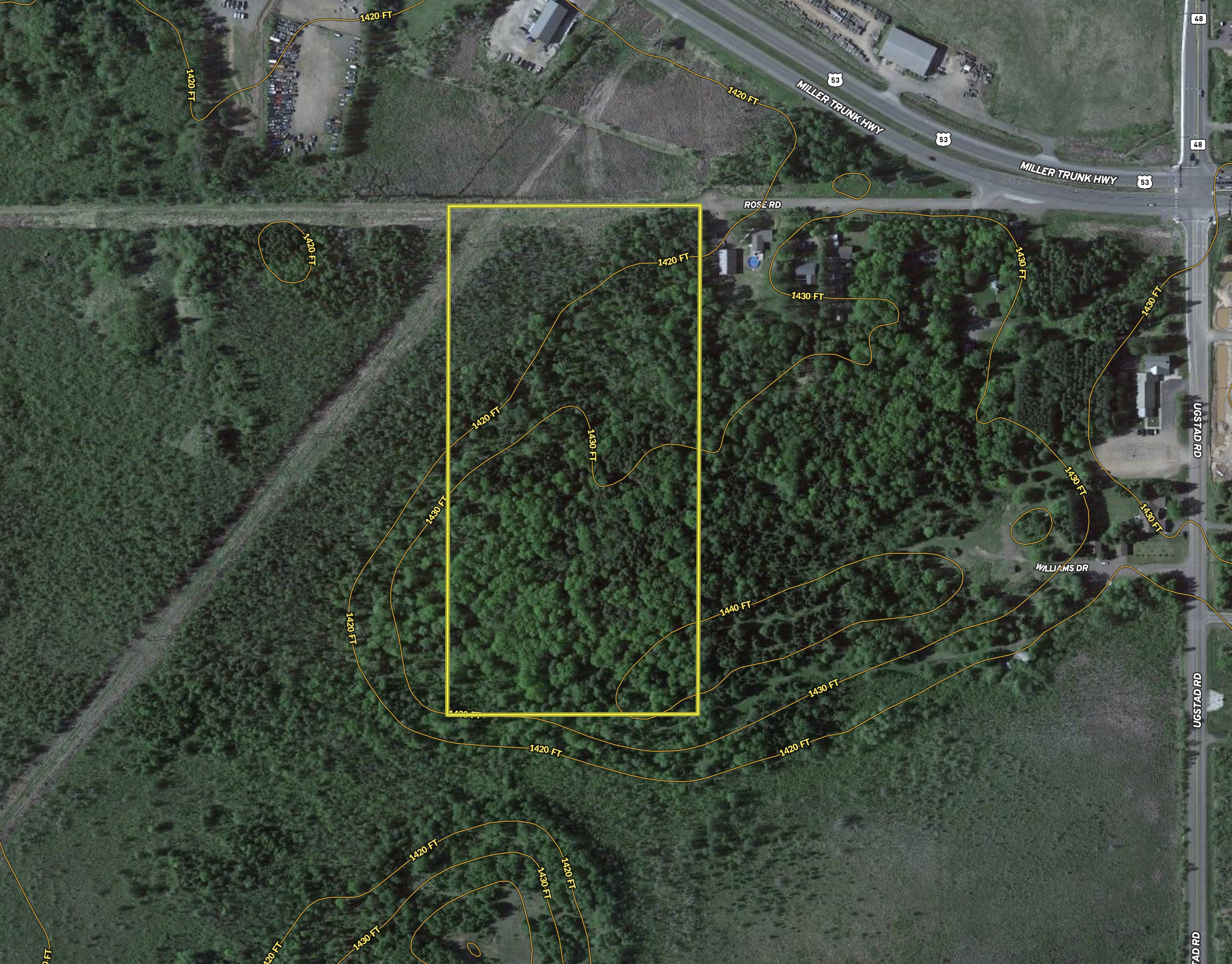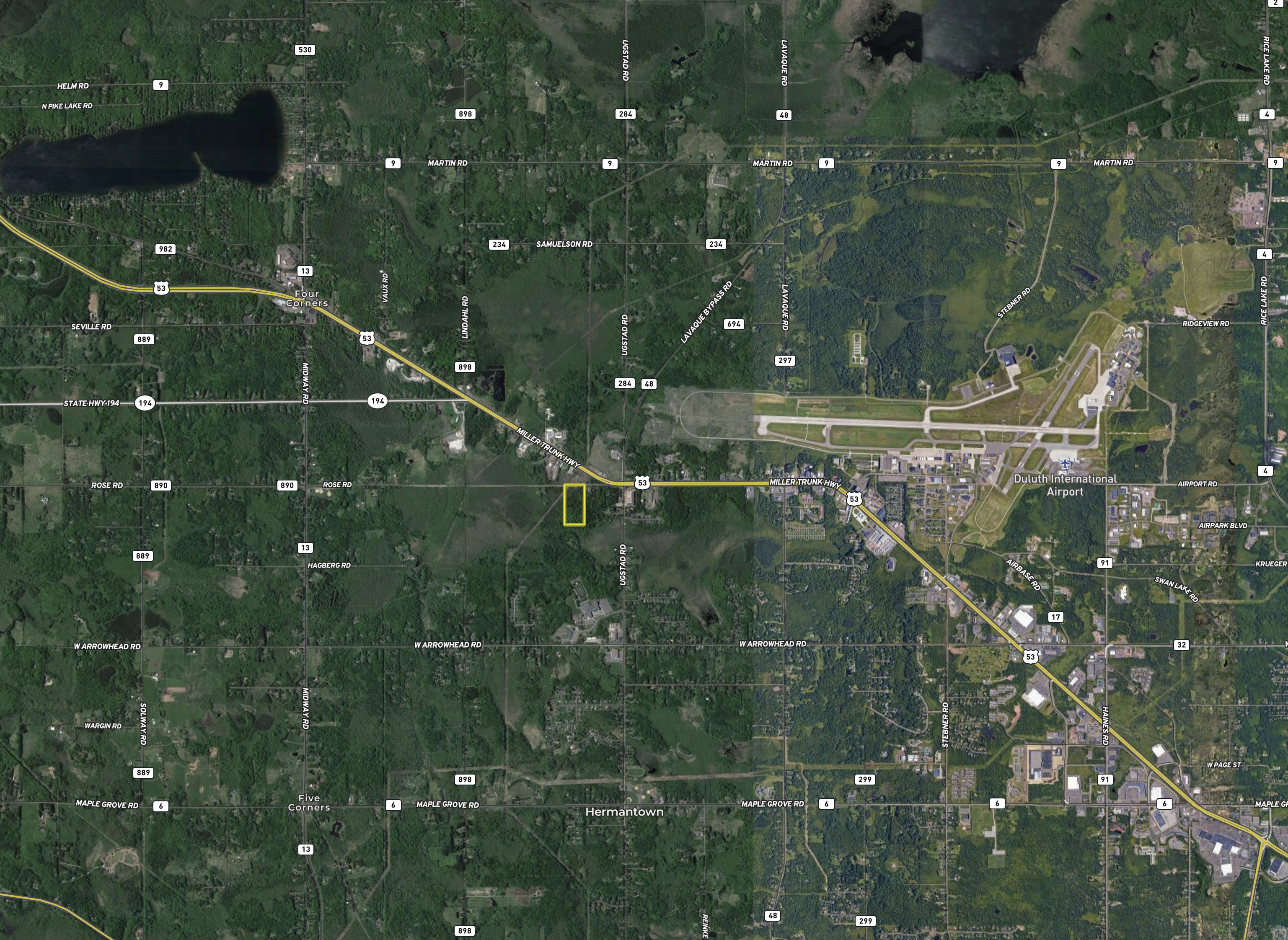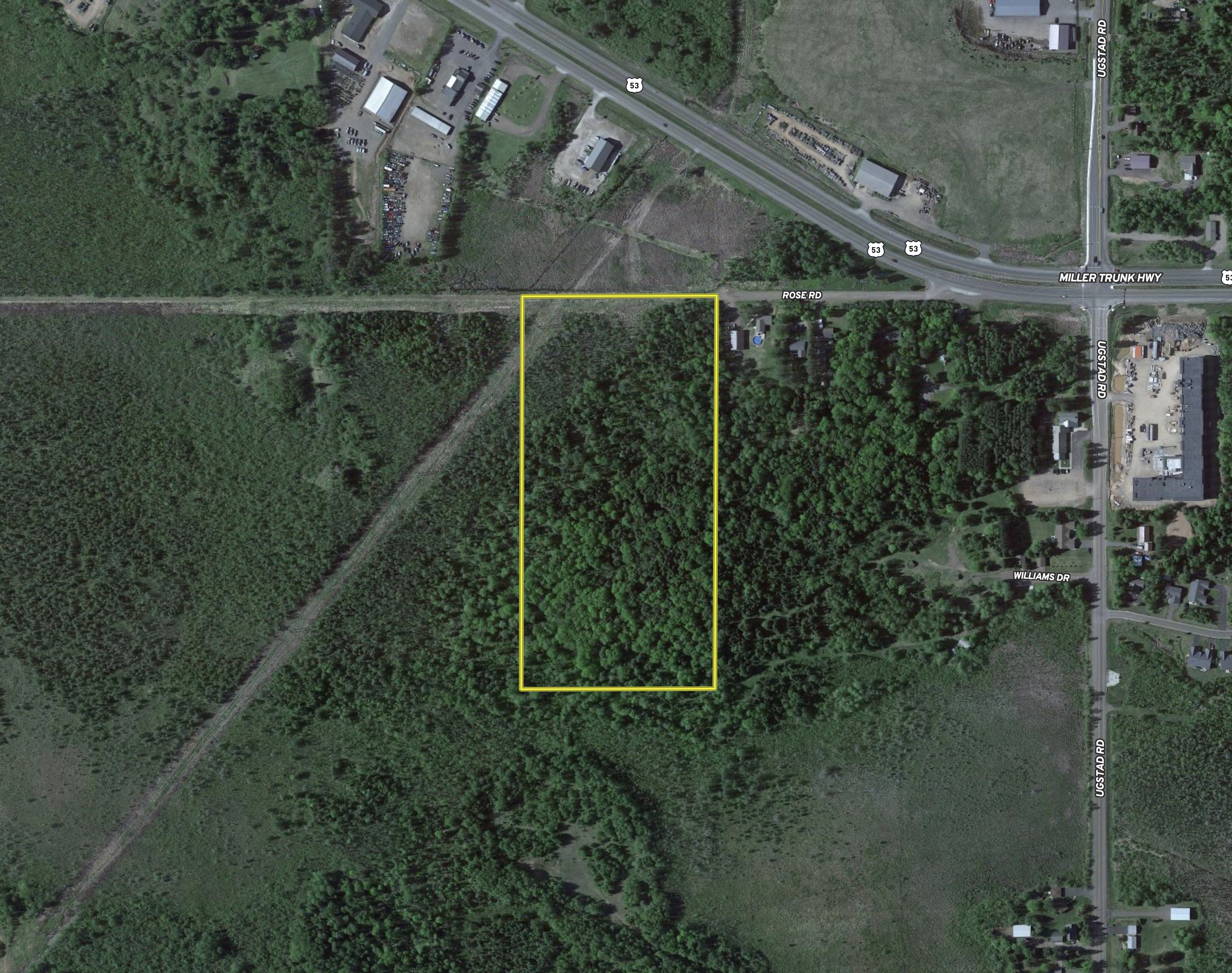 This is an excellent, primarily high-ground property with a great mix of timber. It falls under Hermantown zoning jurisdiction. The property is zoned commercial and is at the end of the current Rose Road just off of Highway 53/Miller Trunk Highway, yet has visibility to and from the highway. The property is a nice gentle sloping terrain that keeps rising as you go back (south) into the property. The timber is an excellent mix of aspen, fir, spruce, maple, and cedar. The lower ground area is up in the northwest corner area of the property. There’s an electrical powerline that passes through the northwest corner of the property, which that right of way also functions as the Hermantown Missing Link snowmobile trail. If you’re looking for a great spot that requires commercial zoning, and quick access to Highway, this could be a great option! Call today to set up a private showing!