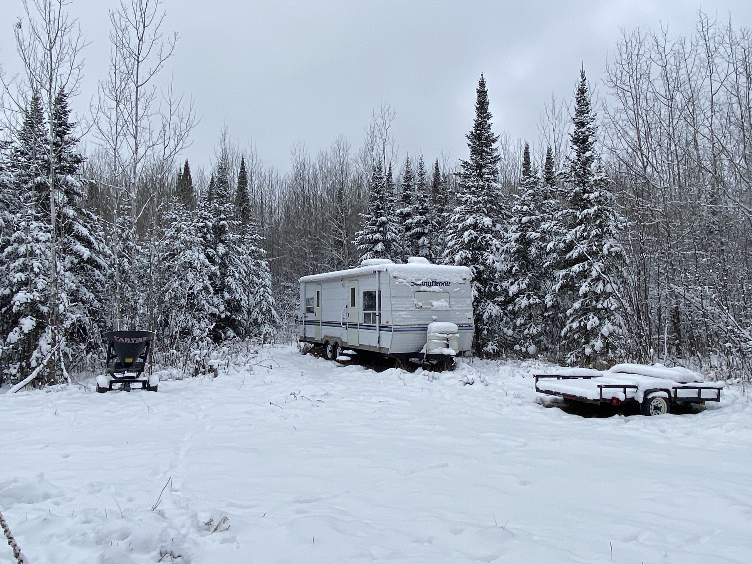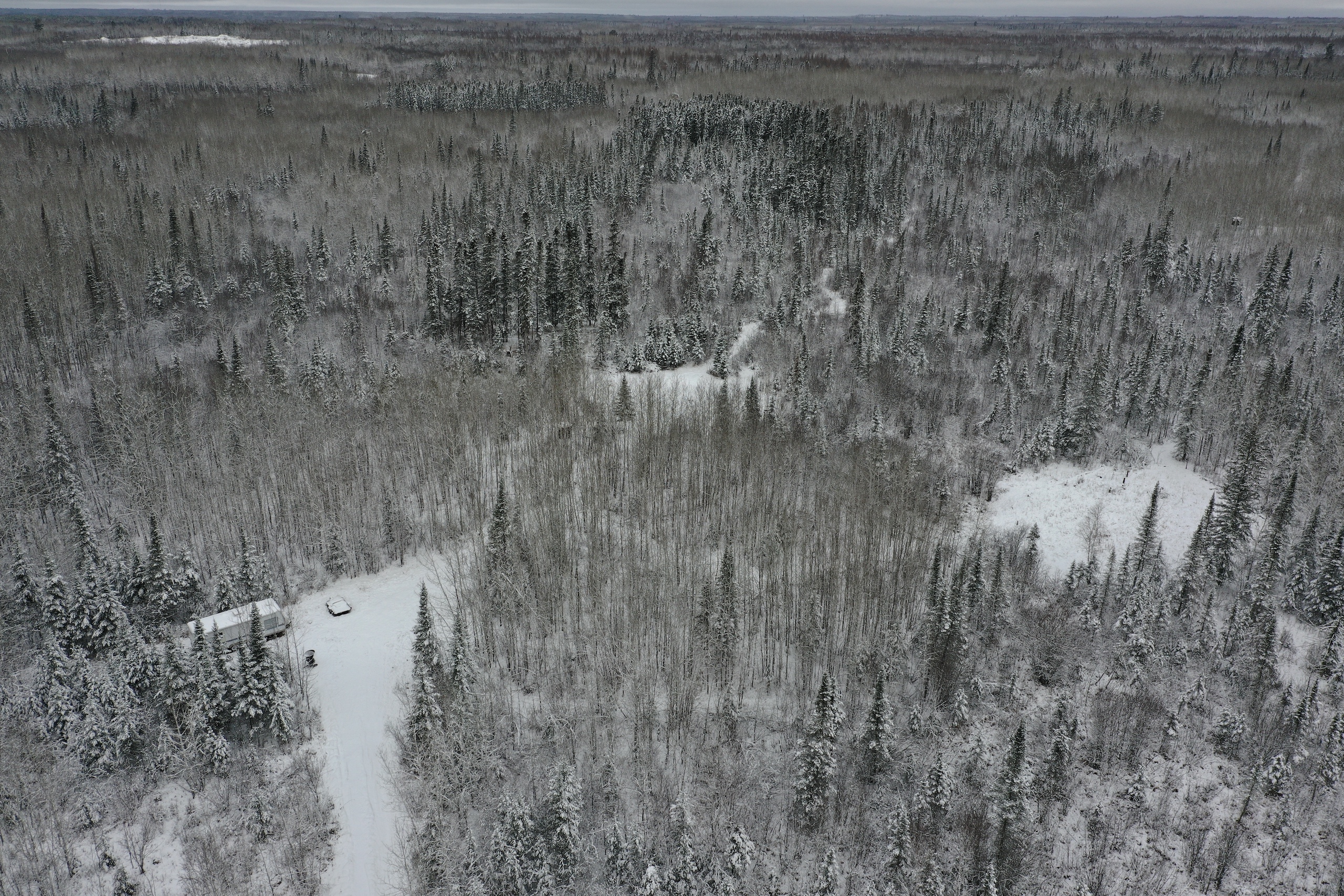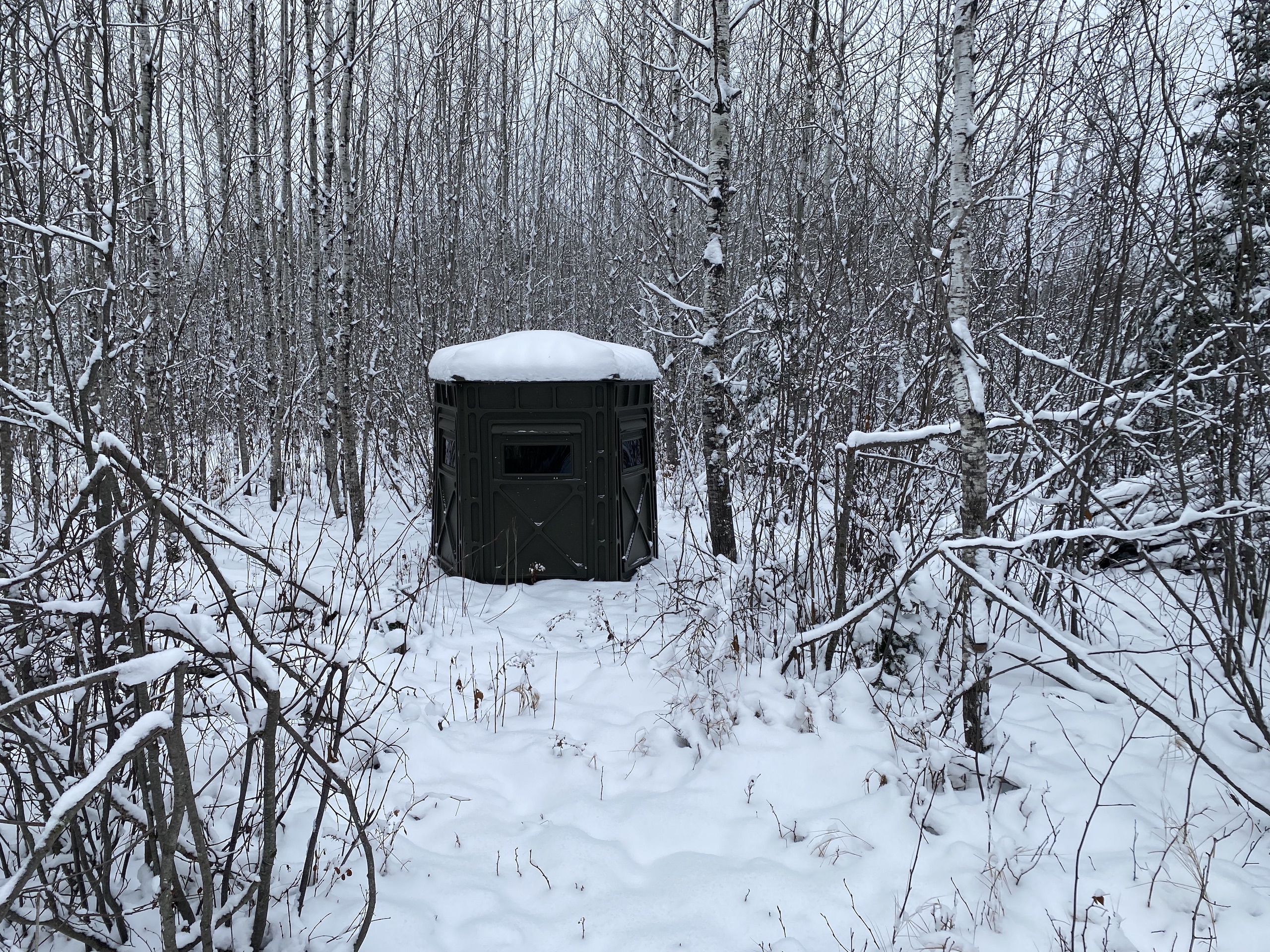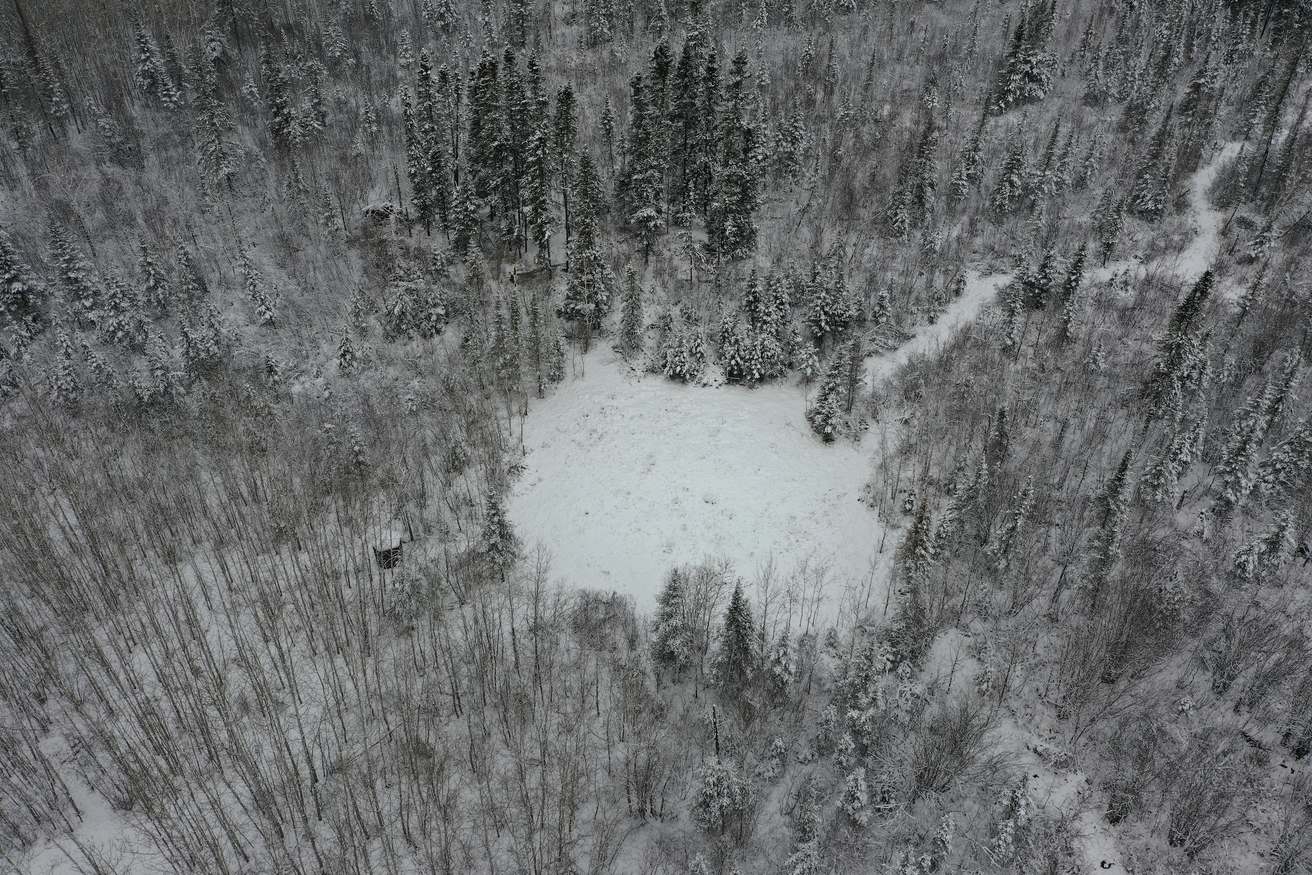 I first checked out the property in the summer, and the plots were looking super good. When listing it and taking pictures, there was snow on the ground, but it was still very apparent that deer were using the property and hitting the two plots to the south finding food under the snow. Perhaps the food mix in those plots or the awesome bedding cover and browse mix also right up to those plots. That said, it’s no surprise the seller has had some pictures of a couple of great bucks in the last couple of years. One of which he had a close encounter with but couldn’t pull off on a stud of a buck which he also has sheds to. The seller provided some game camera photos included in the photos on this listing from the last couple of years. The seller has the driveway coming in good to be able to drive his truck into his camper site. Then from there, a person can access the trail system. The timber on the property is a super nice mix of aspen, spruce, fir, etc. Also, some alder areas and mixed brush with grassy pockets have great deer cover. Getting back to the first plot behind the camper, the seller has a box blind on the ground that overlooks that plot with a small trail out the back side to sneak out easier if deer are in the plot. The seller also has a super nice heavy-duty hub-style blind on a platform on the back plot and main trail system, and a ladder stand farther to the north just off of that same trail system. The camper would also go with the property. This property will be excellent if you want to hunt deer, bear, grouse, or trap. The seller has also had pictures of a moose a few times on the property. Also nearby are thousands upon thousands of acres of public lands and excellent fishing lakes. If this sounds like the Northwoods getaway you’ve been looking for, I suggest not waiting around on this one!
