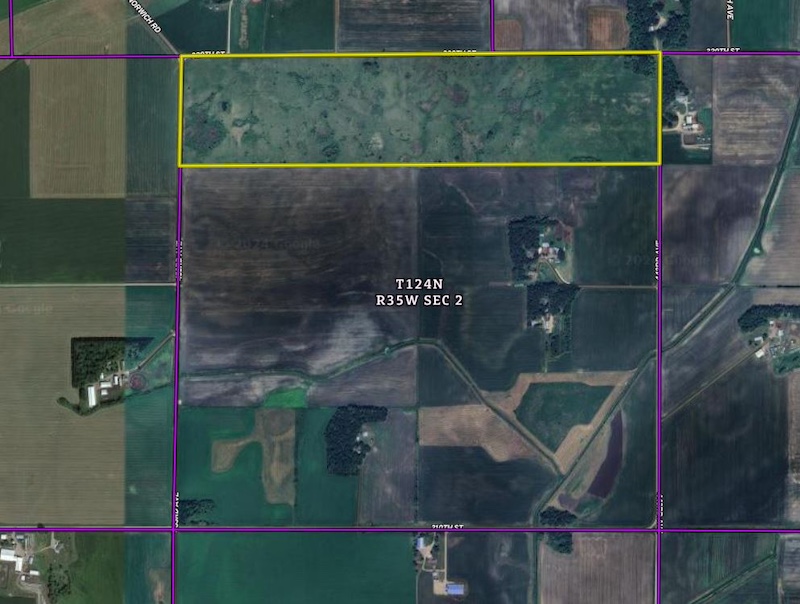 The property has been restored and is in a Pheasants Forever / Fish and Wildlife Service conservation easement. The nice thing with this is prairie landscapes need management to thrive, and the FWS intends, from what I am told by the seller, to do the management work. The one very nice thing is that there was an approximately 5-acre building site left out of the easement. This is located in the NE corner of the property, including the wooded area and some grassland outside, which would be a great spot for expanding upon a food plot area. There is also a very expansive amount of public land in the area, including those areas that provide access to water to duck hunt, and I have visions of a hunting camp or home on the property. If interested, please do not hesitate to call me, and we can discuss this in further detail.