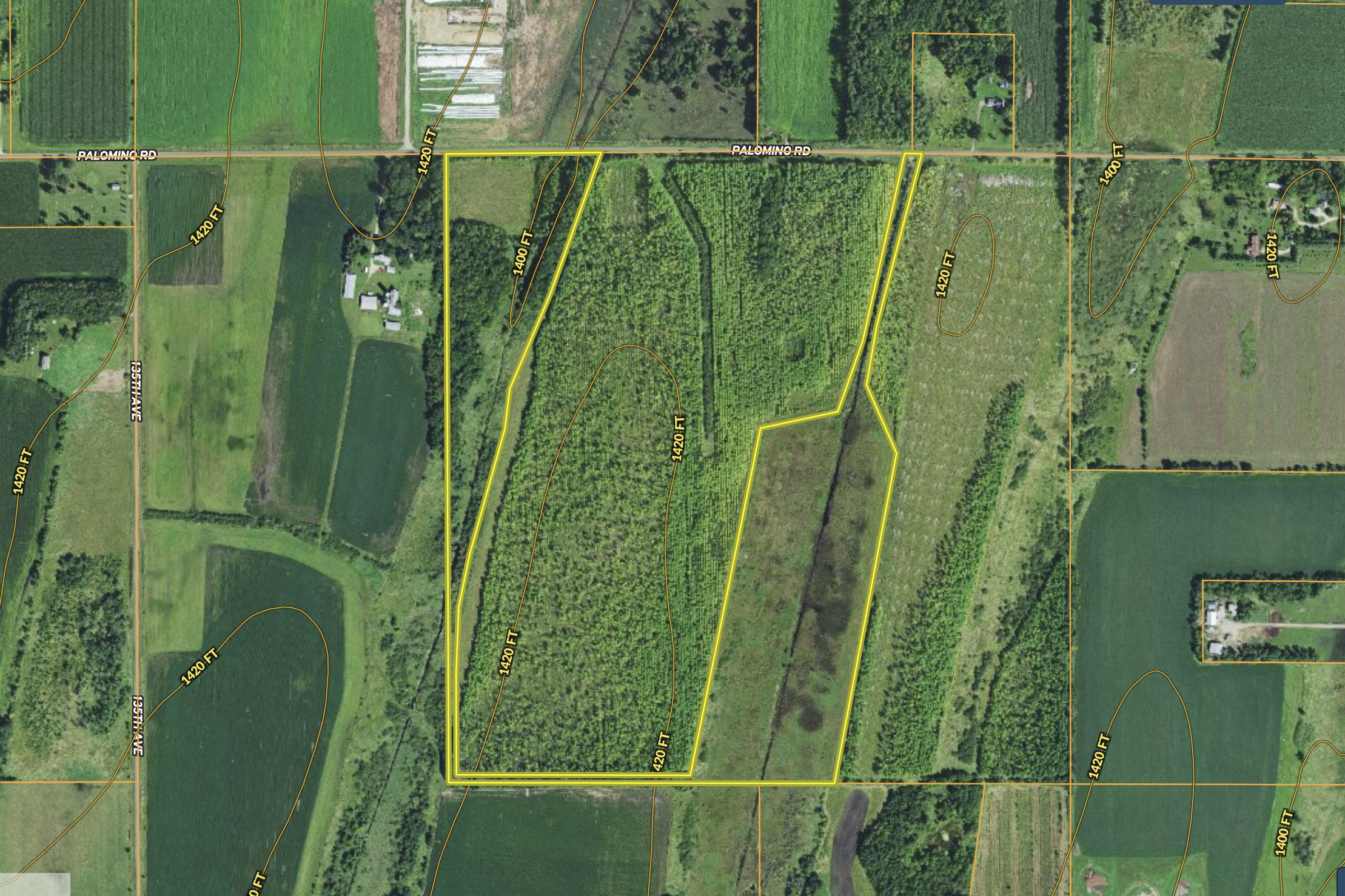 One look at the aerial photo and I know you will be thinking, "what the heck," but hear me out. It may have a unique layout, but in all reality, the way it is laid out offers many options, and options are good. For starters, this property is located in the heart of some top-end deer, pheasant, and turkey country, and this property sets up nicely to hunt all three. It's surrounded by agricultural land, providing plenty of food. You can walk the east side of the property for pheasant, bow hunt the west side for deer, and turkey hunt either side. You can gun hunt the entire property as well. The connector land on the south end of the property acts as a natural funnel for the deer traveling between the ag fields. The northwest corner has about a two-acre field for food plots or buildings. The deer trails are down to the dirt, and the current owner has reported seeing as many as 25+ deer in a single sitting. When I walked the property in the morning, I could hear turkeys gobbling and pheasants cackling and spotted several deer. Even with the unique layout, this property needs to be seen!