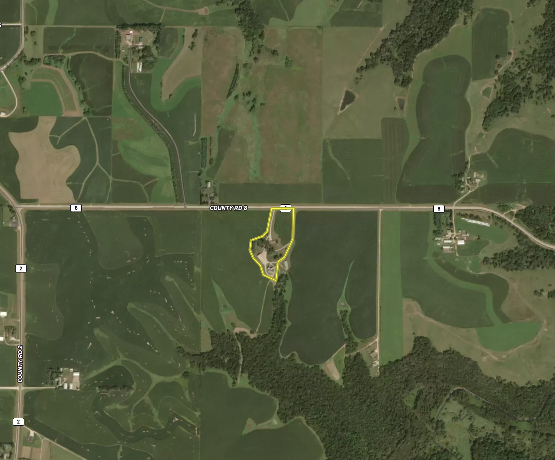 This property is going through the platting process currently. When completed, there will be an easement for the house owner to use the driveway on the East side of the property. There will also be an easement for a short distance along the SE corner for the neighboring parcels to access the tillable land coming down the driveway to the east. Call Bob with questions on this.