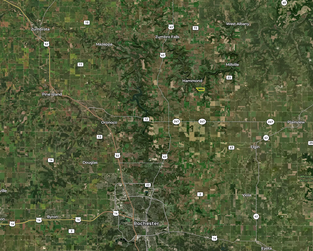 Conveniently located just 15 miles from Rochester and 2 miles from the Zumbro River, which offers fishing and other water activities, this farm combines rural tranquility with accessibility. The seller is open to dividing the property into 47.5+/- acre building site on the West and 56.1 acres on the mostly tillable on the East.