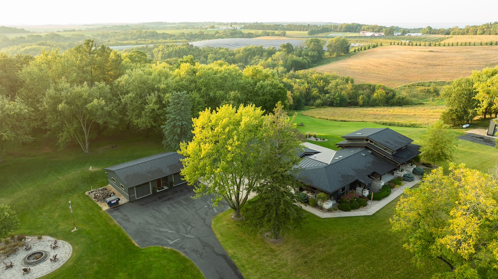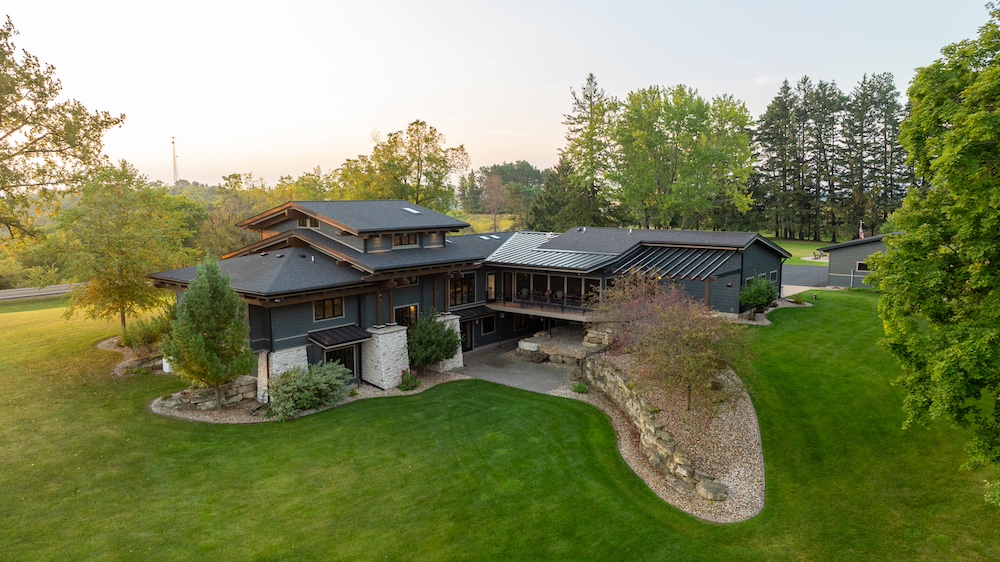 Set along the Apple Blossom Scenic Byway in Southeast Winona County, you will find this 2011 custom-built walkout rambler masterpiece. Masterpiece is the best word to describe the home with its design features and location. The home's designer is the seller’s son, and the attention to design and the detailed craftsmanship of the builder show when you experience this home. The wooden beam system extends from inside the house to the outside of the house. This place catches your eye when you drive by. The main floor of the home has expansive windows that showcase the view from the ridgetop to the Mississippi River and Lake Onalaska below. The stone and beam work is both inside and outside of the home. The main floor is nothing short of a retreat with tile floors, ¾” hickory floors, granite countertops throughout the home, in the chef’s kitchen you will find an large island and butcher block top, prep sink, stand along icemaker, high-end appliances, custom cabinetry throughout the entire house, large main floor laundry and walk-in pantry, Spa like owner’s suite on the main level with heated tile floors in the owner’s private bath. The 3-story staircase is a stunning piece of work and a point of conversation. The owner’s private loft office features a built-in desk with a jaw-dropping view for miles. In the lower level of the home, you will find 3 bedrooms plus another room with egress but without a closet that could be used for an office, workout room, or bonus room. The lower level is another great space for entertaining, featuring a stunning bar with granite countertops, an icemaker, and a large living room with a gas insert. You will also find two full bathrooms, with one having a steam shower. The home has no shortage of places to entertain and relax. On the main level, you can walk out the back to your 3-season porch with Trex decking. On the lower level, you can entertain on the paver patio. The entire home is professionally landscaped. In the front yard, you will find a very large circular paver patio with a large fire pit, built for evening bonfires and enjoying the stunning views. The home features a large three-car garage with two floor drains and access to the main and lower levels of the home. The home features a zero-entry entrance from the outside. Sharing the same driveway to the house is an additional heated garage/shop, perfect for your toys or hobbies. The property also has a pole shed with over 4300 sq ft, partial concrete, multiple doors for easy access to park equipment or storage rental. The property is two parcels; the house and buildings are situated on 19+ acres, and the remaining 118.68+/- acres is available to purchase. The area is well-known for the quality and quantity of deer and turkey. While sitting in the house or on the back porch, it is very common to observe deer drink from the pond and then eat from the apple trees just below the pond. Many of the property owners in the area have significant-sized farms and are into managing the deer herd for age class. This property offers a little of everything and in a location that is extremely hard to find such quality. Some recent updates include the house and heated shop, which had new shingles and were repainted in 2024, and the pole shed, which had a new roof around 2022. The home also includes a whole-house Generac generator. The home affords stunning sunrises and sunsets, relaxing views, and is located only minutes from La Crosse, WI, and La Crescent, MN, and is in the famed Driftless Region. Call Bob to schedule your private showing.