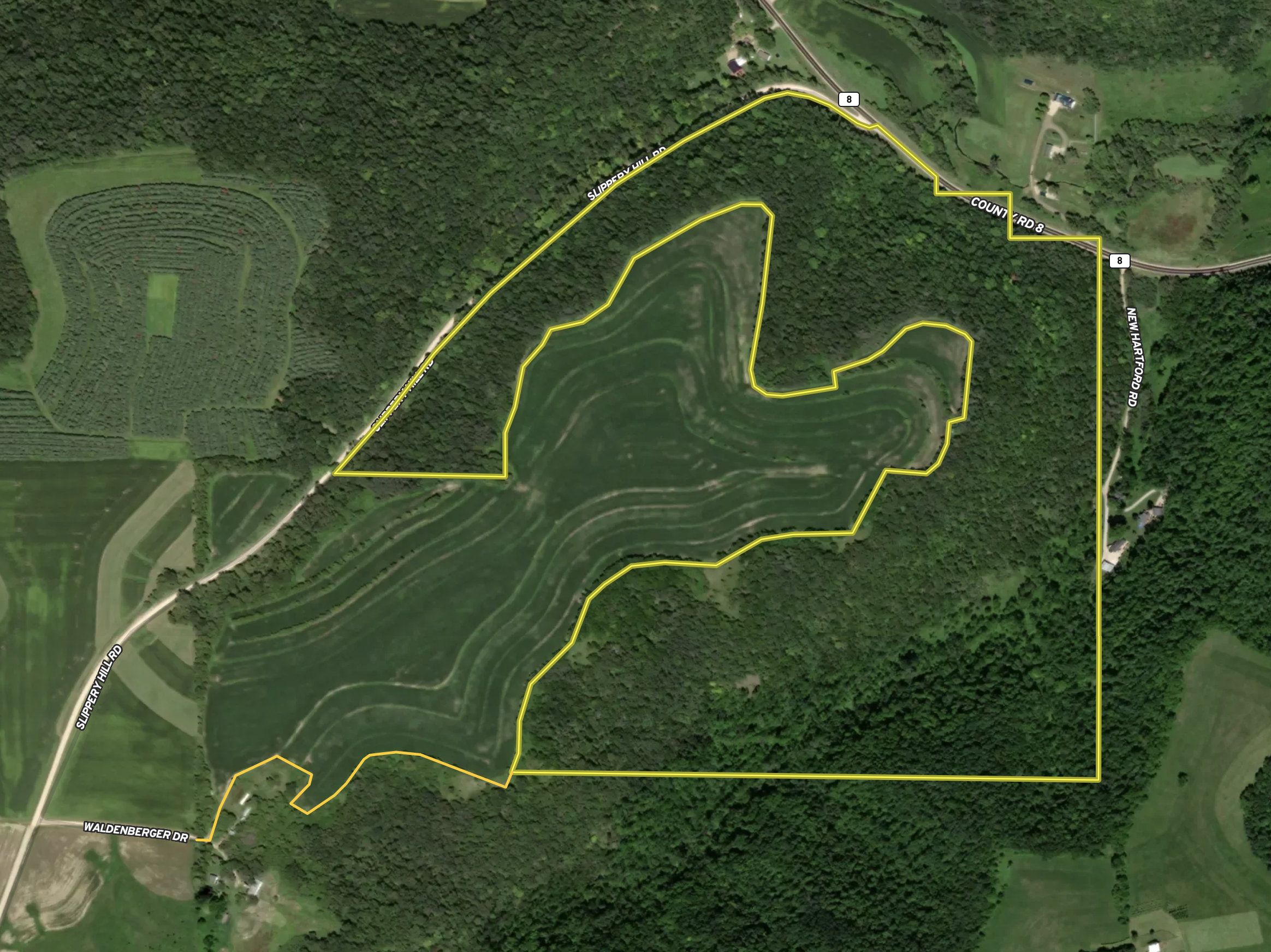 - Access off County 8 from the north in the bottom