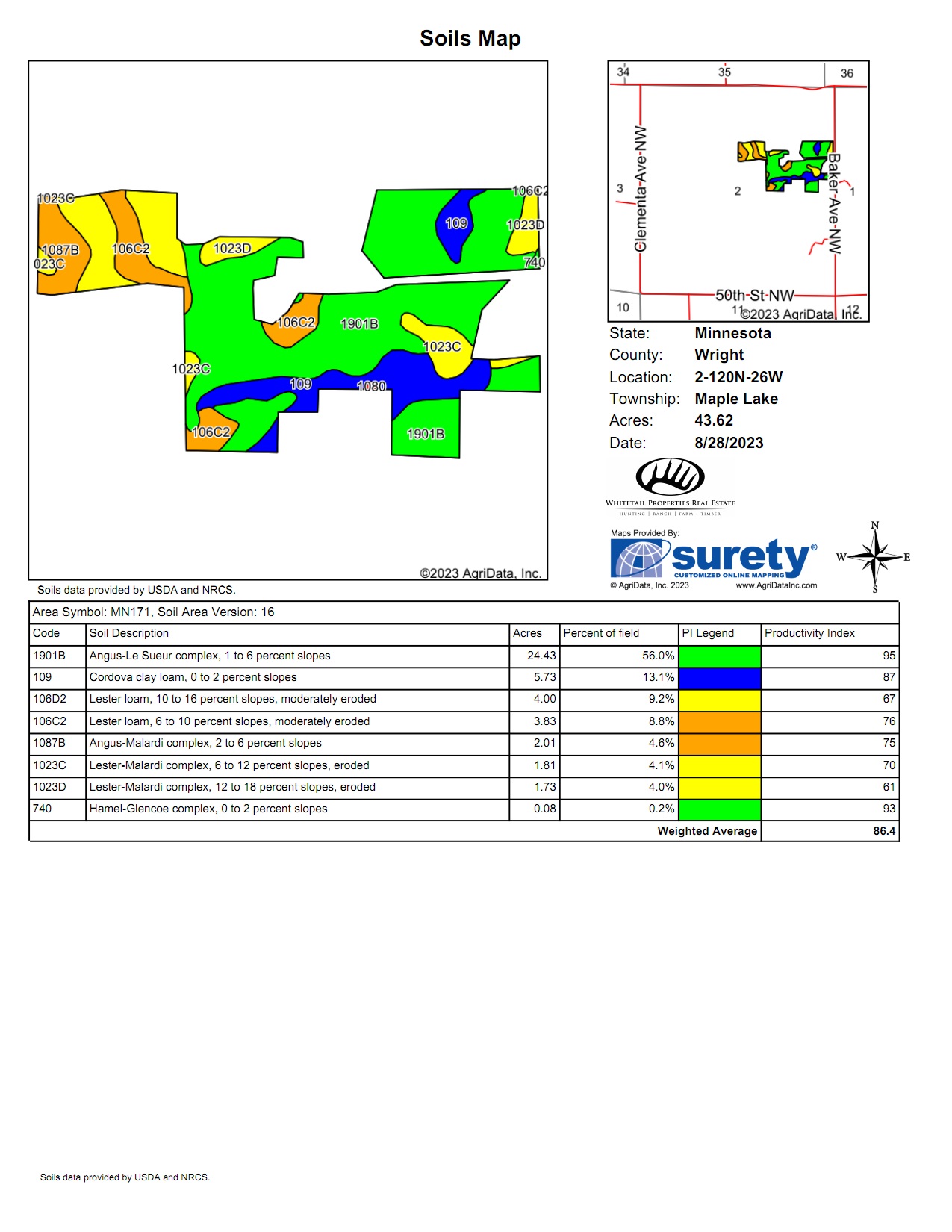 Approximately 43 +/- acres of tillable land holds an average soil productivity rating of just over 86 and is currently rented out for hay production. Some secluded tillable areas would make for some super food plot locations. Reverting away from hunting for a second and the tillable portion of the property would be great pasture, vegetable production, orchard, or whatever your dreams can come up with.