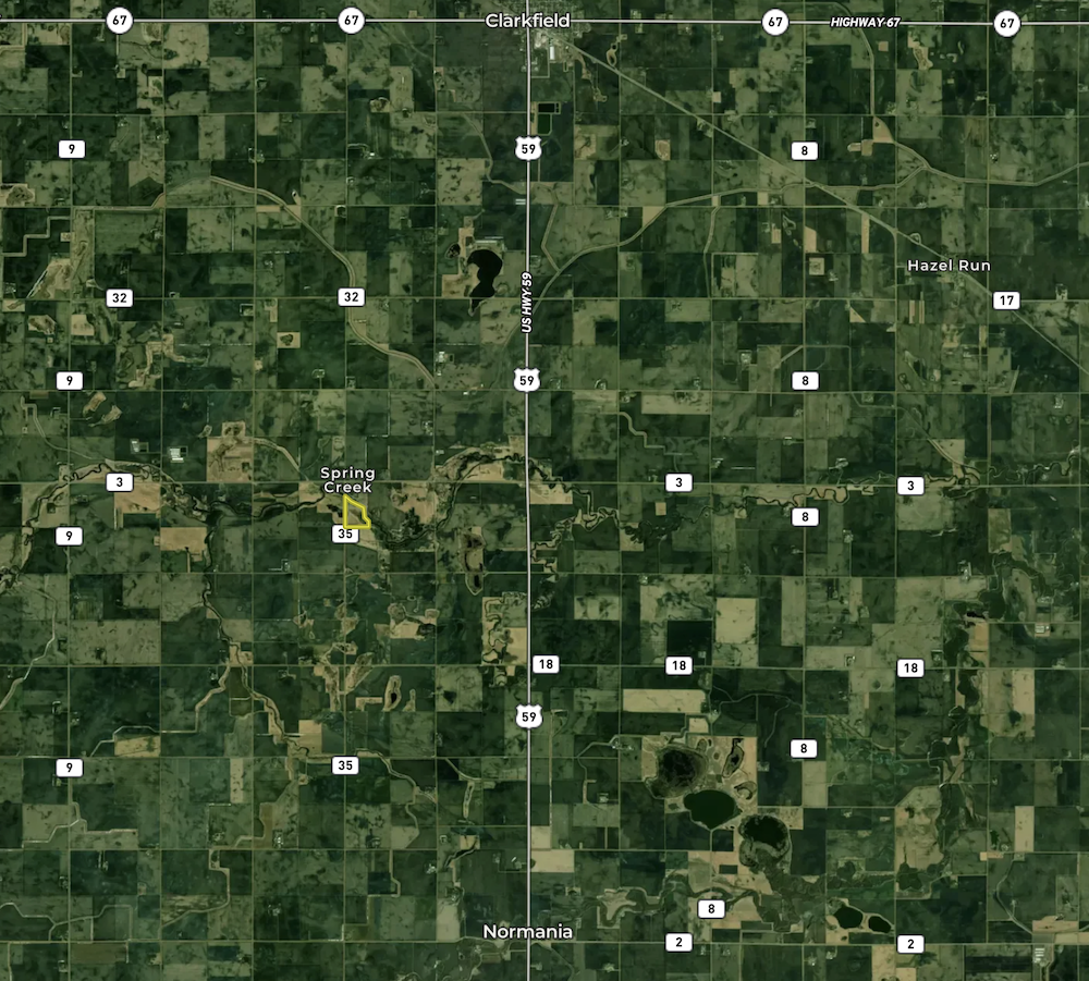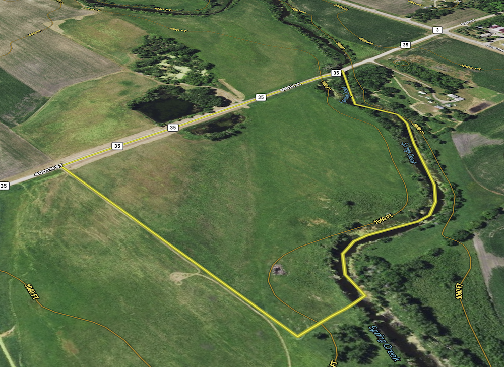Here is a great opportunity to own a hunting property on Spring Creek that generates income through 2037. This diverse hunting property is located in Section 6 of Normania Township with public road access off 400th Street. The north end of this property is Spring Creek, known to be a great hunting area, primarily for deer and turkeys. The south side is made up of native grasses for excellent pheasant cover. Throughout the middle of the property, you will find cattails and willows. Along the west edge is a pond, which used to be a gravel pit surrounded by willows and cottonwood trees. This habitat diversity creates cover for deer, turkeys, and pheasants year-round, most notably thermal cover that will hold wildlife in the winter months.
