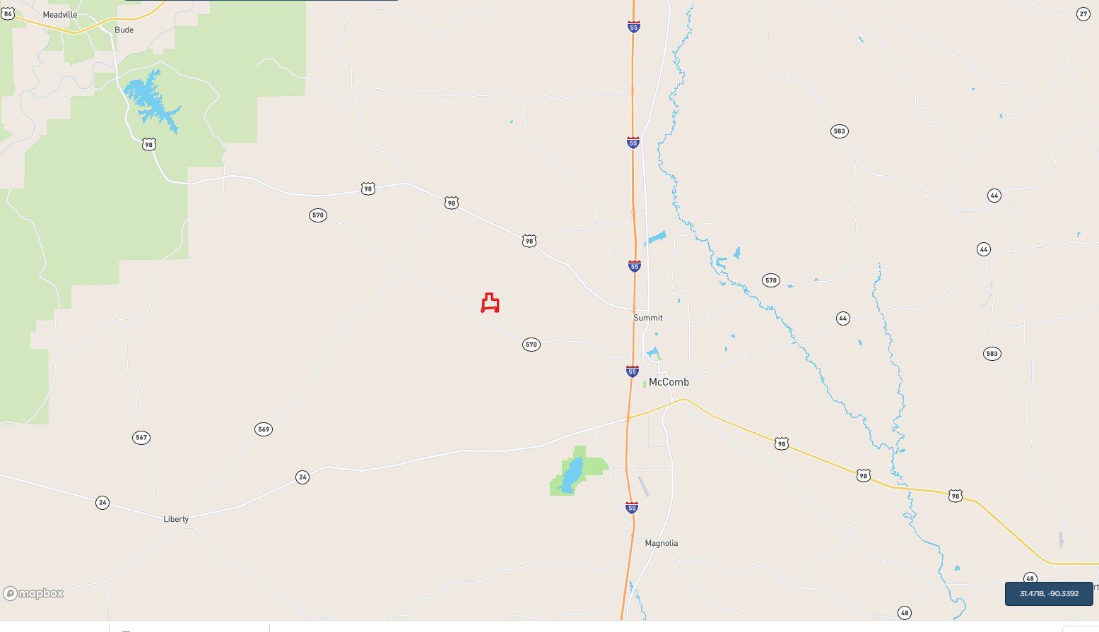 - Located approximately 78 +/- miles from Baton Rouge, 10 +/- miles from McComb and 117 +/- miles from New Orleans